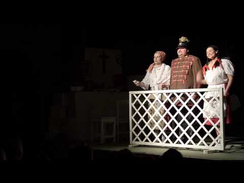 A leveleket kedve szerint kézbesítő „félhülye” postás (Varga Bálint) a darab egyik kulcsfigurájává lépett elő, a színjátékból hiányzó Cipriani professzor helyett ő mondta el a dráma talán legfontosabb sorait: „Ennek az átkozott háborúnak és ennek az egész, átkozott világnak is vége lesz! És akkor a maguk őrnagyát fel fogják akasztani. A maguk őrnagyának a parancsnokát is fel fogják akasztani… Még az őrnagy parancsnokának a parancsnokát is fel fogják akasztani. És akkor mindenki akkora lesz, amekkora, és szabad lesz aludni, ásítani, még nyújtózkodni is…” Czene Zoltán rendezésében tehát a félkegyelmű Gyuri atyus az egyetlen, aki reálisan fel tudja mérni a helyzetet, figurájával a Szegedi Pinceszínház előadása még hangsúlyosabbá teszi a feje tetejére állított, groteszk világ abszurditását. A postás csaknem végig jelen van a színpadon, egyszerre külső szemlélője és aktív részese a történetnek.