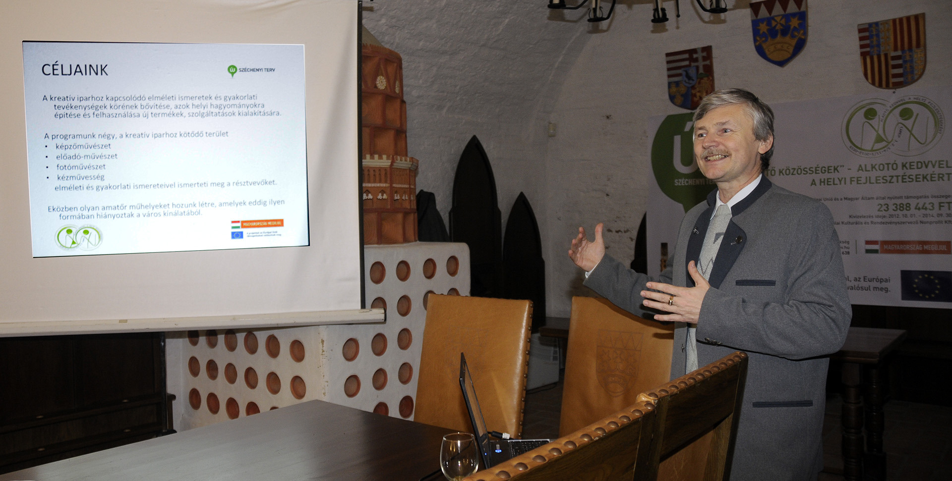 A pályázatot dr. Németh Csaba történész, muzeológus mutatta be. A projekt fő célja a kreatív iparhoz kapcsolódó elméleti ismeretek és gyakorlati tevékenységek körének bővítése, azok helyi hagyományokra építése és felhasználása új termékek, szolgáltatások kialakítására. A kreatív ipar fejlesztésén kívül cél a hagyományőrzés, amely előtérbe helyezi Gyula város történelmét, kultúráját, hagyományait, egyediségét. A pályázat során amatőr műhelyek jönnek létre, amelyekben négy kreatív iparhoz kötődő terület – a képzőművészet, az előadóművészet, a fotóművészet és a kézművesség – elméleti és gyakorlati ismereteivel találkozhatnak a résztvevők.