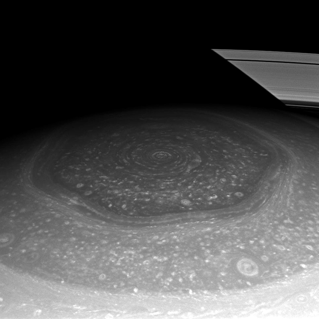 A Voyager űrszondák a nyolcvanas évek elején látogatták meg először a Szaturnuszt, és a sok érdekes felfedezés mellett egy nagyon furcsa, hatszög alakú formát is lefényképeztek a bolygó légkörében. A Szaturnusz északi sarkvidékén lévő alakzat komoly fejtörést okozott, ami a mai napig nem teljesen megválaszolt kérdés a NASA szakemberei körében. Akkoriban annyi bizonyosnak tűnt, hogy egy óriási viharrendszerről lehet szó, azonban ennek stabilitása és működése további vizsgálatokat igényelt. Mintegy harminc év elteltével, 2006-ban a Cassini űrszonda is megörökítette a hatalmas hatszöget, amelynek átmérője négyszerese a Földének. Bebizonyosodott, hogy egy hosszú életű légköri jelenséggel van dolgunk, mint például a Jupiter Nagy Vörös Foltja, mely legalább négyszáz éve létezik. Hét évvel ezelőtt a Szaturnusz északi pólusvidékén azonban még sötét éjszaka honolt, ezért a Cassini akkori felvételei az infravörös tartományban relatíve alacsony felbontással készültek. 2009-ben a kutatók izgatottan várták a Szaturnusz átfordulását, hogy végre újra napfény érje a gyűrűs bolygó északi sarkvidékét, és a látható tartományban is le lehessen fényképezni a bolygó hatszögét.