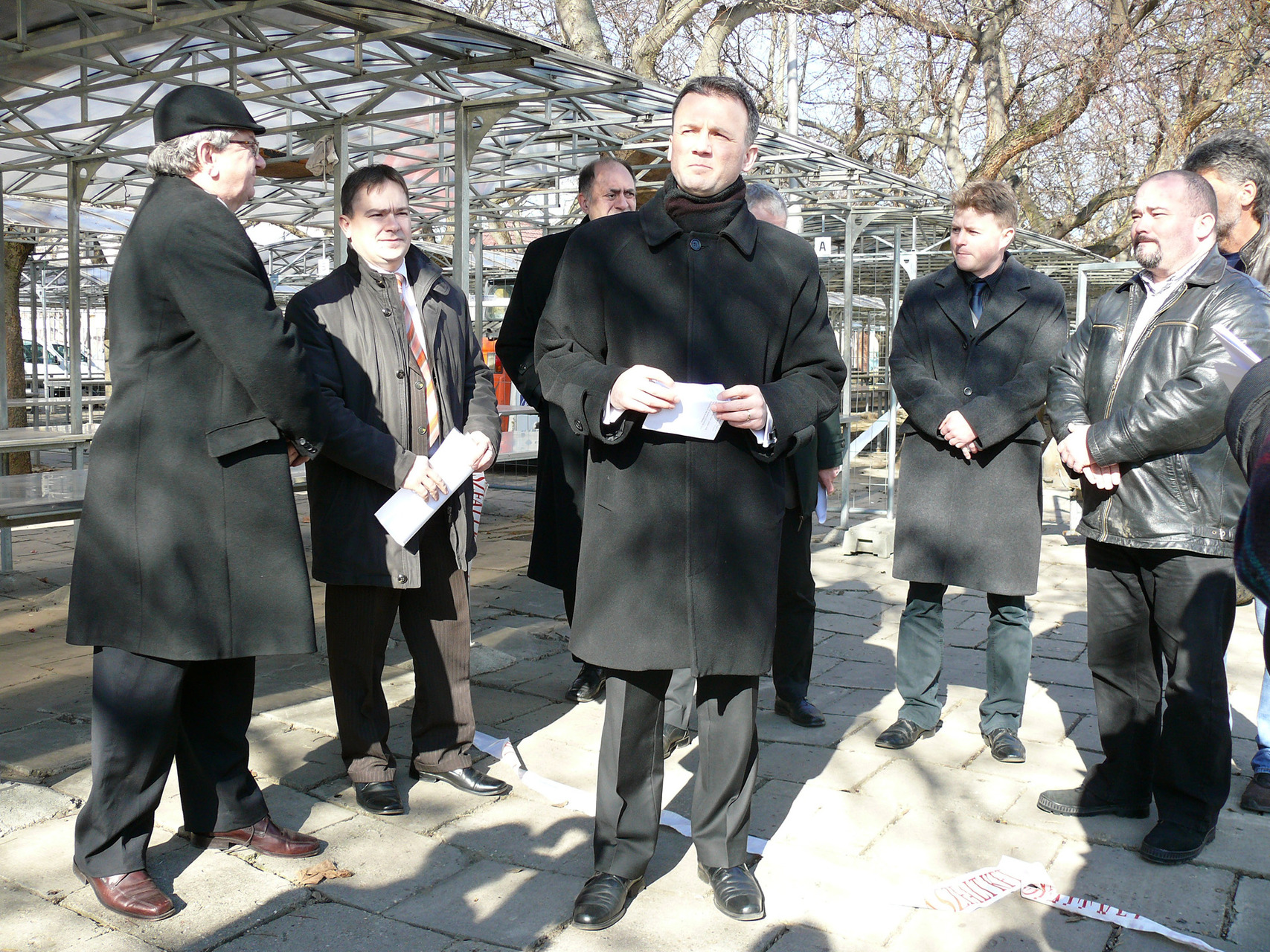 Megkezdődtek a gyulai piac felújítási és korszerűsítési munkálatai. A majdnem 25 millió forint összértékű beruházáshoz 14 millió forintot nyert a Vidékfejlesztési Minisztérium pályázatán Gyula Város Önkormányzata. A projektindításról dr. Görgényi Ernő polgármester a helyszínen számolt be. A közös sikert alátámasztandó, a képviselőtestület tagjai is megjelentek a tájékoztatón.
