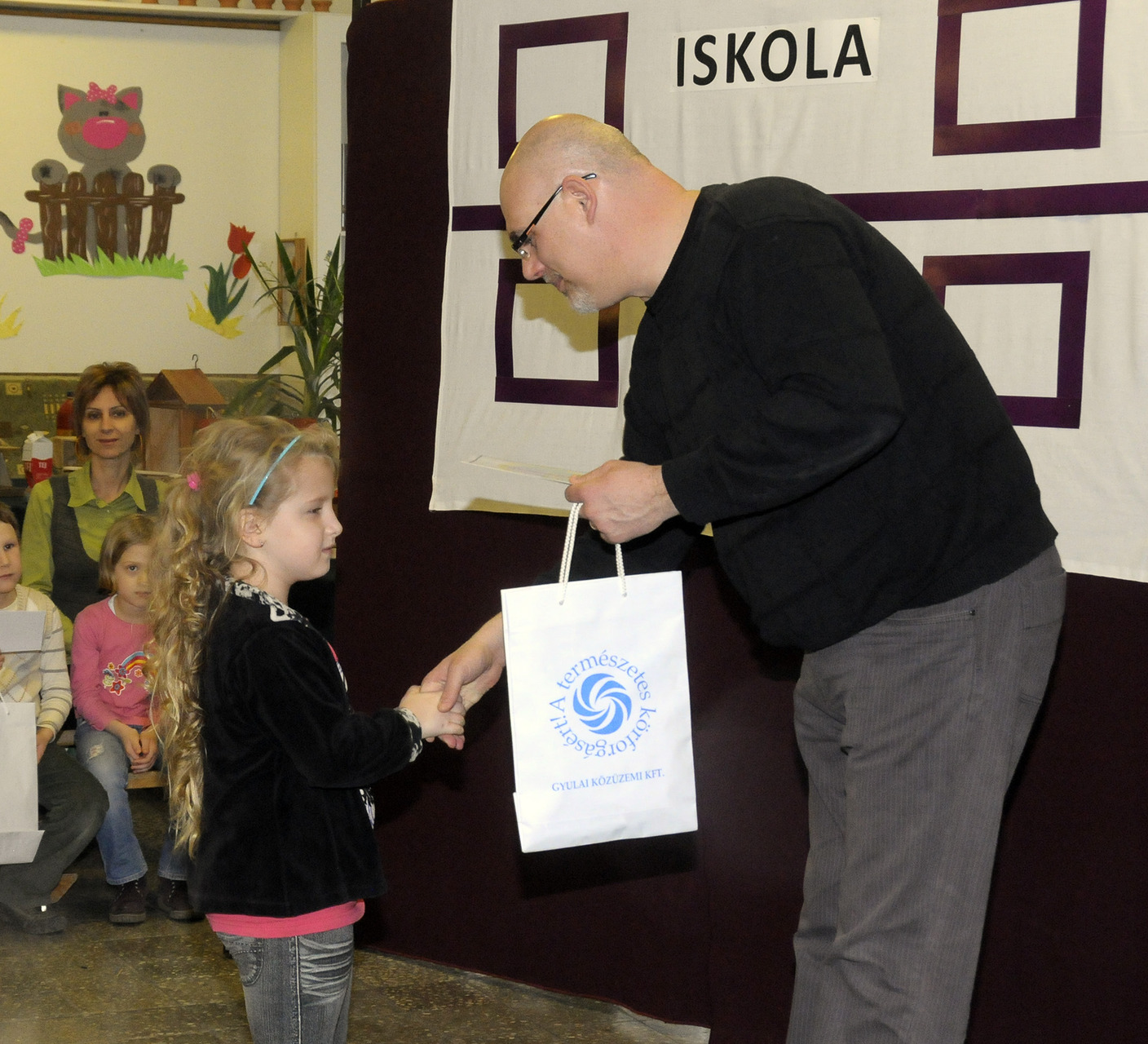 Először Sióréti Gabriella, a Gyulai Alapfokú Közoktatási Intézmény igazgatója köszöntötte a jelenlévőket, majd 3. a és a 3. b osztály környezetvédelmi műsorát láthatták. Ezt követően ifj. Gyarmathy Zsolt, az intézmény szakmai igazgatóhelyettese és Virányi István, a Gyulai Közüzemi Kft. üzemvezetője adta át a díjakat. A gyerekek munkáiból nyílt tárlat megtekinthető az 5. számú általános iskola zsibongójában.