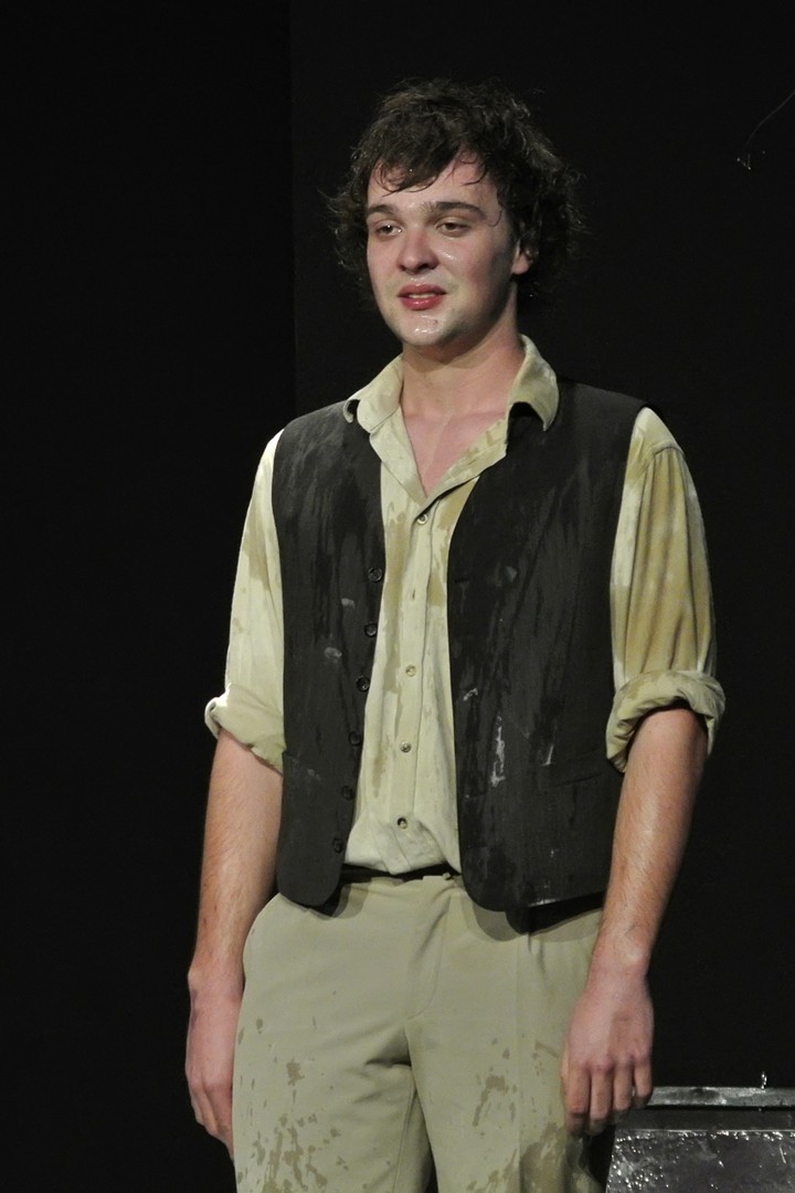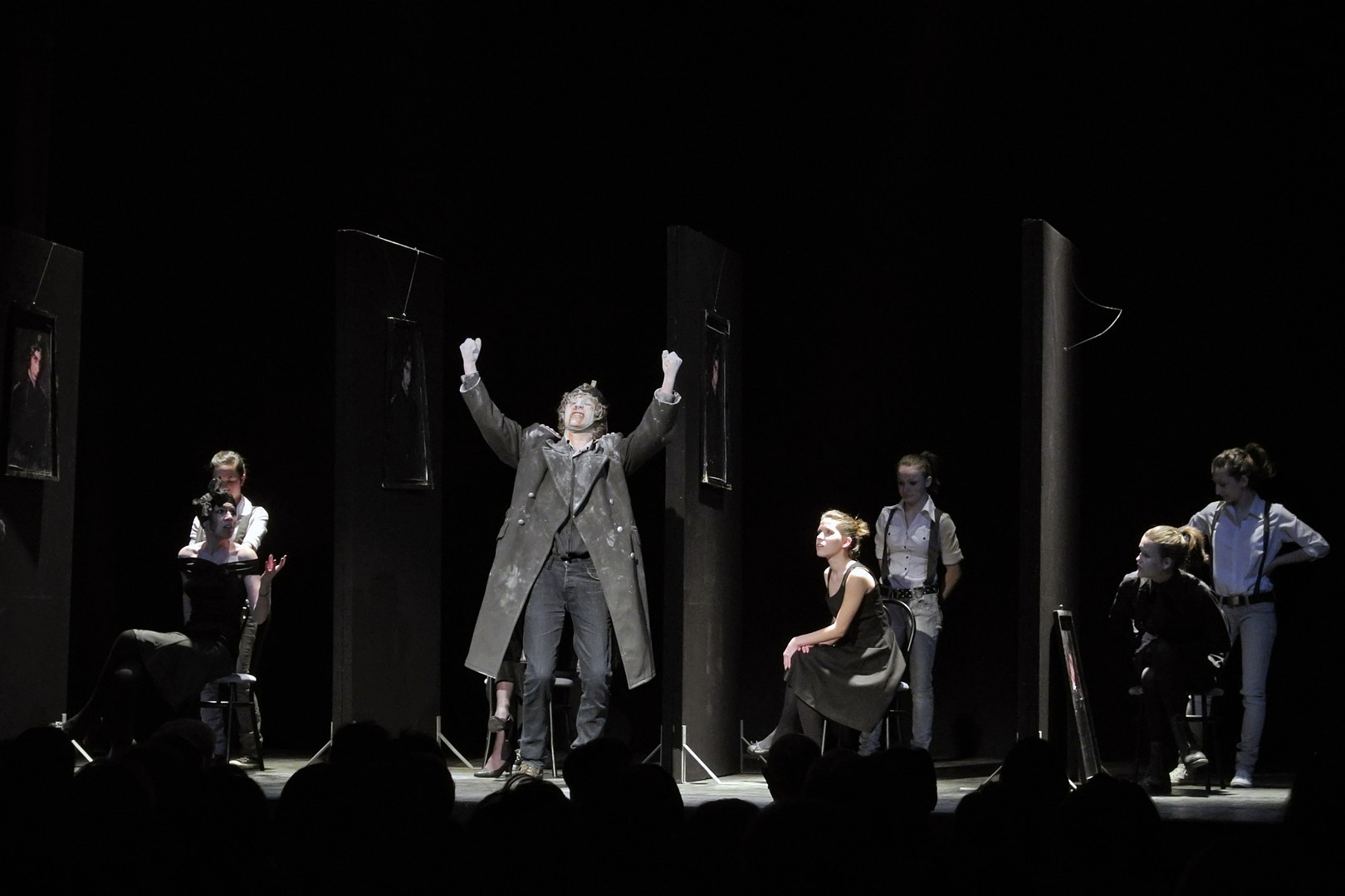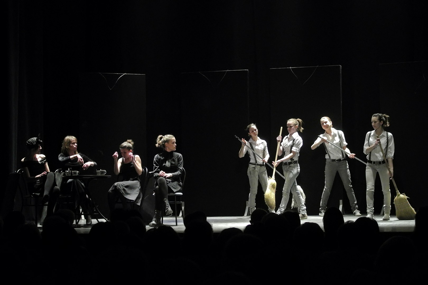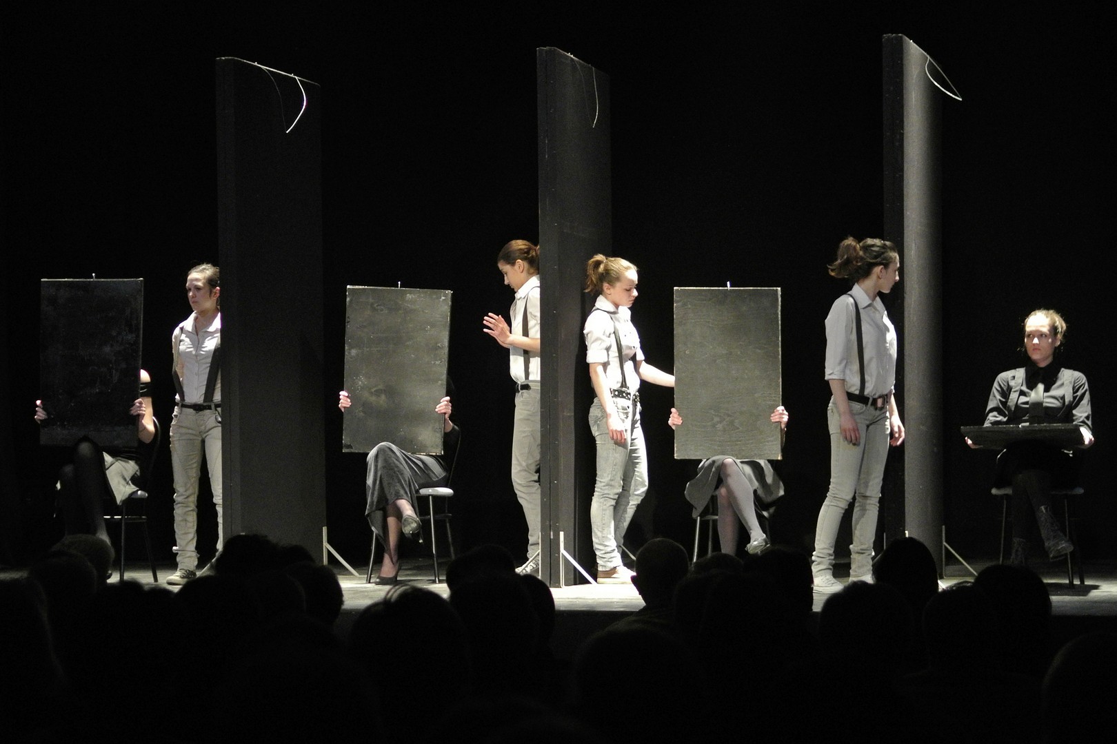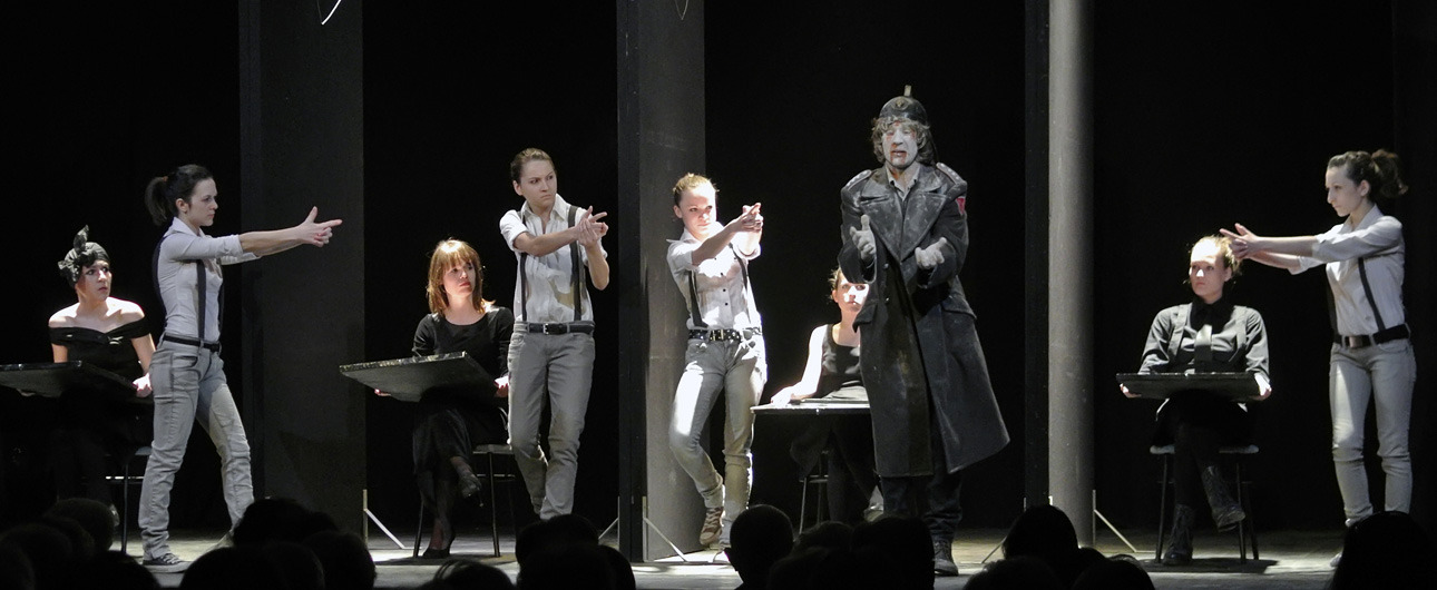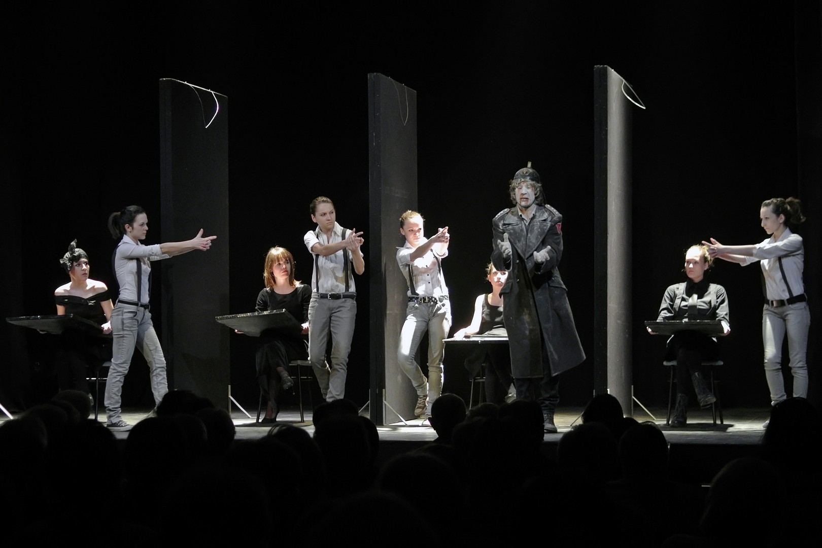 A telt ház előtt bemutatott előadást ötletes rendezői megoldások jellemezték, s a társulat tagjai – fiatal koruk ellenére – derekasan helyt álltak a színpadon. A színjátszó csoport az eredetileg háromszereplős Csehov-drámát tizenegy szereplővel adta elő. Popova Jeléna Ivanovnát és Lúkát, az öreg lakájt is négy fő alakította egyszerre az előadáson. A különböző karakterű, gyászruhába öltözött, „klónozott” özvegyek – akik egyként vettek rész a párbeszédekben – egy-egy női archetípust testesítettek meg. A színpadon, fehérre maszkírozva, megjelent a halott Nyikolaj Mihájlovics is, aki szellemként csak némán tudott perlekedni feleségével, s hol szotyolázva, hol sörözve sétált fel-alá a szereplők között.