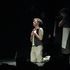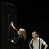 A színpadképet hatalmas, mozgatható, fekete paravánok uralták, melyek a darab elején szűk térbe zárták a szeretett férfi képét bámuló, önmagába zárkózó, önsajnálatba merülő feleségeket. Kolcsár rendezésében Popova nem az új szerelem hatására, hanem a csalódás által szabadult ki önmaga és férje emlékének a fogságából. A darab leglátványosabb része a zárójelenet volt, melyben a Szmirnov Grigorij Sztyepánovicsot ütlegelő asszony zsákjából felszálló liszt fehér ködbe burkolta a színpadot.