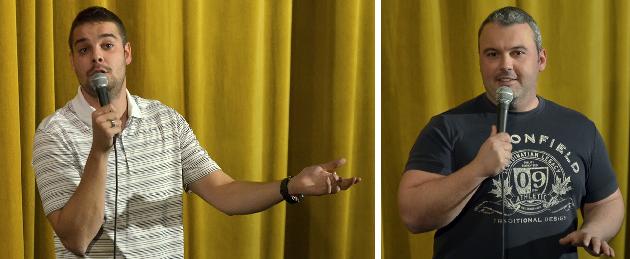 A tavaszi időnek cseppet sem hívható hóesésben is nehezen lehetett parkolóhelyet találni a gyulai művelődési ház környékén, amikor a Dumaszínház komédiásai, Dombóvári István és Kiss Ádám lépett színpadra. Az autókkal telt megállóhelyek után nem meglepő, hogy a színházteremben is telt házas közönség fogadta a humoristákat.
