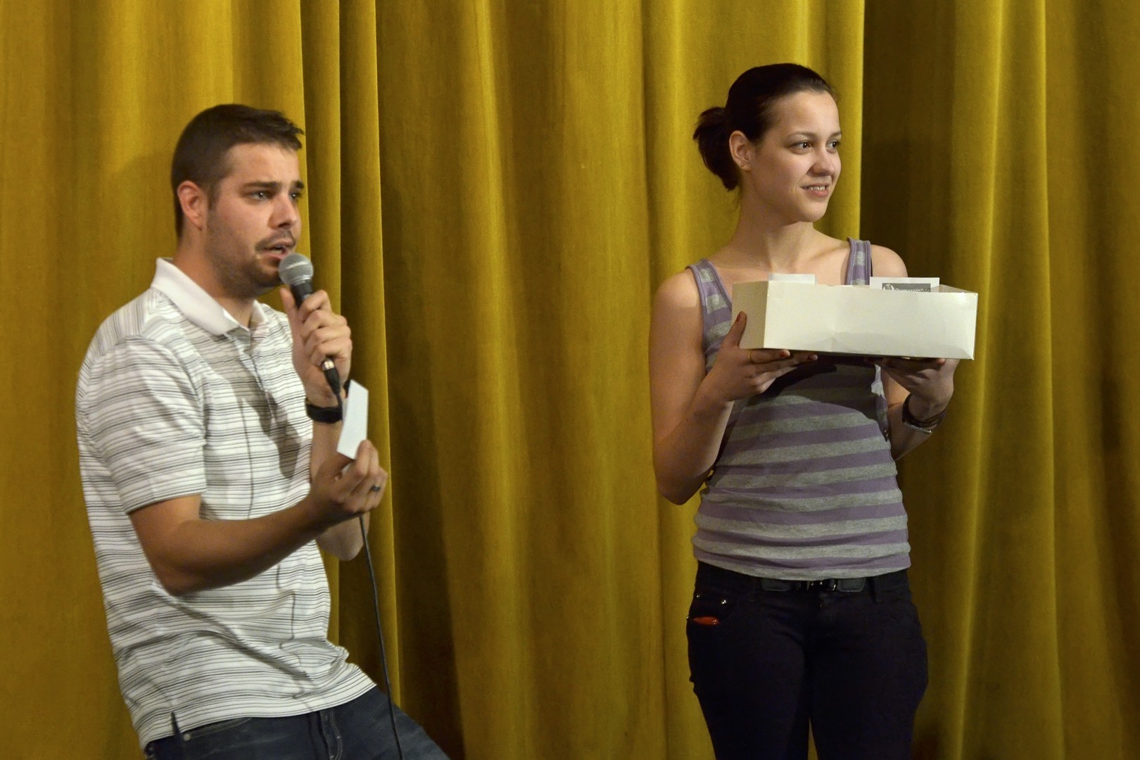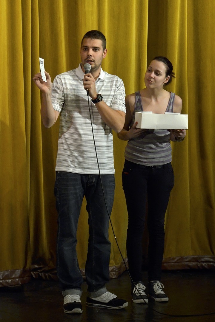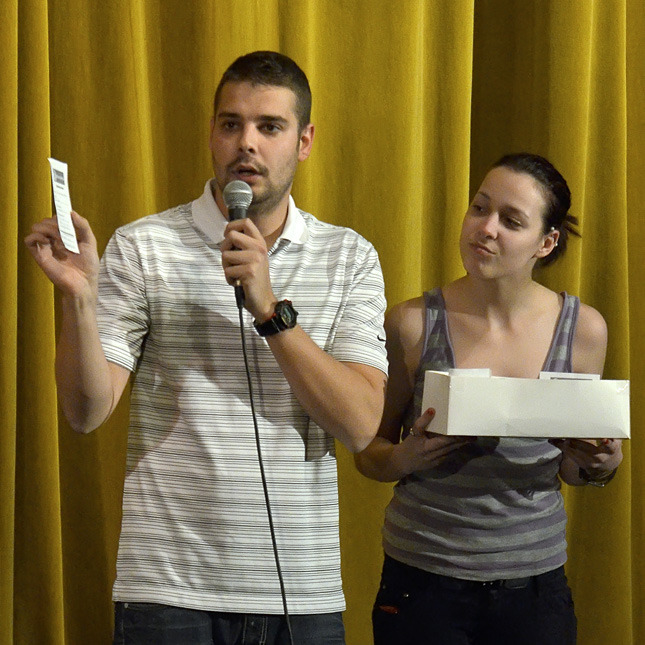 A (kacagtató) műsor végén – szokás szerint – a nézők között kihúztak két-két jegyet a következő Dumaszínház előadásra. A sorsolásból kiderült, a hólapátolós idő ellenére jócskán érkeztek városunkon kívülről is az előadásra, amely ha napsütést nem is, hahotát mindenképpen hozott a hideg, nyirkos kedd estébe.