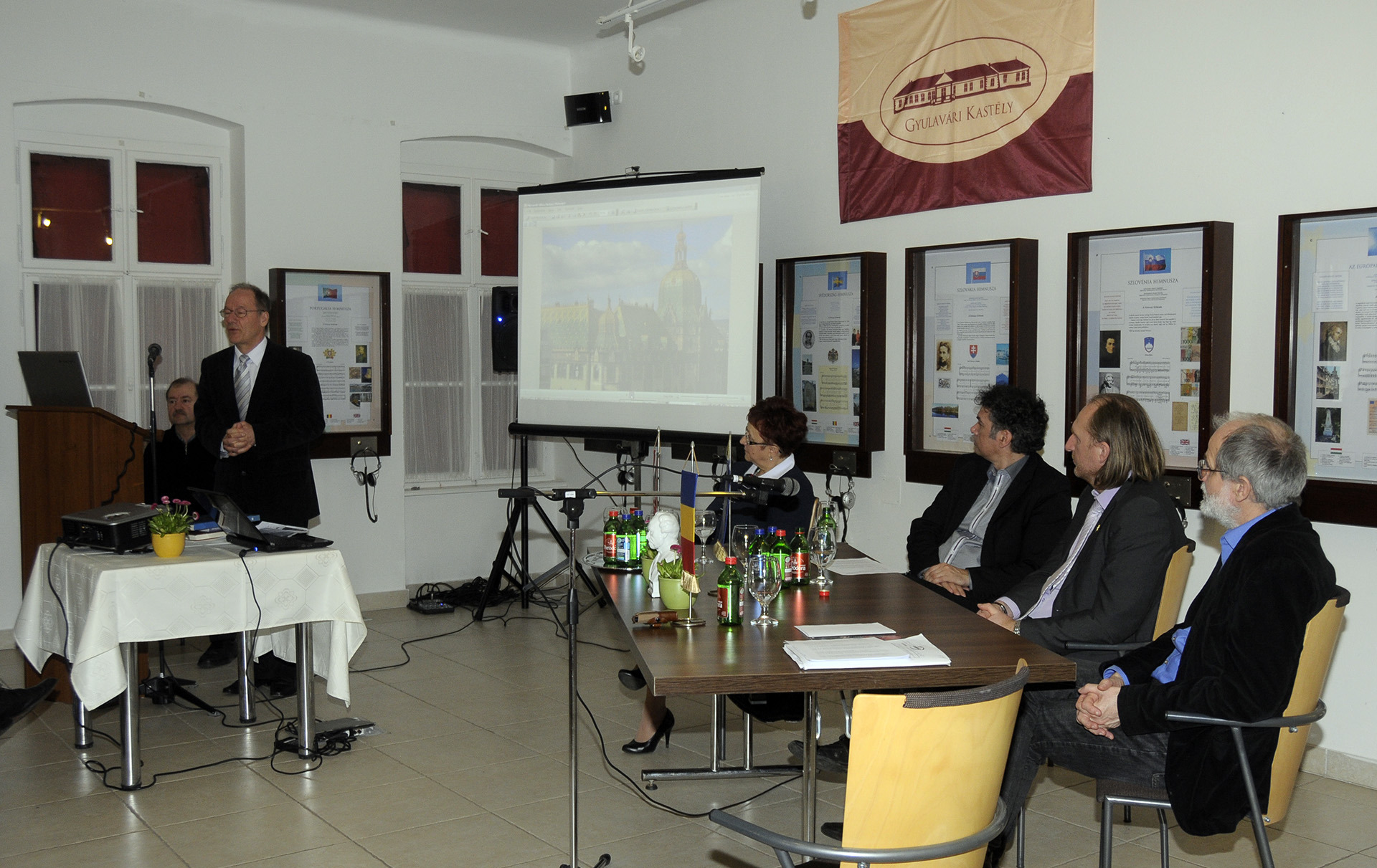 Danielisz Endre nagyszalontai irodalomtörténész, pedagógus előadásában rövid történelmi áttekintést nyújtott a három település kapcsolatáról, az elpusztult és Szalontába olvadt Kölesér helységről, valamint a térség nagy alakjairól, Arany Jánosról, Sinka Istvánról, Zilahy Lajosról és Bay Zoltánról. Ezután Bagyinszki Zoltán tanácsnok, a konferencia főszervezője a régió egy másik közös kapcsolódási pontjáról, a szecessziós építészetről tartott képes előadást. A fotográfus saját képein bemutatta a környéken fellelhető szecessziós jegyeket hordozó architektúrákat. Ilyen irányú könyvajánlójából megismerhettük a nagyszalontai Székely László építészt, akinek keze munkáját dicséri többek között Gyulán a Weisz Mór villa, a Zöldkereszt, vagy a Harisnyagyár épülete.