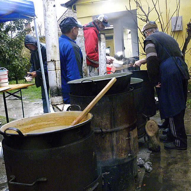 Balogh Lajos önkormányzati képviselő, a Kisgazda Polgári Egyesület gyulai elnöke lapunknak elmondta, a leveshez szükséges zöldségeket és az egyéb hozzávalókat a gazdák adták össze, a kenyeret pedig maga vásárolta meg. Az ételbe a Veres húsbolt jóvoltából füstölt áru és kolbász is került. A rendezvényen a hideg időre való tekintettel forralt bort is osztottak.