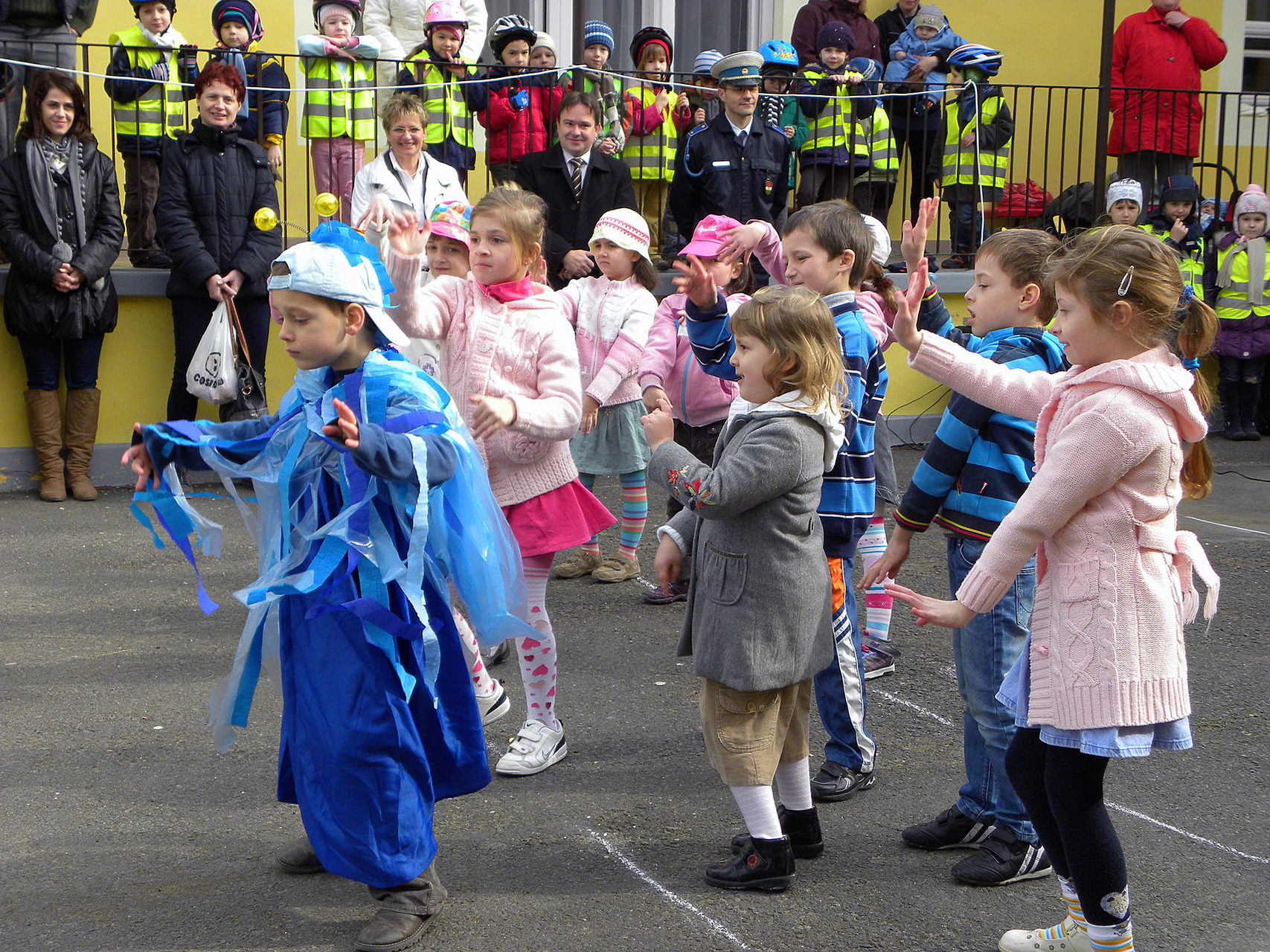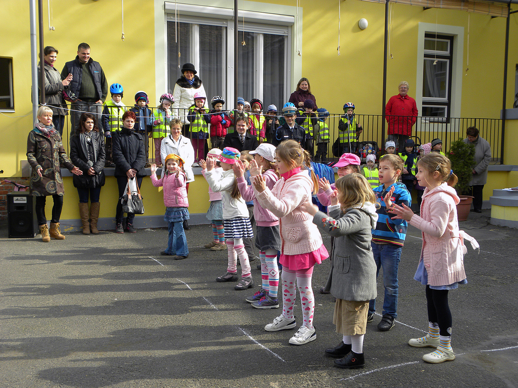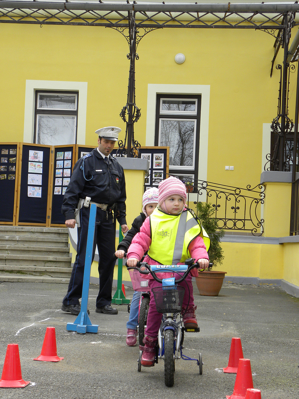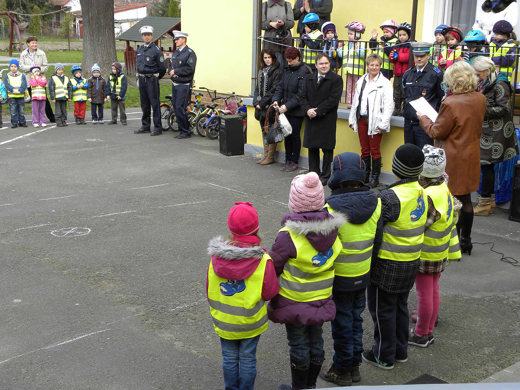 A Gyulai Rendőrkapitányság részéről Varga Attila rendőrhadnagy köszöntötte a gyerekeket és a felnőtteket. Beszédében hangsúlyozta, nagy örömmel oktatják a kicsiket a KRESZ szabályaira, és szeretnék, ha az a tudás, amit átadnak, felnőttkorukig elkísérné az óvodásokat.