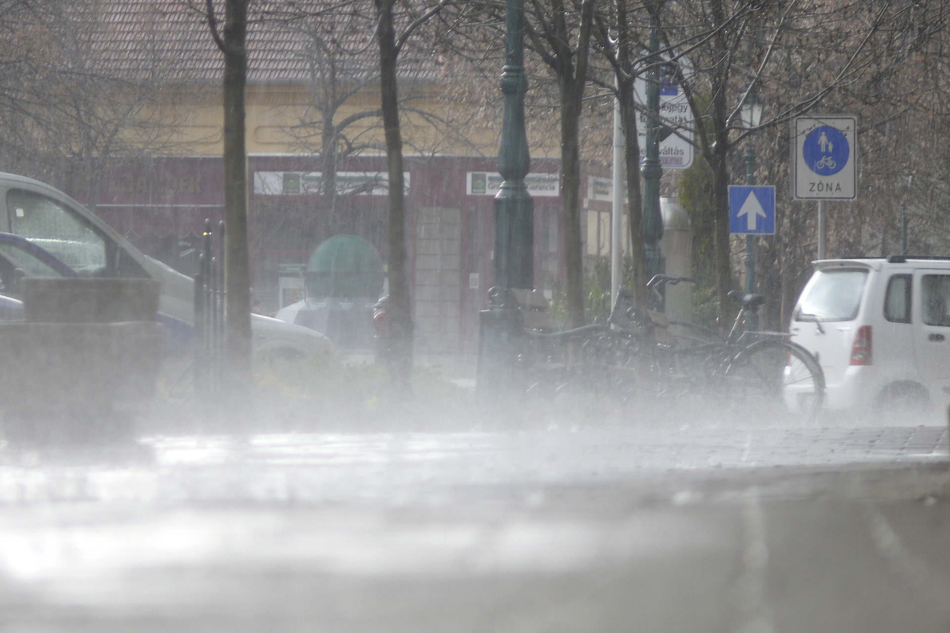 Véget ért a vihar Gyulán. Hosszú perceken keresztül szakadt az eső. Égzengéssel és villámlással érkezett a felhőszakadás Gyulára. Az utcák elnéptelenedtek, fedett helyre menekült mindenki a vihar elől. Kisebb mennyiségű jég is kísérte a nagymennyiségű csapadékot. Amilyen hirtelen jöttek a feketekék viharfelhők, olyan hirtelen tűntek el a város egéről. Egy szeszélyes áprilisi nap. Tükör-esőtócsák mindenütt. Gyula felett újra kék az ég, kisütött a tavaszi Nap.