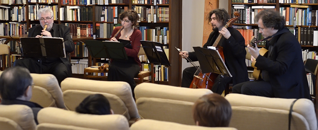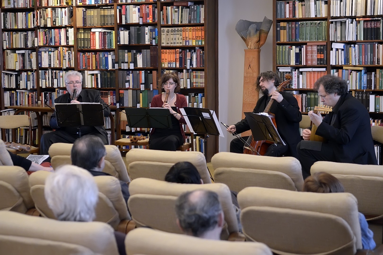 A historikus előadásmódú kvartett a 15. századból, Mátyás király udvarából származó táncokkal, többek között Pietro Bono udvari lantos pennájából származó művekkel indította a magyar zene évszázadaiból merített történeti áttekintést. Három 16. századi Balassi Bálint énekkel folytatódott a hangverseny, majd újabb évszázados ugrással a Lőcsei kódexből és az Apponyi kéziratból hallhattunk táncokat.