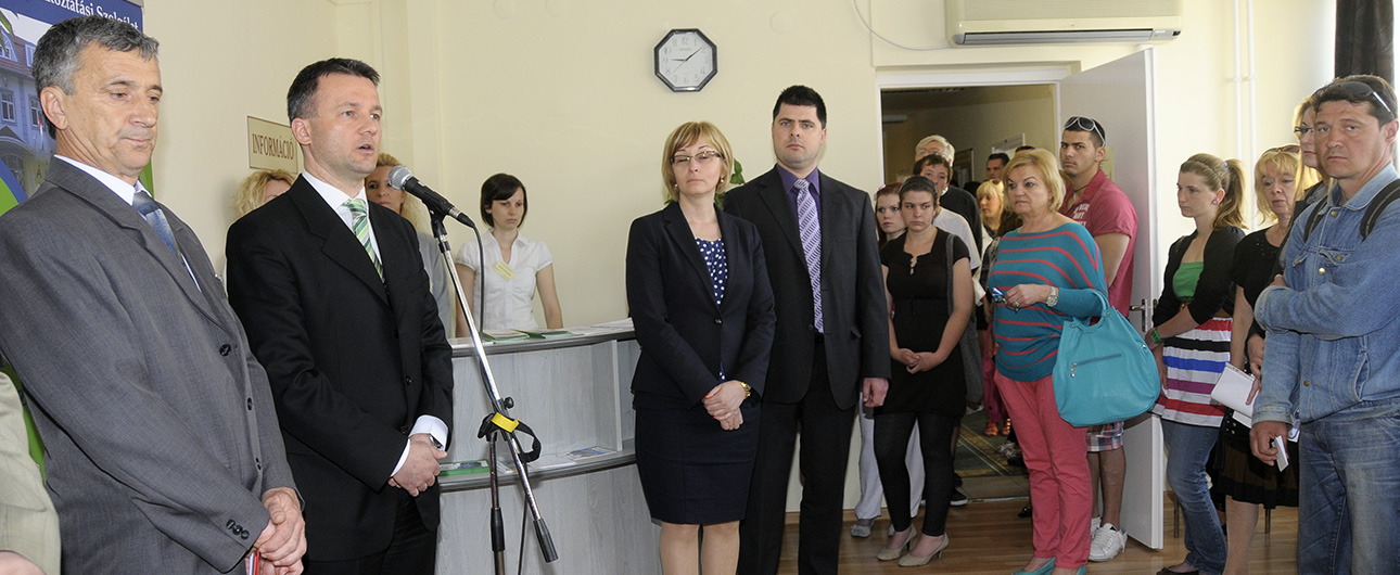 Az álláskeresőket Zelenyánszki Miklós kirendeltségvezető köszöntötte, majd dr. Görgényi Ernő, Gyula város polgármestere nyitotta meg a rendezvényt.