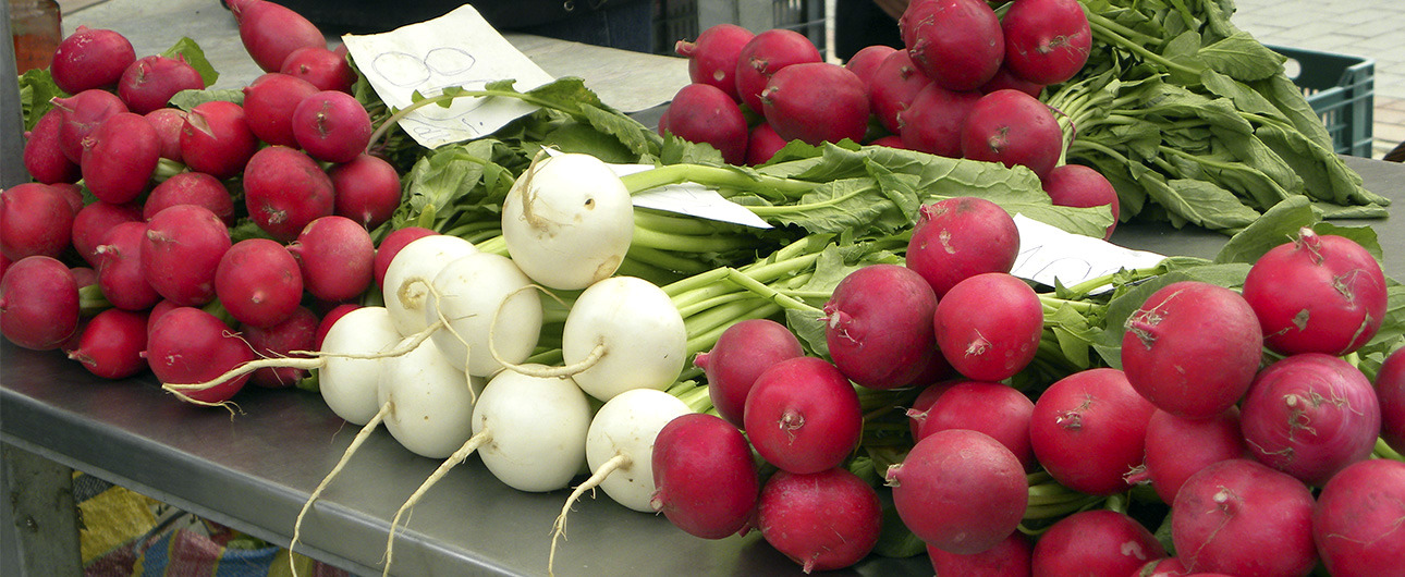 Ezen a héten két korai zöldséget, retket és újhagymát kerestünk a gyulai piacon. Az általunk megkérdezett zöldségárusok legalább húsz-harminc éve foglalkoznak zöldségtermesztéssel – sőt akadt, aki negyven éve árul a piacon – nem véletlen tehát, hogy a tejtermékeket kínáló kofákhoz hasonlóan többségük állandó vevőkörrel rendelkezik.