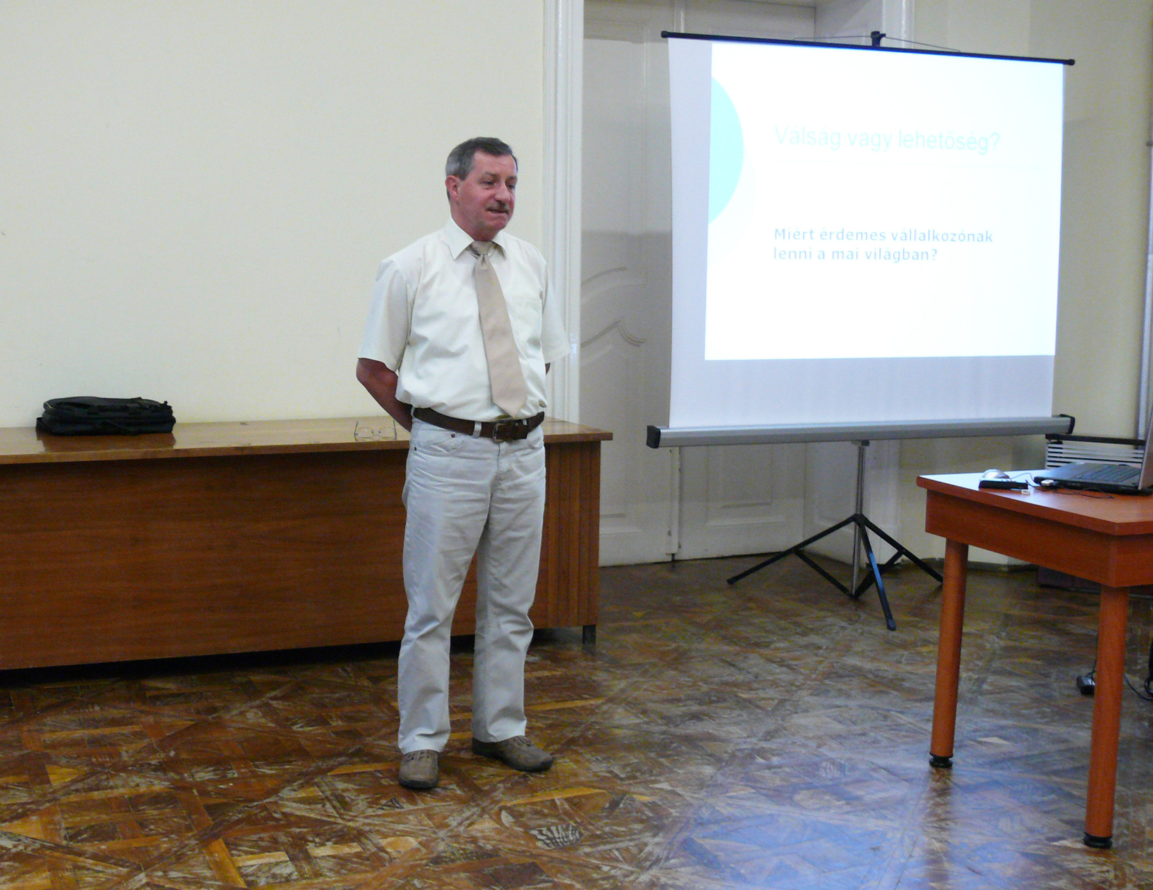 Váláság, vagy lehetőség? című előadással folytatódott ma este az önkormányzat gazdaságfejlesztési csoportjának vállalkozói fórumsorozata. A programon Budai Béla, a Delta Biztonságszolgálat Kft. ügyvezetője beszélt a vállalkozóvá válás folyamatáról.