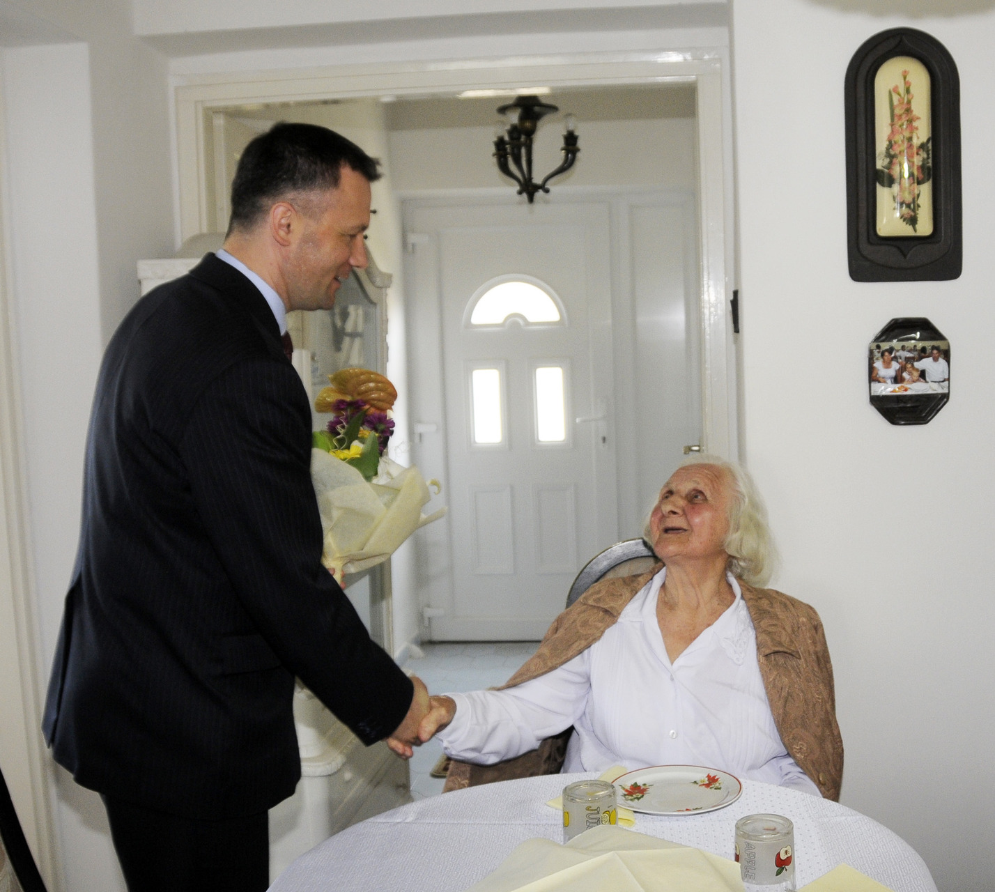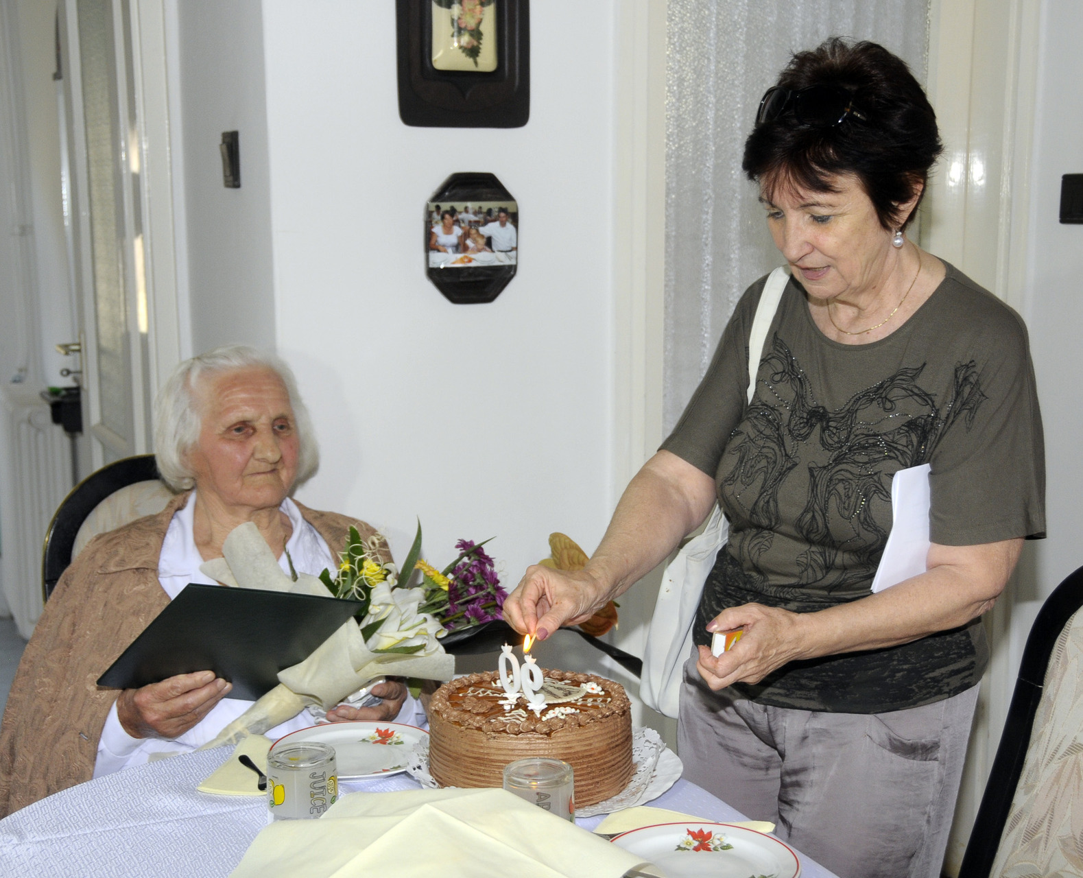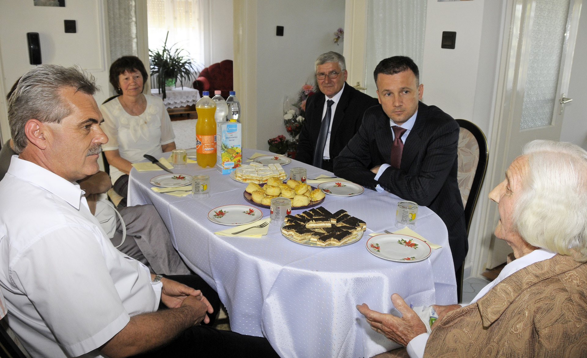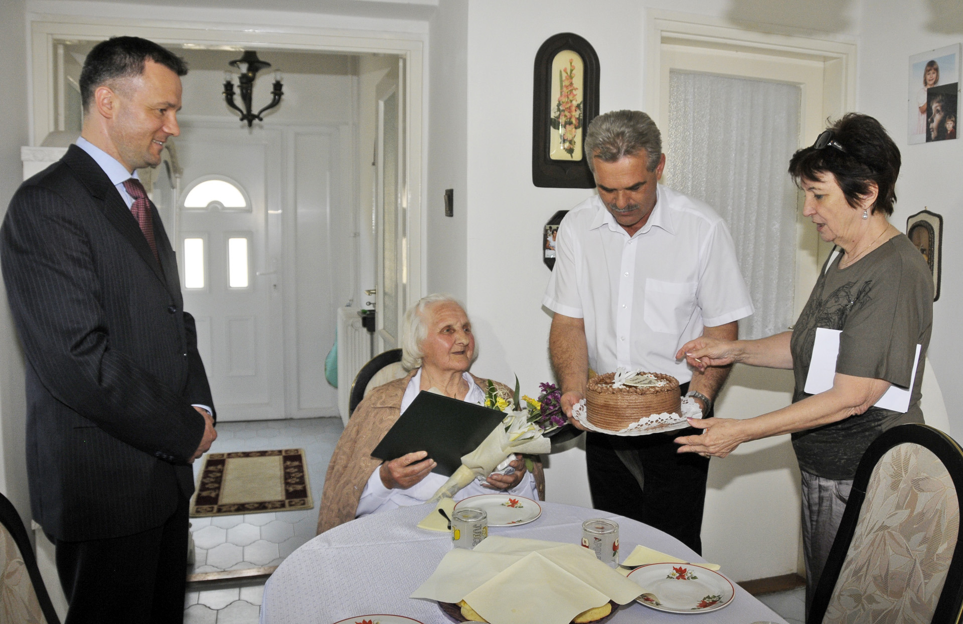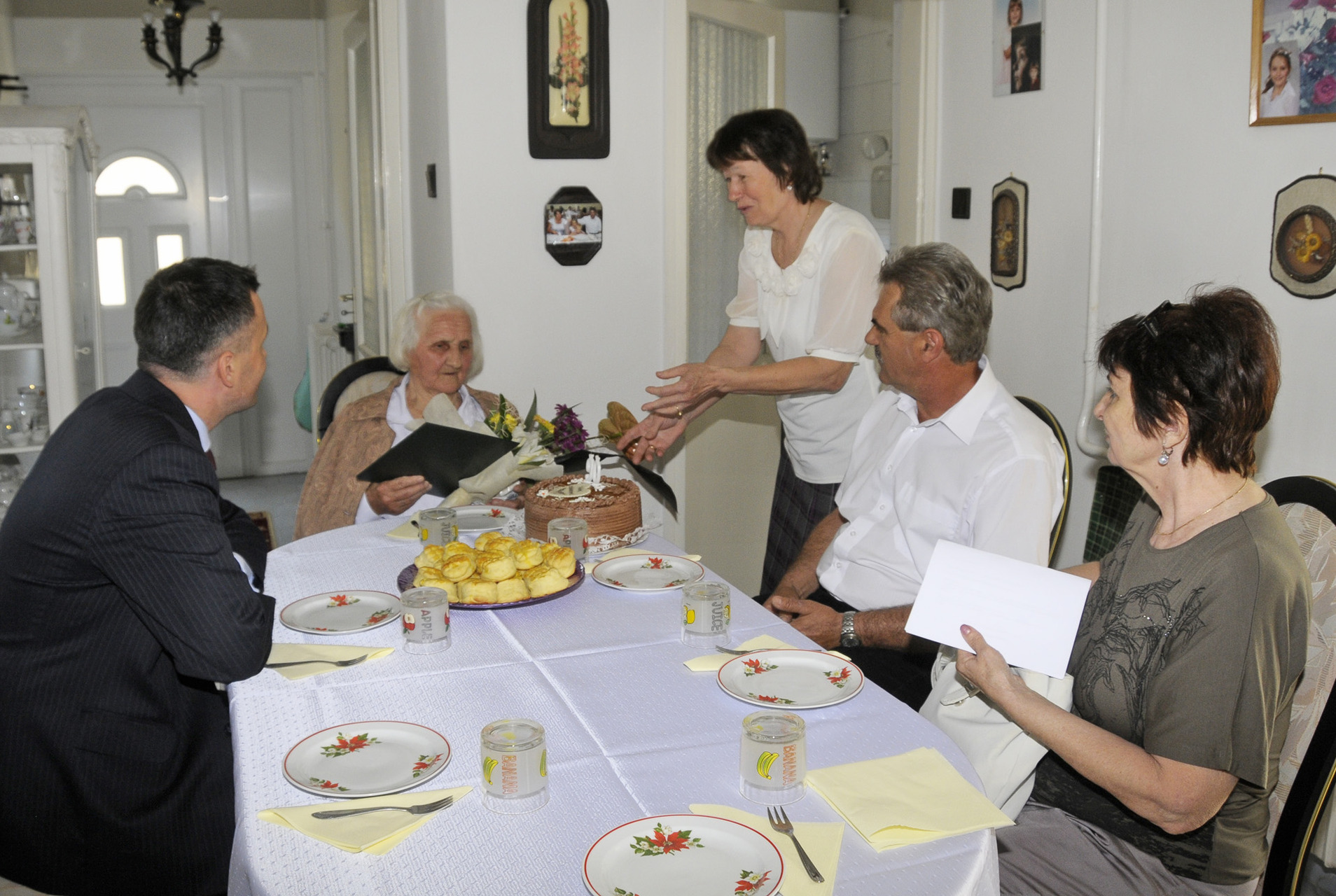 90. születésnapja alkalmából Petrás Jánosné Zita nénit köszöntötte ma délelőtt a városvezetés Gyulaváriban. Becsyné dr. Szabó Márta címzetes főjegyző, dr. Görgényi Ernő polgármester és Szabó Károly, a körzet képviselője virágcsokorral, a Magyarország miniszterelnöke által aláírt emléklappal és tortával ajándékozta meg a családja körében ünneplő szépkorú asszonyt.