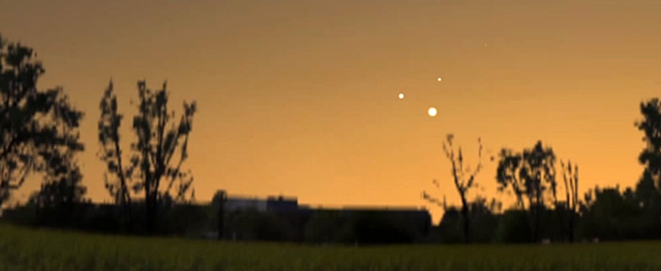 Látványos háromszöget alkot a ma esti égbolton a Jupiter, a Vénusz és a Merkúr. Még Gyula város fényszennyezett belvárosában is látszik majd a három bolygó által kirajzolt egyenlő oldalú háromszög. Legjobban napnyugta után fél-egy órával lehet majd látni, vagyis olyan kilenc óra környékén a nyugati horizont felett. A szürkületben először a Vénuszt pillanthatjuk meg, amelynek látszó fényessége a legnagyobb a három planéta közül.