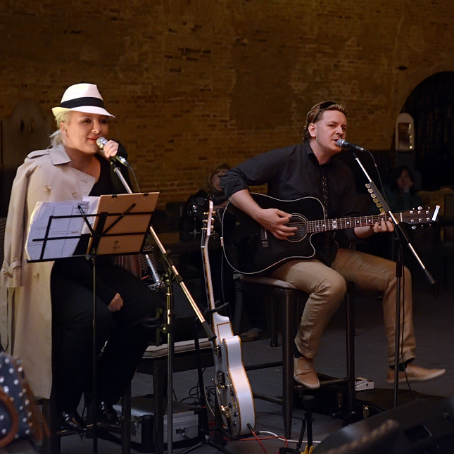 A karakteres orgánumú gyulai énekesnő, Szabó Eszter egy Jamiroquai dalban csatlakozott zenész – és nem mellesleg – élete társához. Ritmusból sem volt hiány, ugyanis a lendületes stílusban játszó gitáros egy külön erre a célra kifejlesztett, lábdobhangot adó hangszertokon is hozta az egyeket. Közvetlen hangulatú koncertjükön elhangzottak még dalok Frank Sinatra, a Gipsy Kings, az AC/DC, John Denver, Norah Jones, Aretha Franklin, Édith Piaf és Elvis Presley előadóktól, illetve szerzők kottáiból, amelyek a bő egy órás koncert során különböző utakra és korokba vitték el a hallgatókat.
