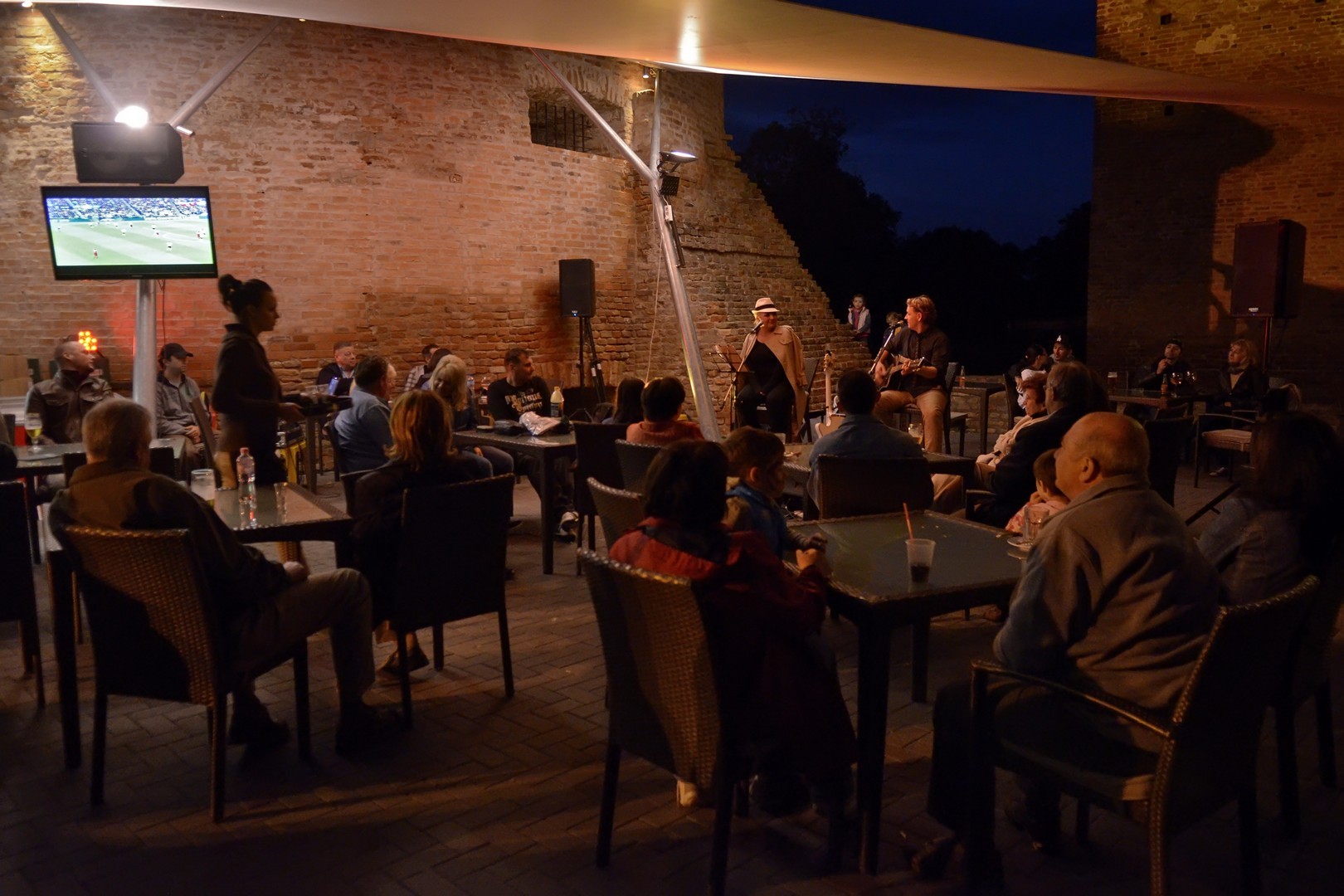 Kissé hűvös, borús estének indult a szombati, amikor városunk sztárpárja, Szabó Eszter és Kontor Tamás készült fellépni a gyulai Rondella teraszának színpadjára. Az élénk szél miatt, elővigyázatosságból a szórakozóhely ponyvája alatt indult a buli, így már nem kerülhetett veszélybe sem a színpadi cucc, sem a hangulat.