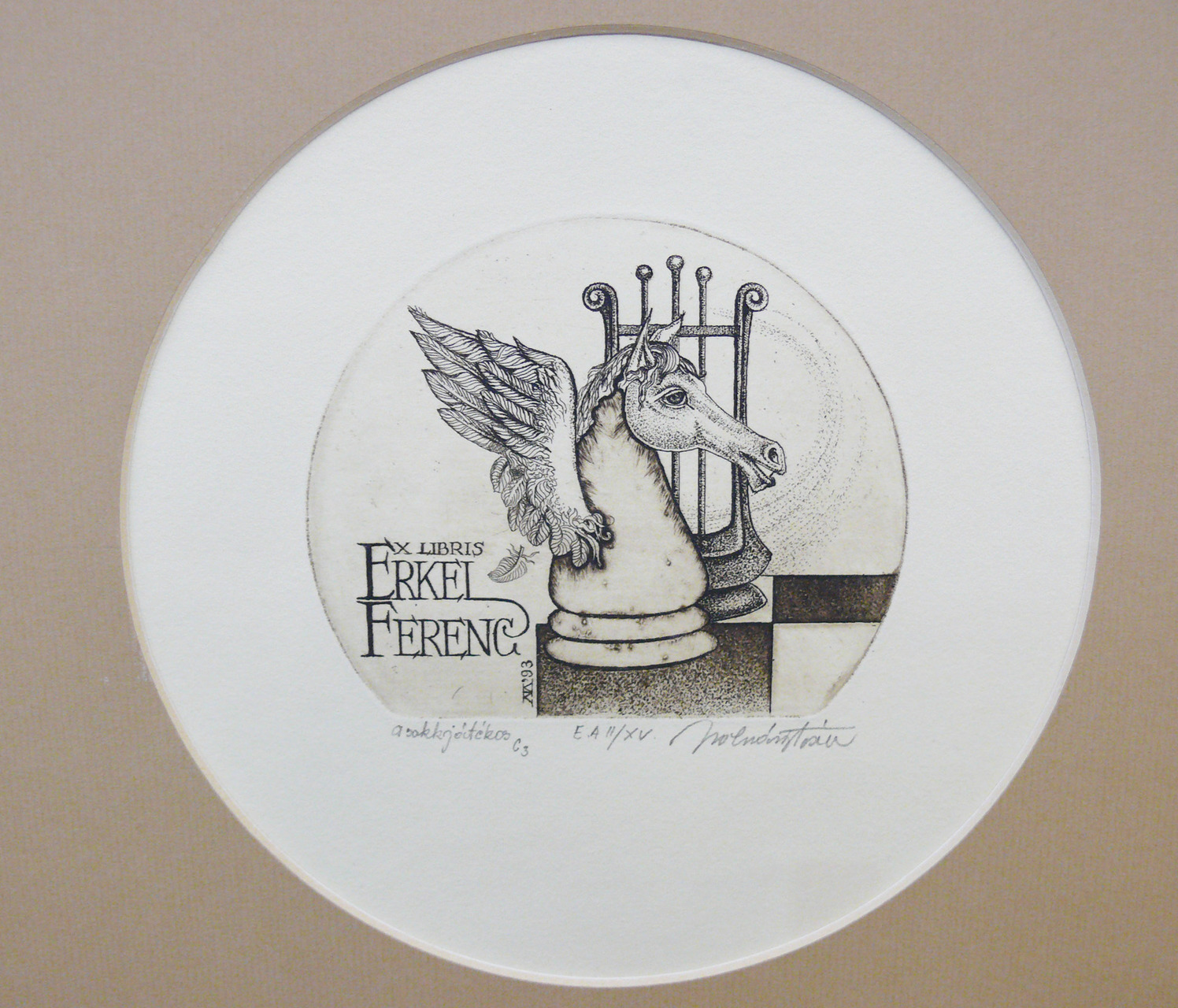 - Gyula városának Exlibrise cím kicsit megtévesztő lehet, hiszen itt nem arról van szó, hogy városunk nagyjainak exlibrisét mutatjuk be, hanem nagy szülöttjeinket, Dürert és Erkelt idézzük fel. Az első nemzetközi kiállításunkra ennek kapcsán hirdettük meg a pályázatot, melyre 28 magyar és 22 külföldi grafikus küldte be pályaművét. Annak idején 105 képet tudtunk kiállítani a Dürer teremben. Ennek tömörített változatát láthatja a közönség. A műveken nemcsak Erkel és Dürer arcvonásai elevenednek meg, hanem az általuk képviselt eszmék: Dürer kapcsán a János passió, az apokalipszis villan fel, mellette Erkel különböző operarészletei tanulmányozhatók – ajánlotta a látogatók figyelmébe a kiállítást dr. Németh Csaba.