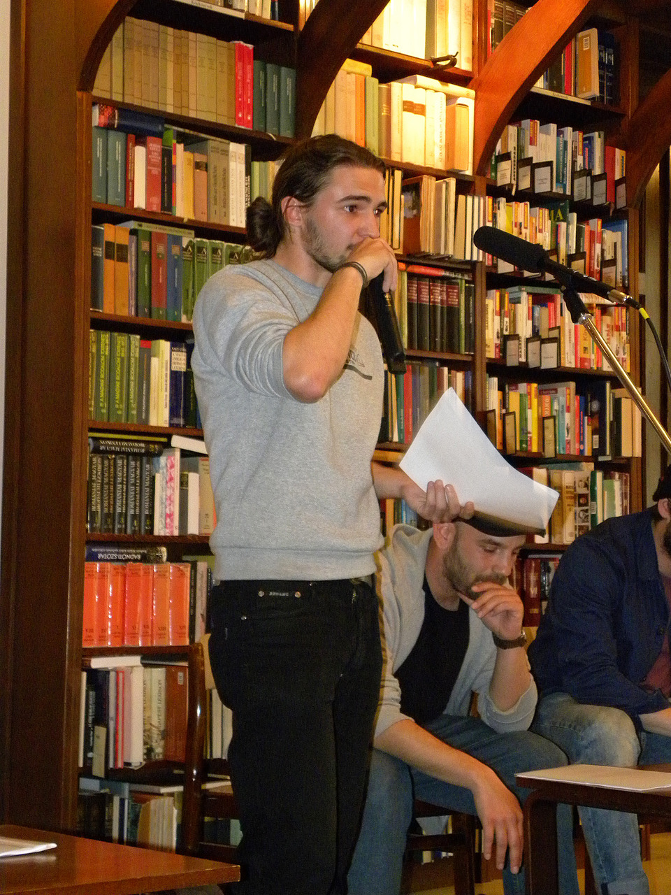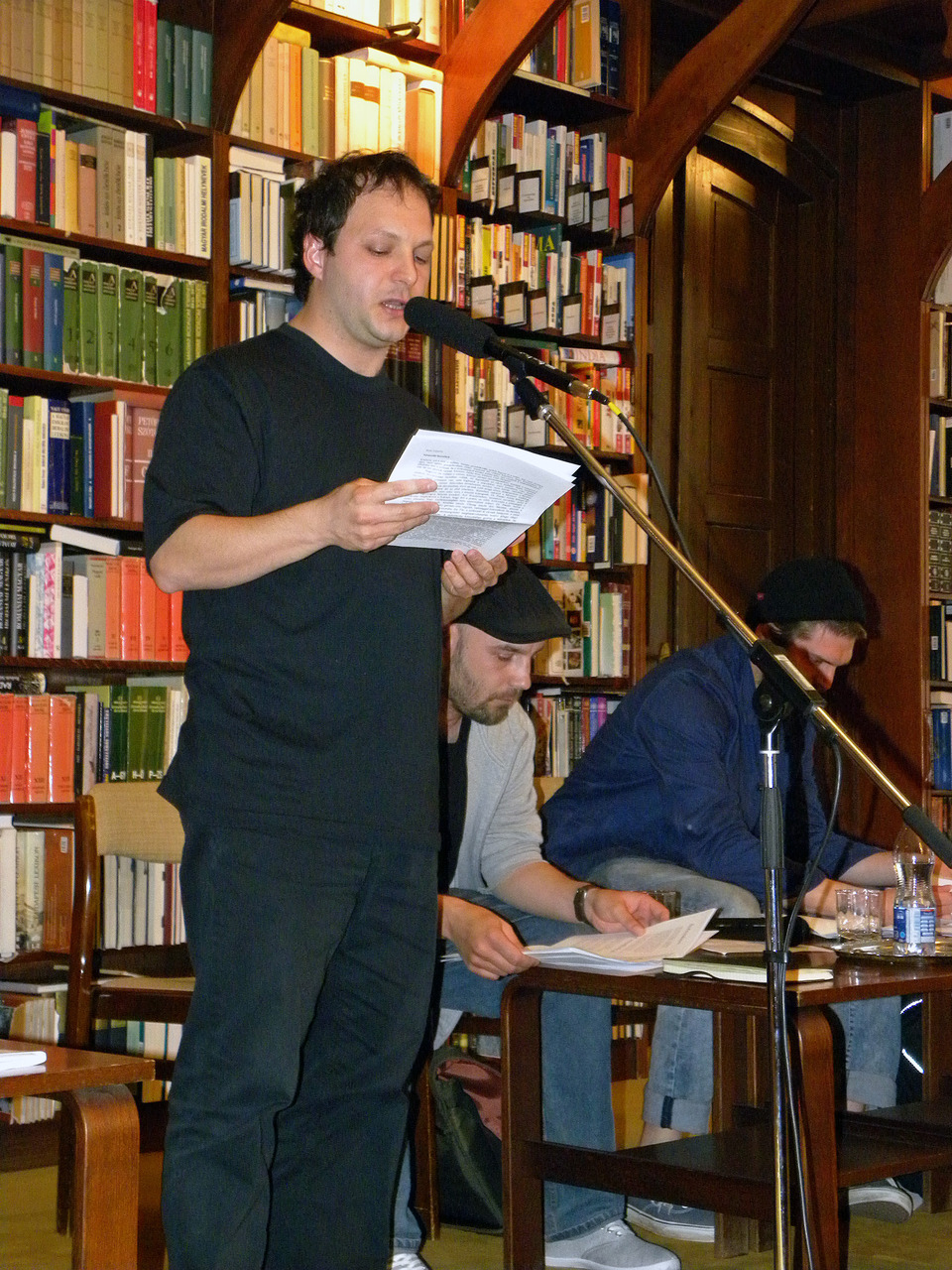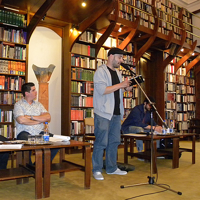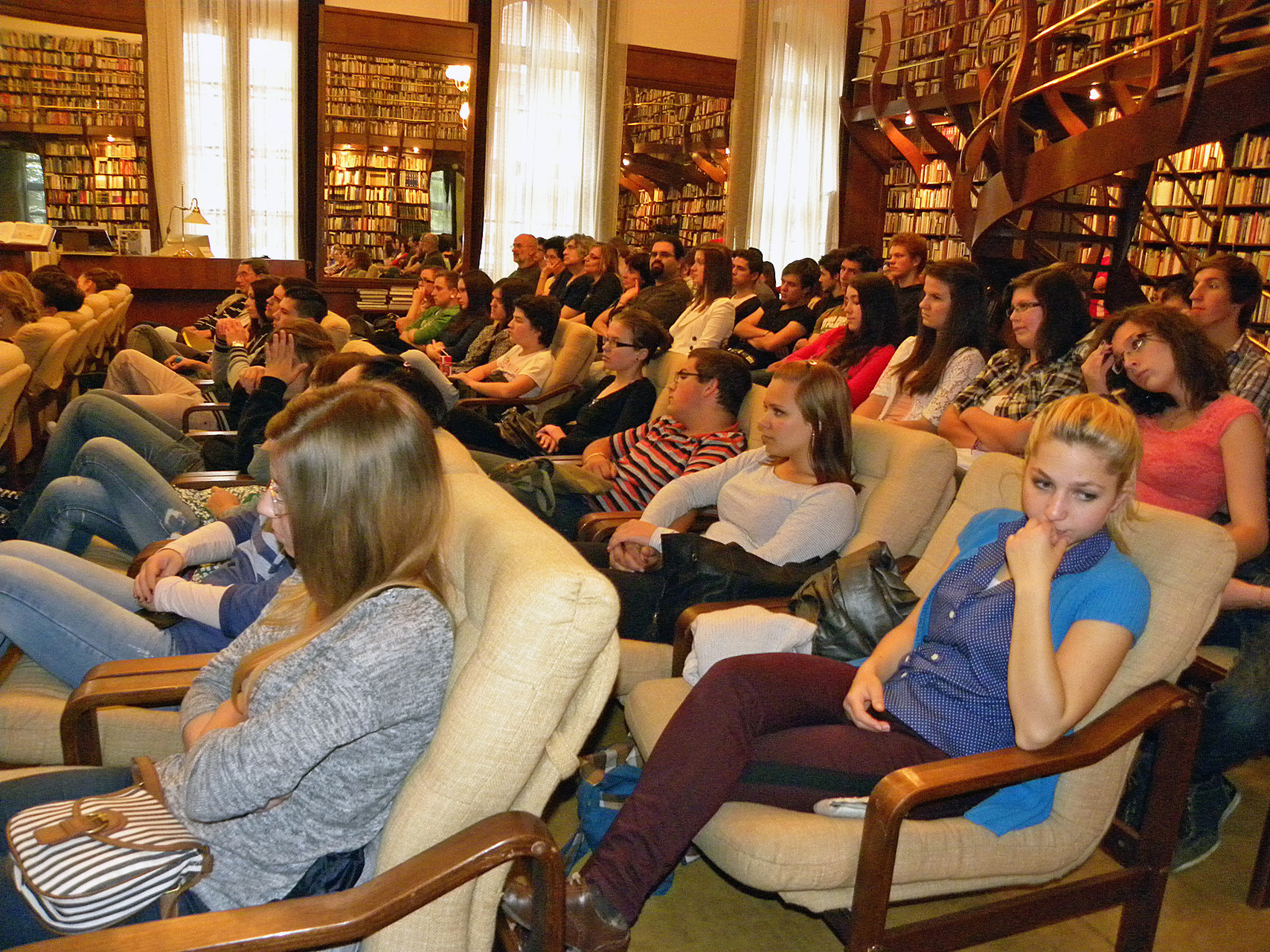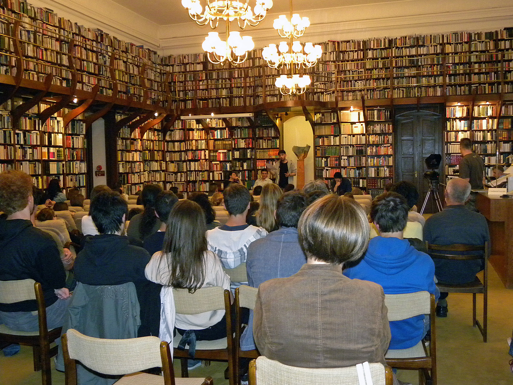 A Simonyi-olvasóteremben a gyulai slammertalálkozó ötletgazdája, Schriffert-Tóth Eszter köszöntötte a megjelenteket, majd Csider István Zoltán, a Népszabadság újságírója, Hartay Csaba költő, blogger, Kiss László író, valamint Závada Péter költő, rapper olvasták fel szövegeiket a publikumnak. A estét műfaji és stiláris sokszínűség jellemezte, hallhattunk slameket, verseket és rövidprózákat is.