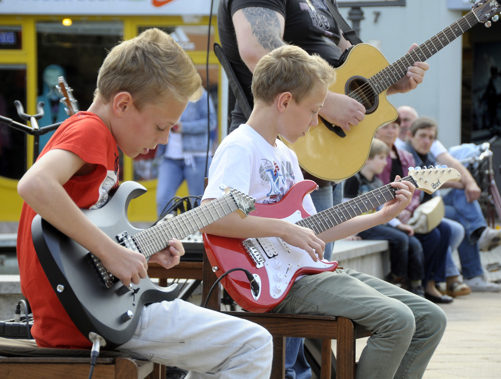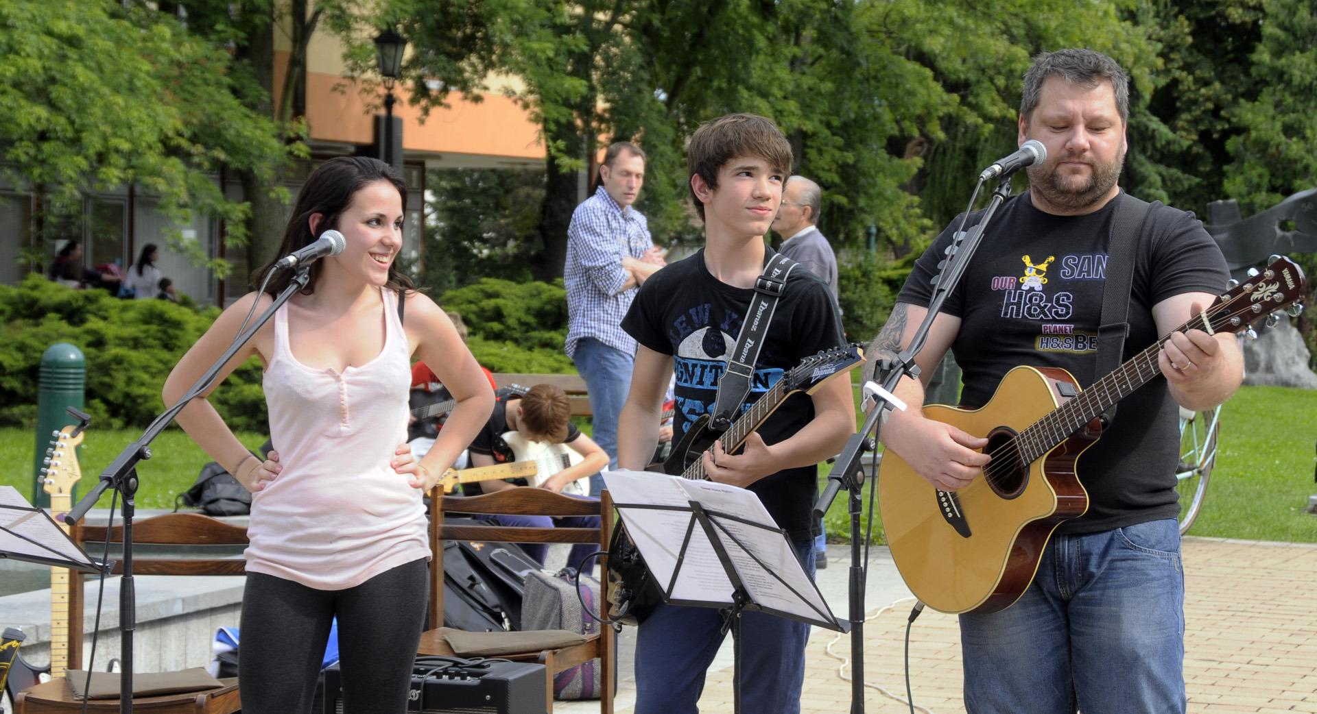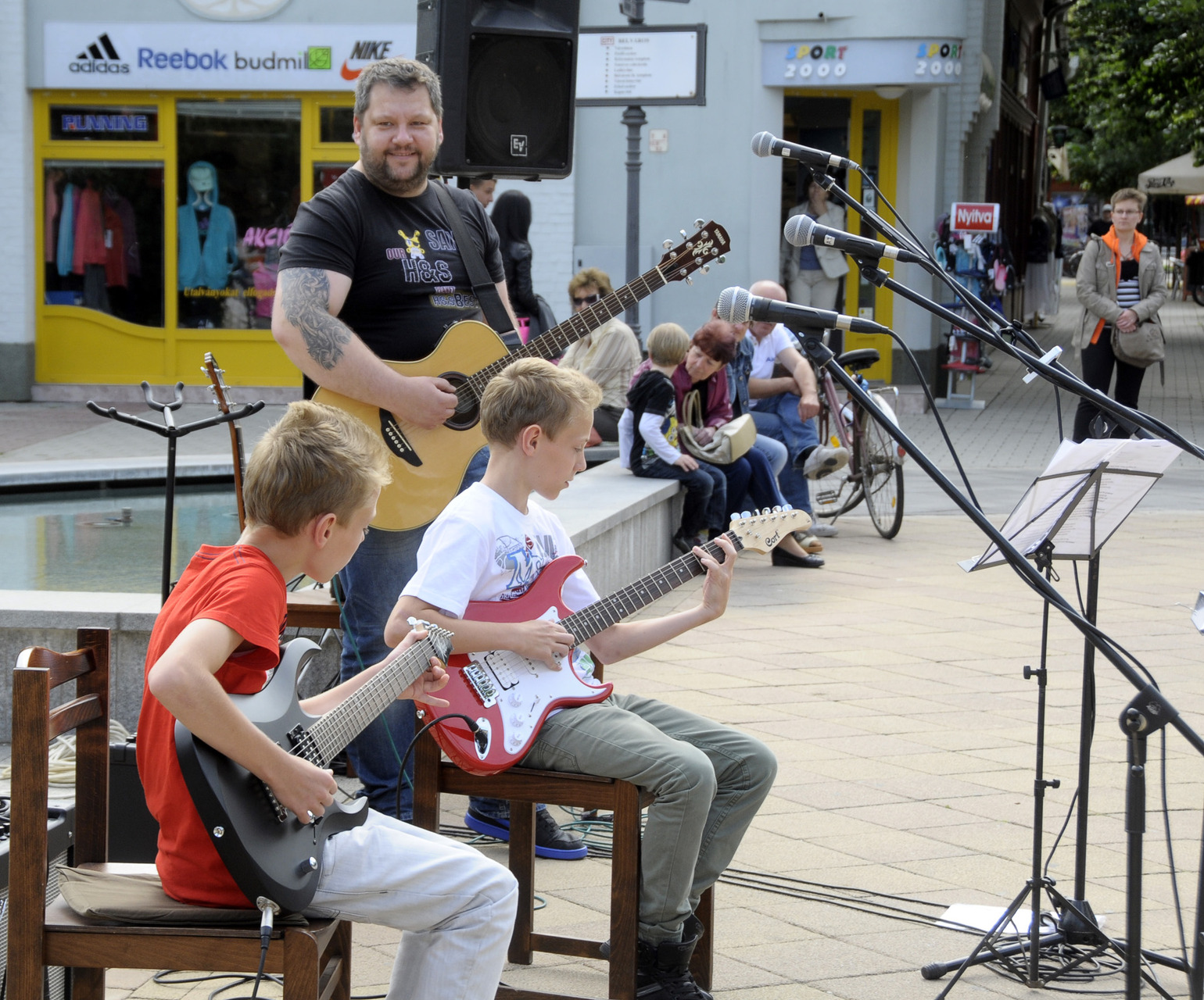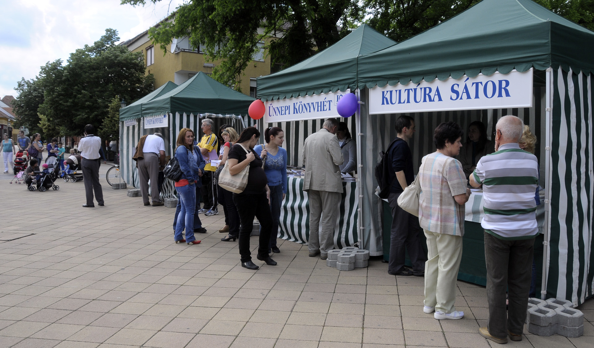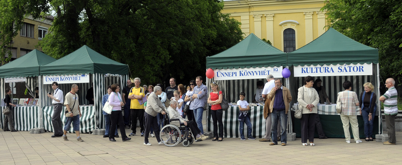 Az ünnepi könyvhét gyulai programsorozata már tegnap este megkezdődött a Mogyoróssy János Városi Könyvtárban, ám ma délután már könyvkiállításon és könyvvásáron is lapozgathattak, szemezgethettek a literatúra kedvelői. Eközben – az IQ Könyvesbolt, a Békés Megyei Levéltár, az Erkel Ferenc Múzeum Barátainak Köre és a Dürer Nyomda Kft. standjával szemben – Antovszki Tamást és gitársulijának növendékeit hallgathatták, akik népszerű dalok gitárátiratával szórakoztatták az olvasó közönséget a Harruckern téren.