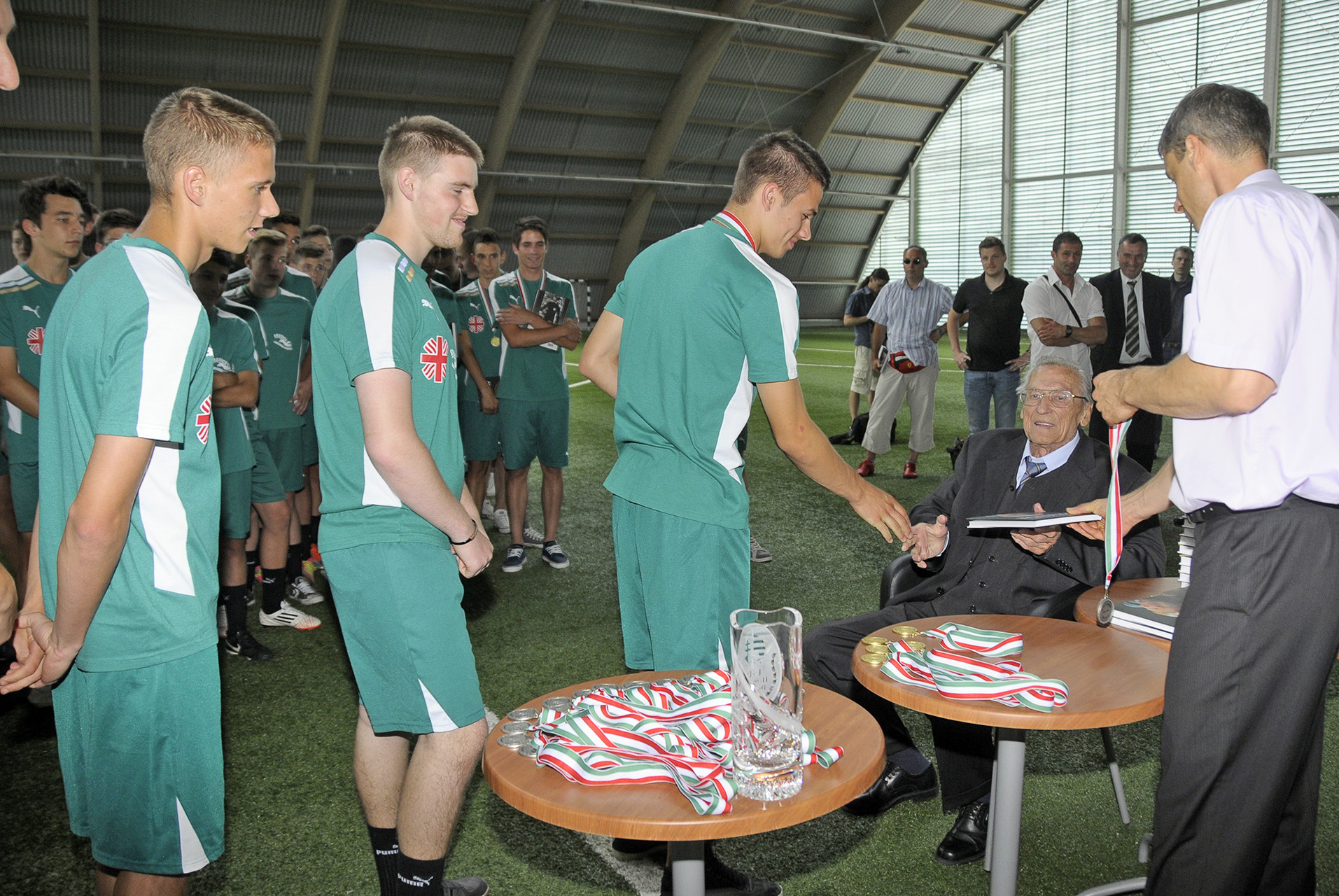 - Ez az érem hosszú éveken keresztül kötelezni fog benneteket a nagyobb eredmények elérésére. Ezt soha ne felejtsétek el, amíg erőtök és lelketek van ehhez a gyönyörű szép játékhoz – mondta a Grosics Gyula.