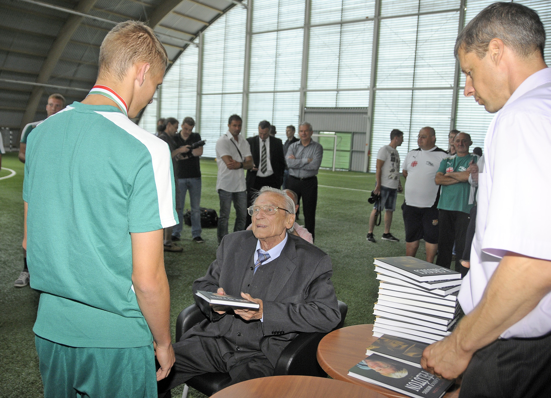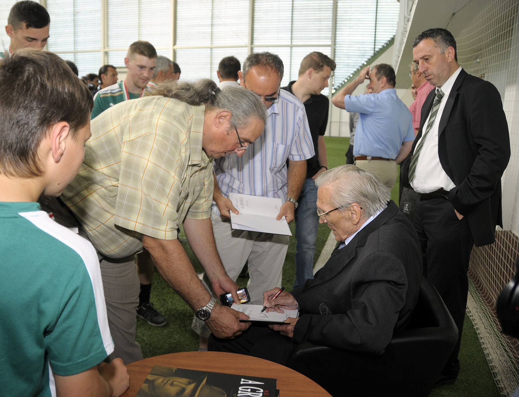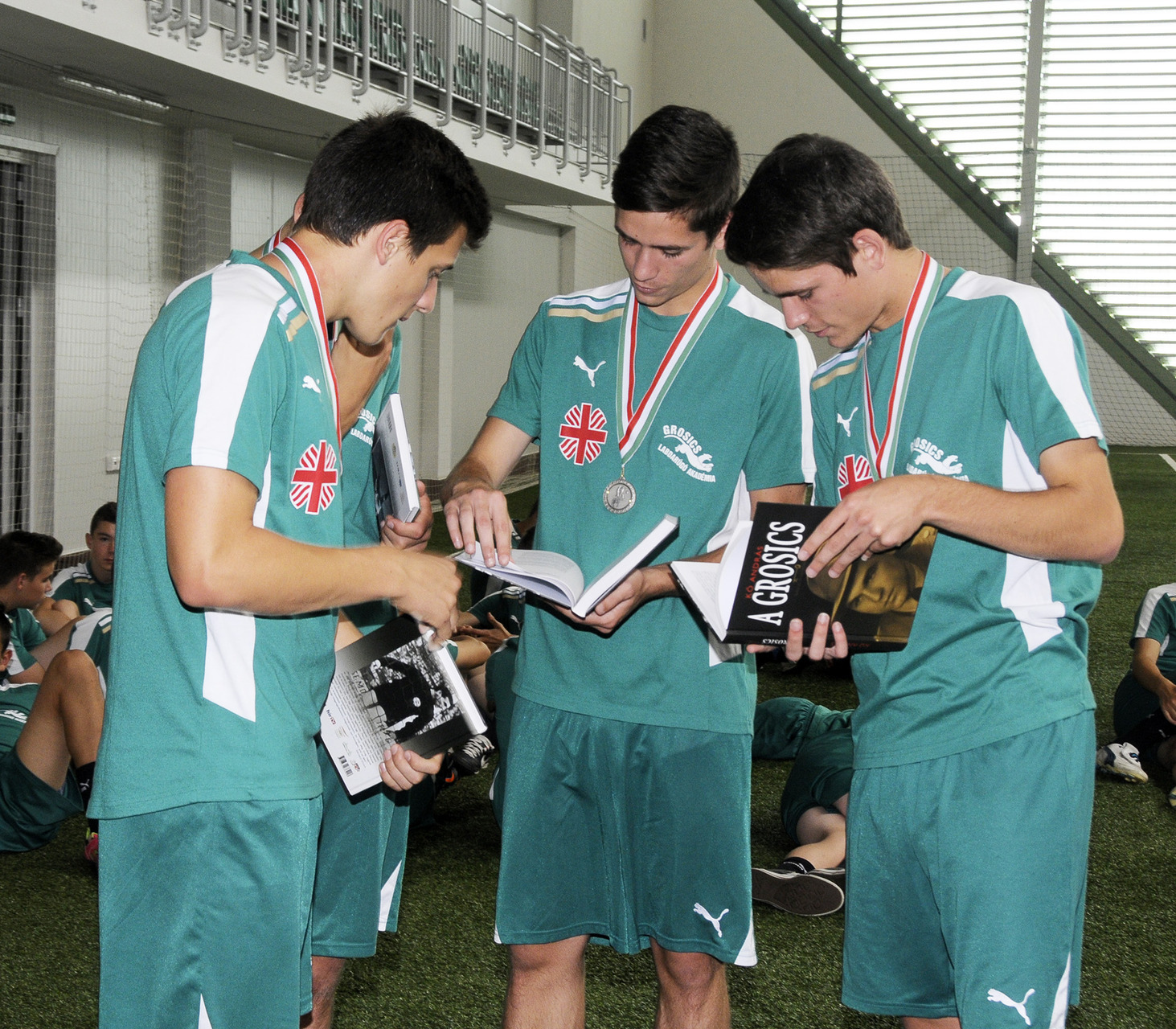 A köszöntők után az Aranycsapat kapusa adta át az érmeket – és egy-egy A Grosics című kötetet az ifjú futballistáknak, akik rögvest dedikáltathatták is ajándékukat.