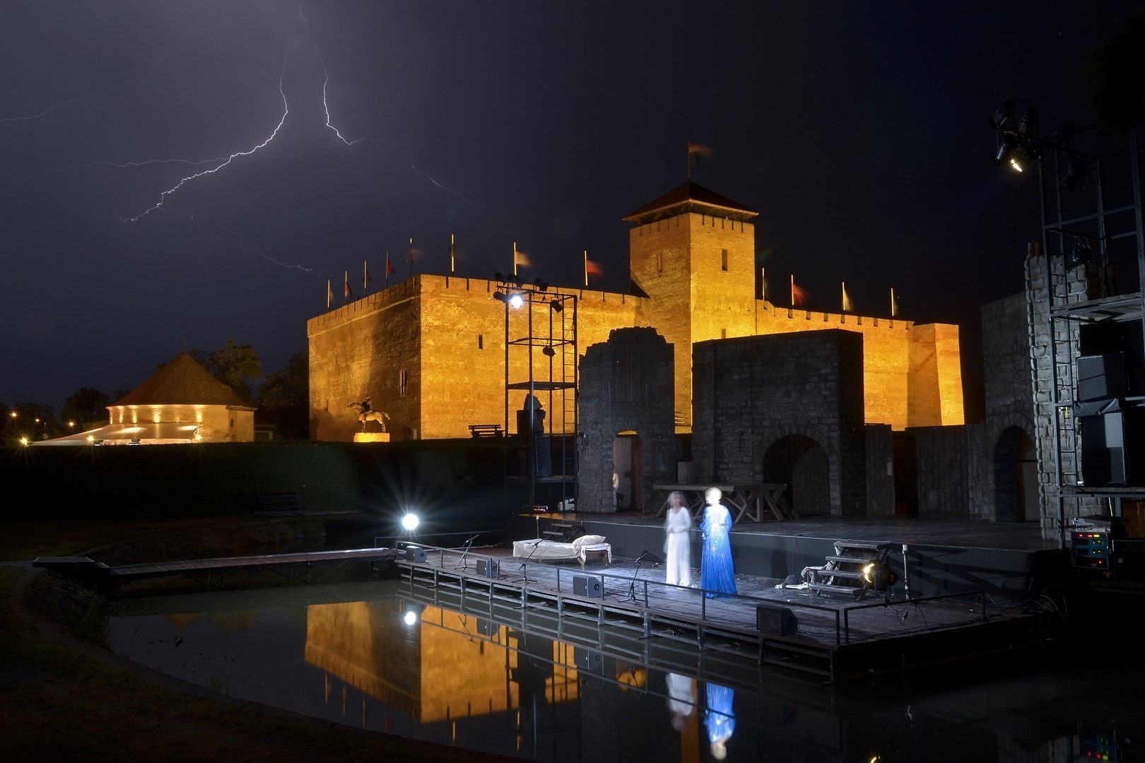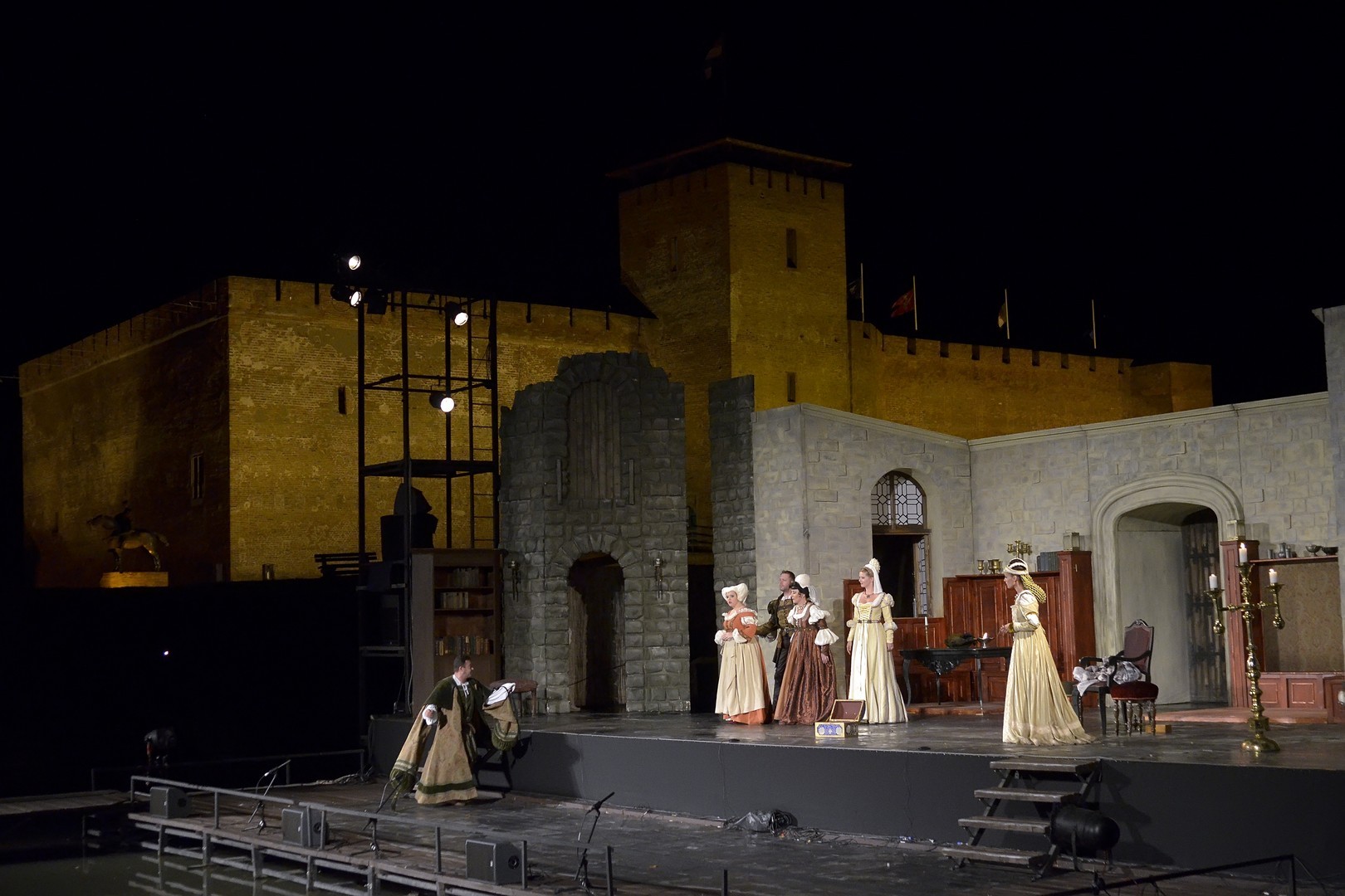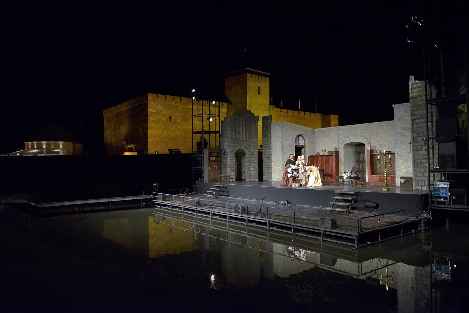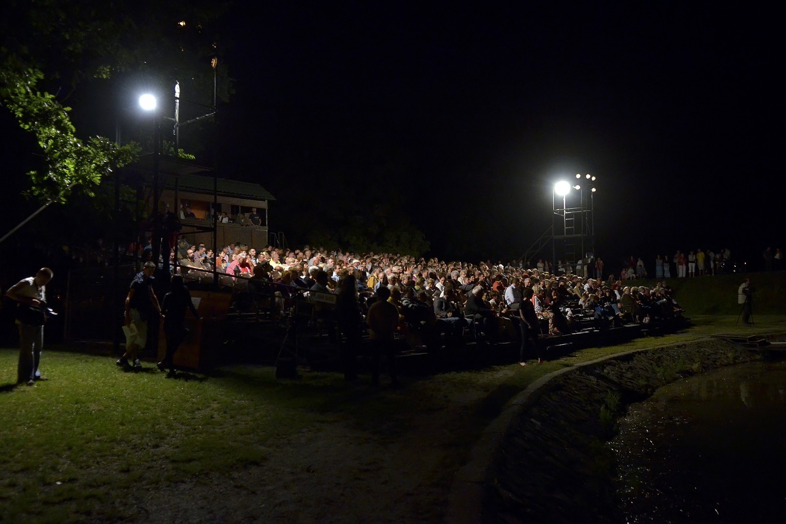 A Gyulai Várszínház látványos évadnyitó ünnepsége után Heltai Jenő A néma levente című vígjátéka következett a Tószínpadon. Az esti égszakadás miatt csúszott az előadás is, úgyhogy tízet ütött már az óra, amikor elkezdődött a komédia. A morcos időjárás miatt ugyan nem telt meg az összes széksor, ám a grandiózus hatású díszletek és a kosztümös jelmezek így is több száz nézőt vonzottak a tavi deszkák elé.
