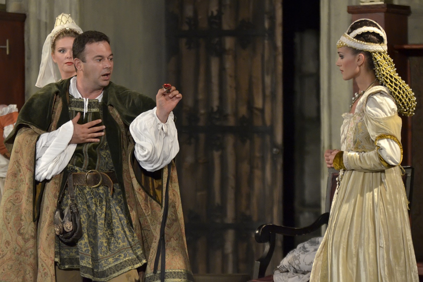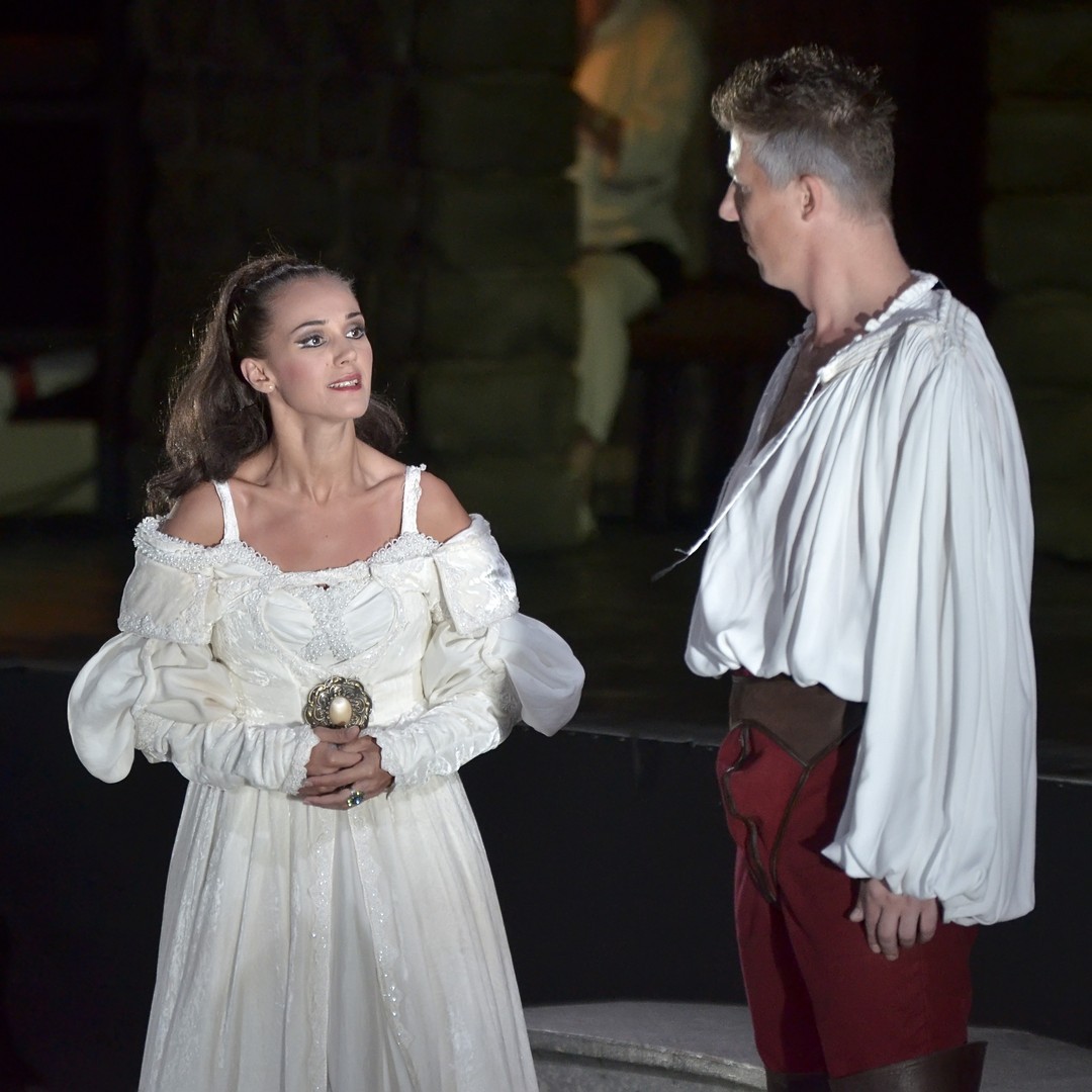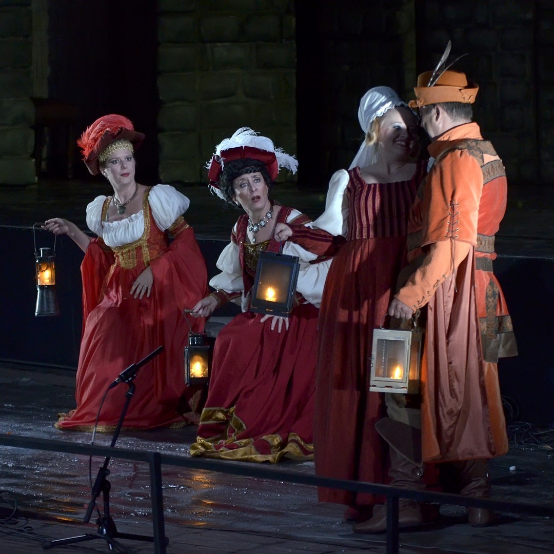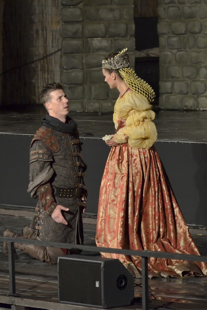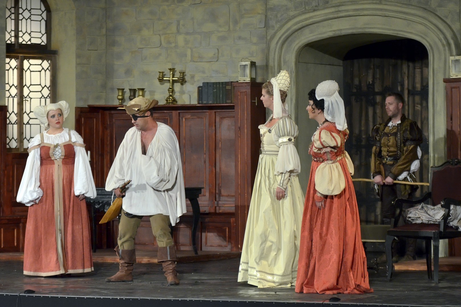 A Gyulai Várszínház látványos évadnyitó ünnepsége után Heltai Jenő A néma levente című vígjátéka következett a Tószínpadon. Az esti égszakadás miatt csúszott az előadás is, úgyhogy tízet ütött már az óra, amikor elkezdődött a komédia. A morcos időjárás miatt ugyan nem telt meg az összes széksor, ám a grandiózus hatású díszletek és a kosztümös jelmezek így is több száz nézőt vonzottak a tavi deszkák elé.
