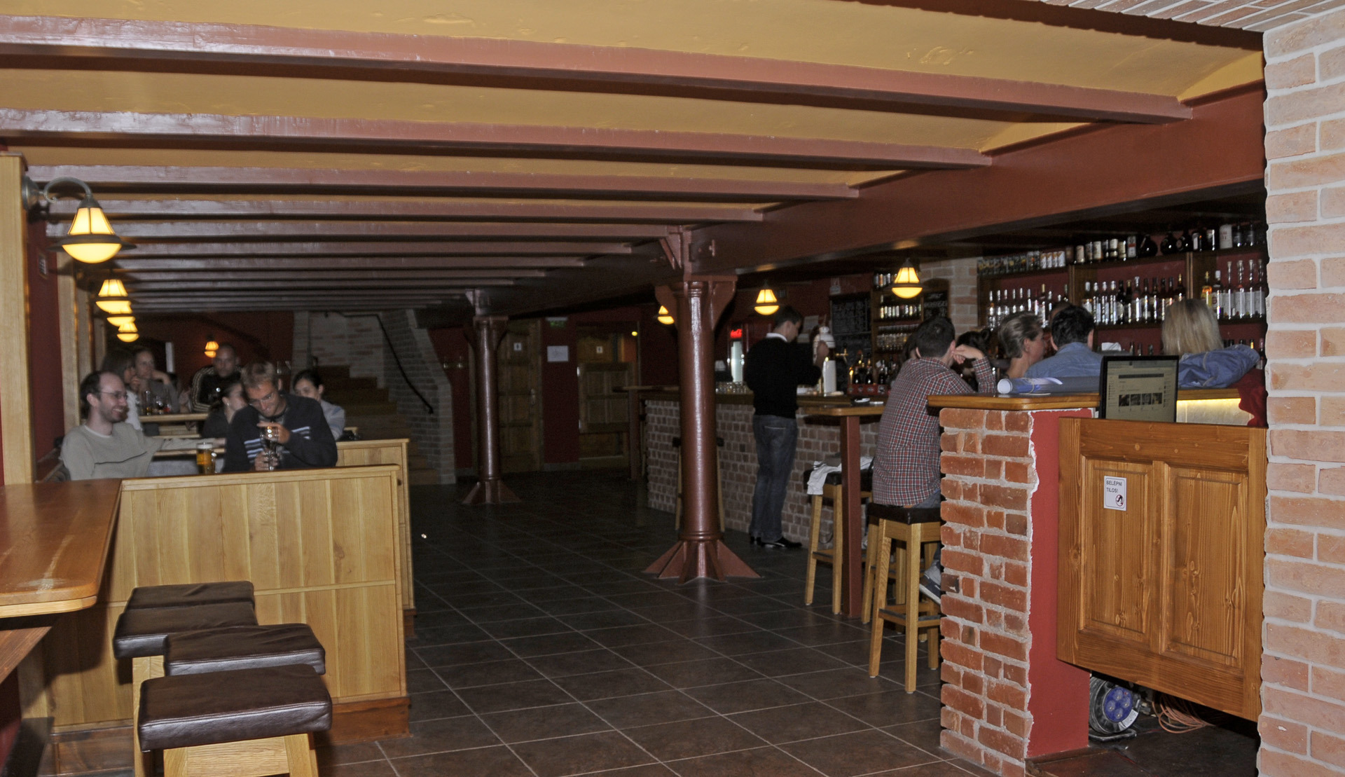 A jobb napokat látott üzem néhai fonalraktárában ízlésesen lett kialakítva a tér, amelyben jól illenek egymáshoz a történelmi téglafalak, az eredeti, monumentális vas tartóoszlopok és a kovácsoltvasból, masszív, tömör tölgyfaasztalokból álló bútorzat.