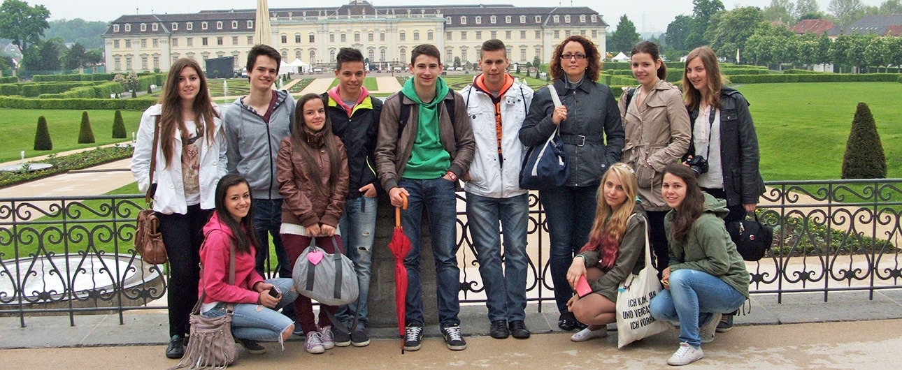 A német csereprogram keretében újra németországi testvérvárosunkba, Ditzingenbe vezetett utunk. A cserében 11-en vettünk részt némettanárunk, dr. Csókáné Török Orsolya kíséretével. A vonat este 11-kor gördült be a stuttgarti vasútállomásra. A német diákok már izgalomtól telve ácsorogtak, nagyon várták az érkezésünket. Mindenki üdvözölt mindenkit, majd bemutattak a szüleiknek is. 14 óra utazás után már nagyon fáradtak voltunk, ezért hazavittek az otthonukba, és mindenki álomra hajthatta a fejét.
