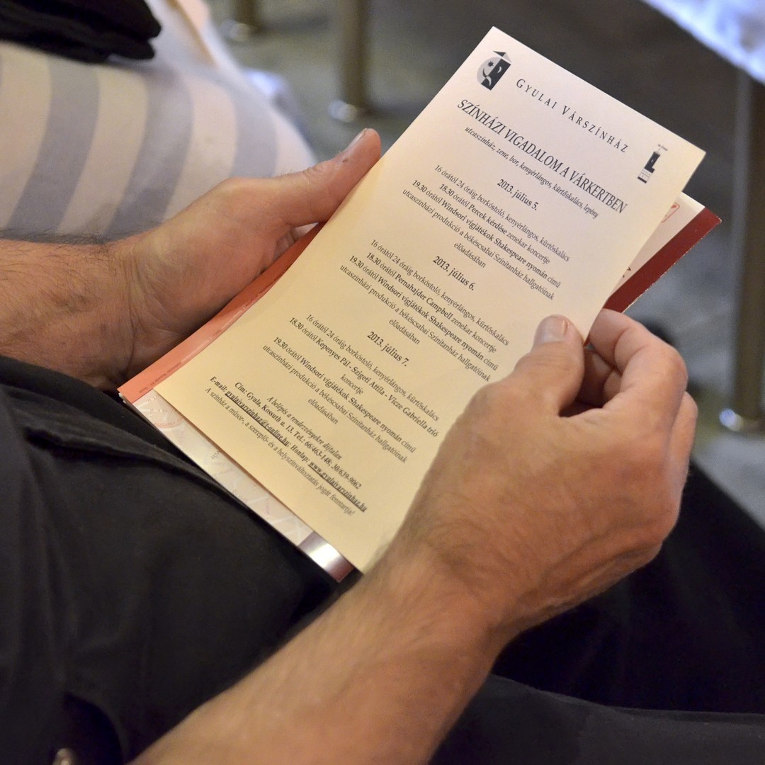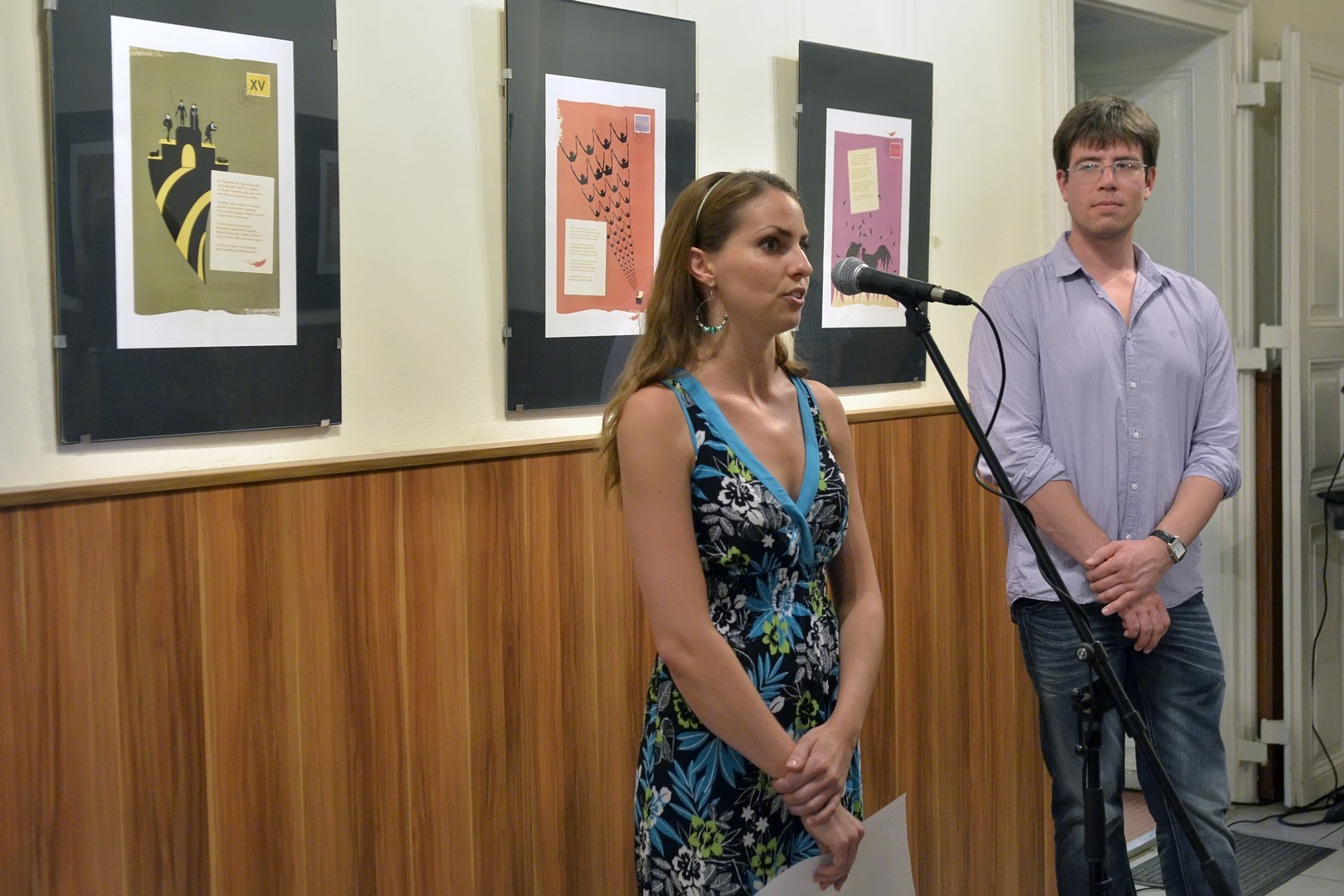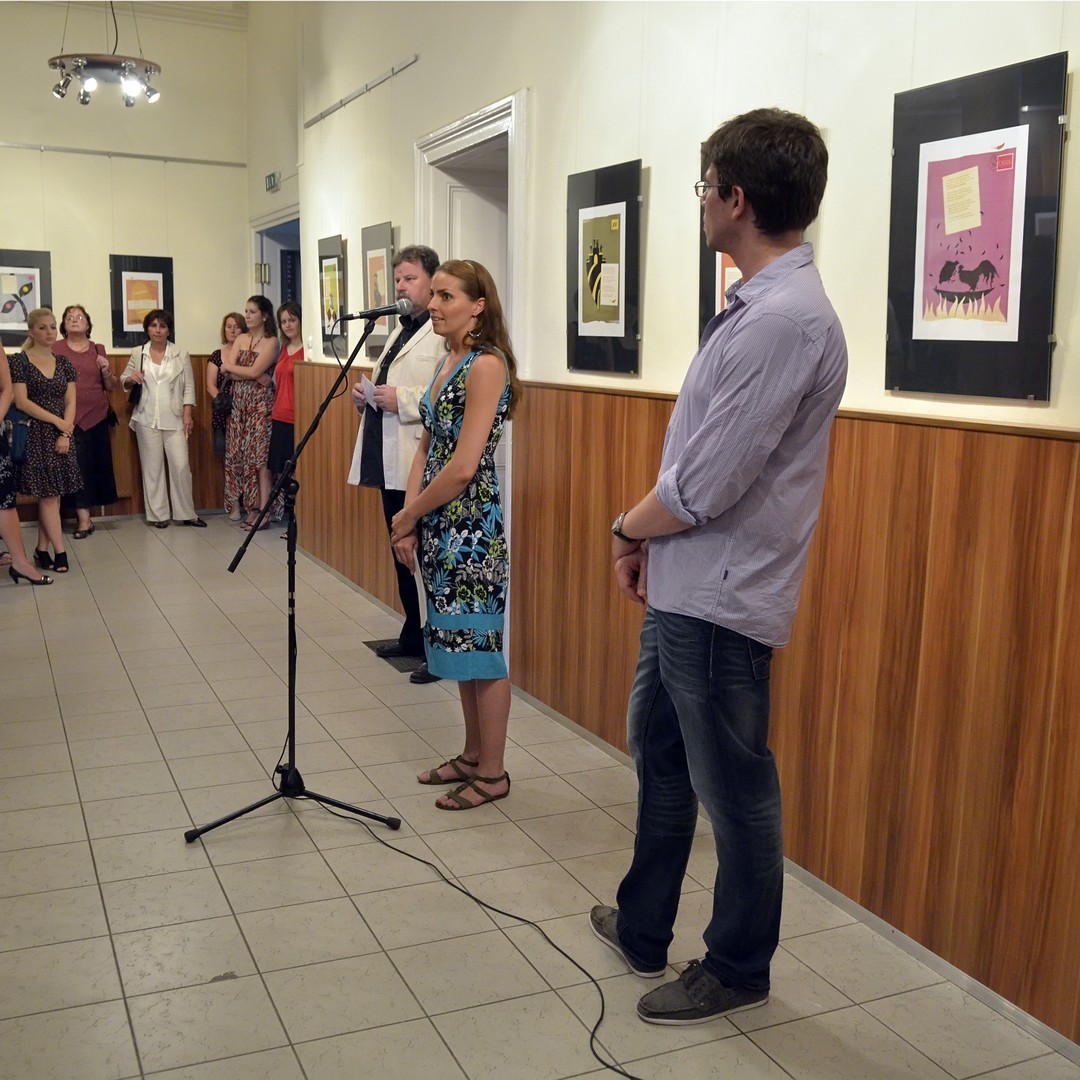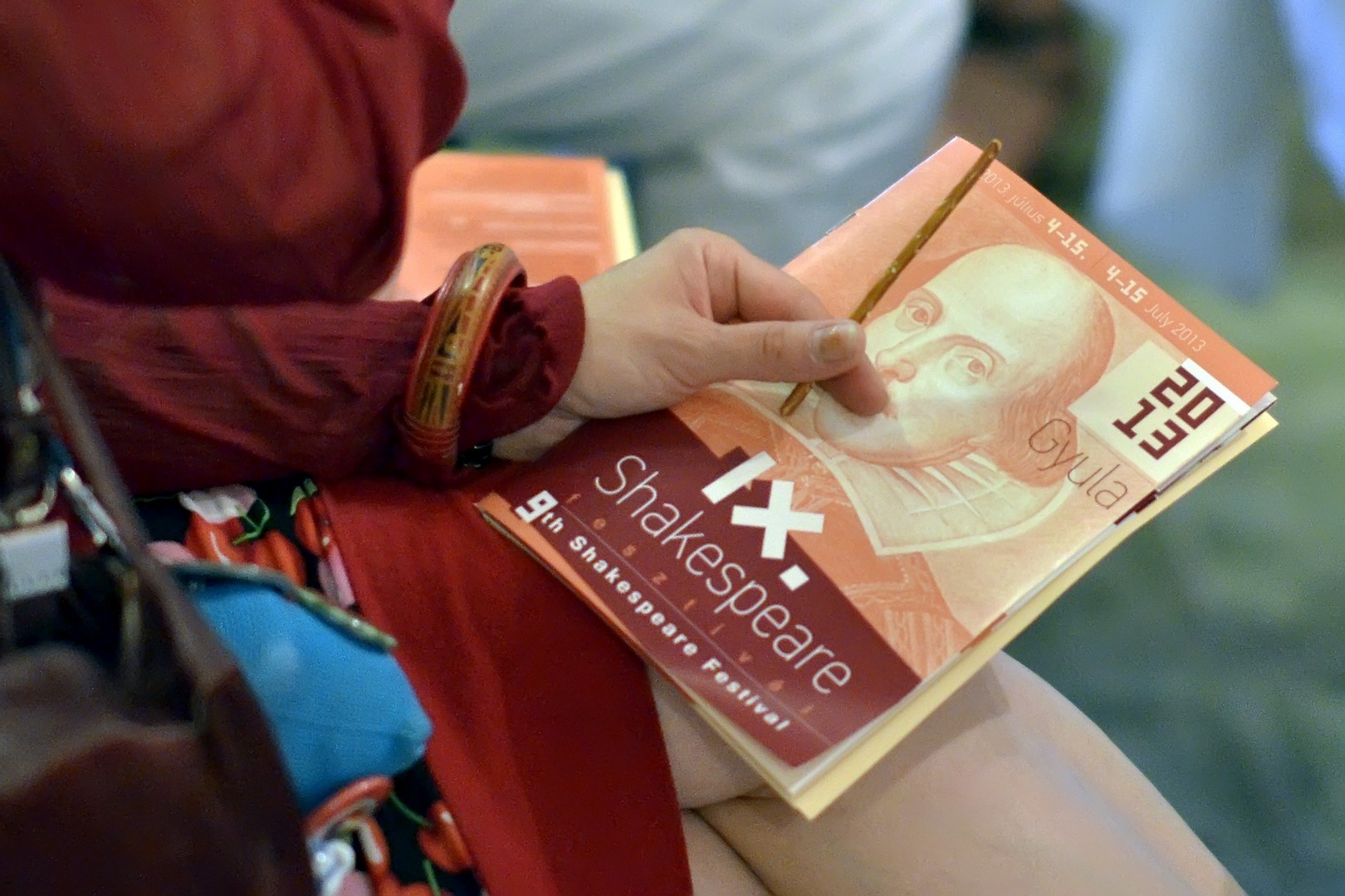 Az ötvenedik évad logóját megálmodó művész „Feladó: Shakespeare” című második gyulai tárlatát Gyulai Orsolya Zóra művészettörténész nyitotta meg a Kamaragalériában. A szakember elmondta: a szonettcsokrok a drámaíró, egy rangban fölötte álló ifjú és egy rejtélyes hölgy, Black Lady köré csoportosulnak, e három személy között ugyanis a kutatók szerint egyfajta szerelmi háromszög alakulhatott ki.