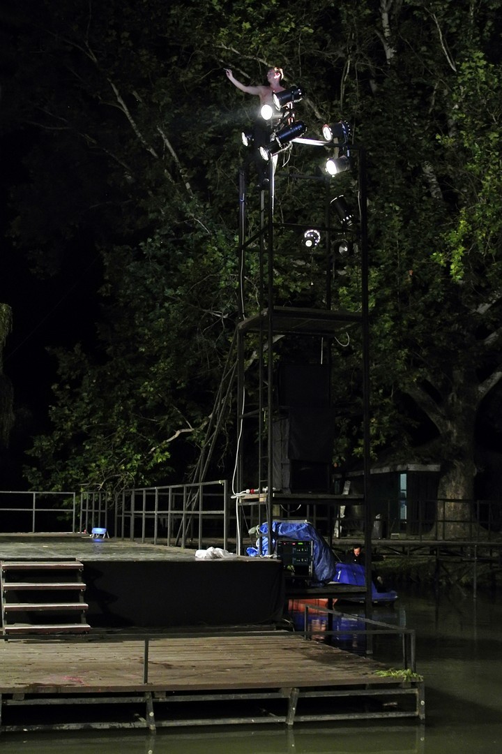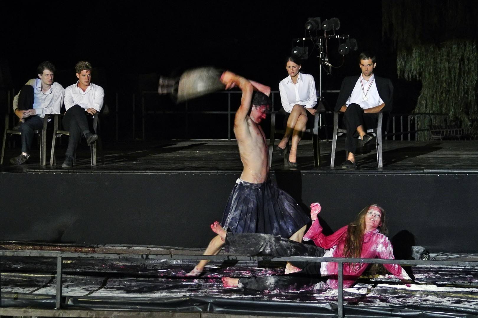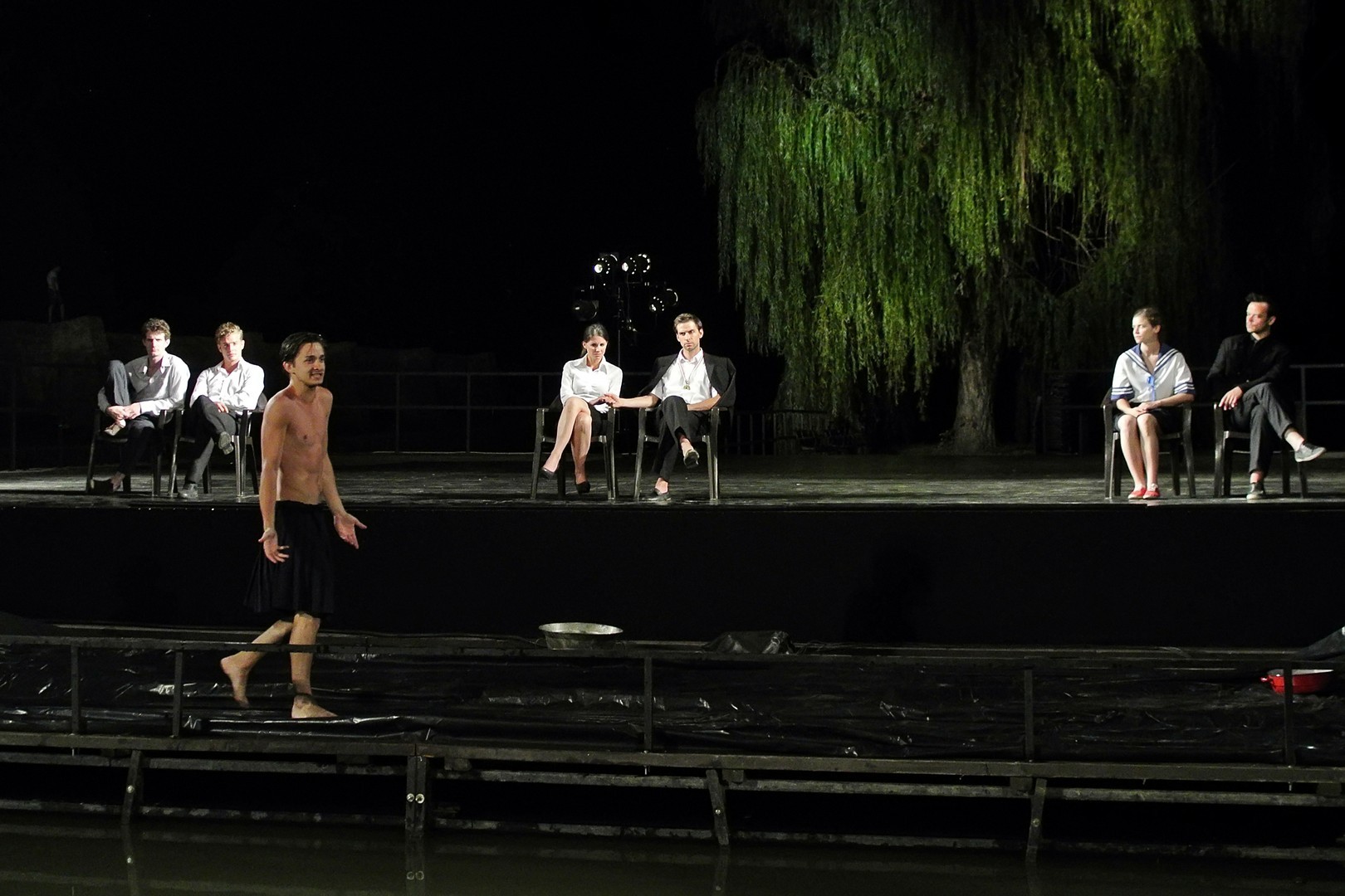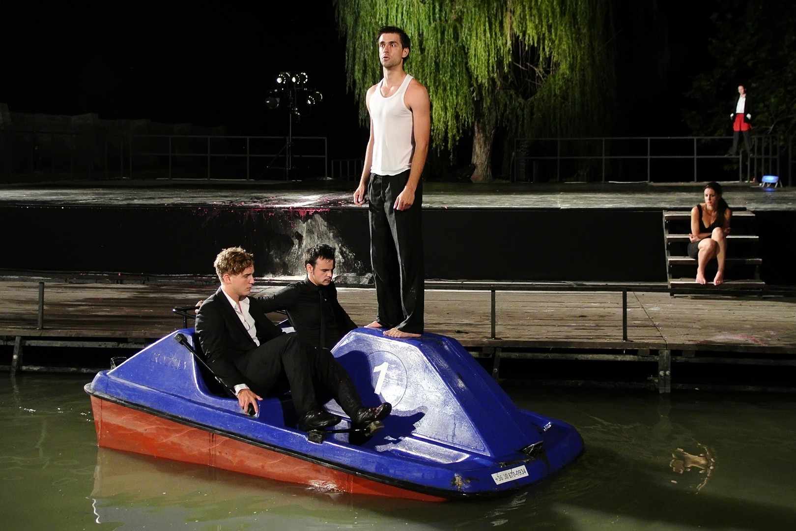 A Kossuth-díjas Zsótér Sándor rendezésében megvalósuló átdolgozás a tószínpadon kezdődött, ahol a színészeken kívül a publikum is helyet kapott. Onnan láthatták, ahogyan az izgalmas és látványos képi világban bővelkedő darab hol a deszkákon, hol a tó vízében, máskor meg a parton vagy a székek között folyik. Ilyen egyedi rendezésben nyilvánvalóan az sem volt furcsa, hogy a szerepek is folyton cserélődtek.