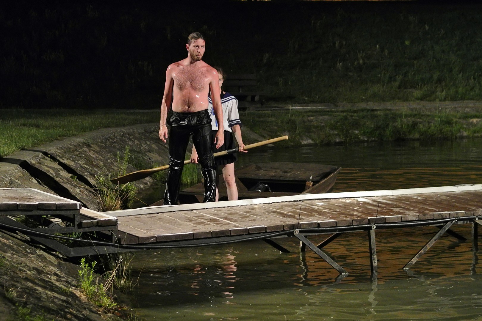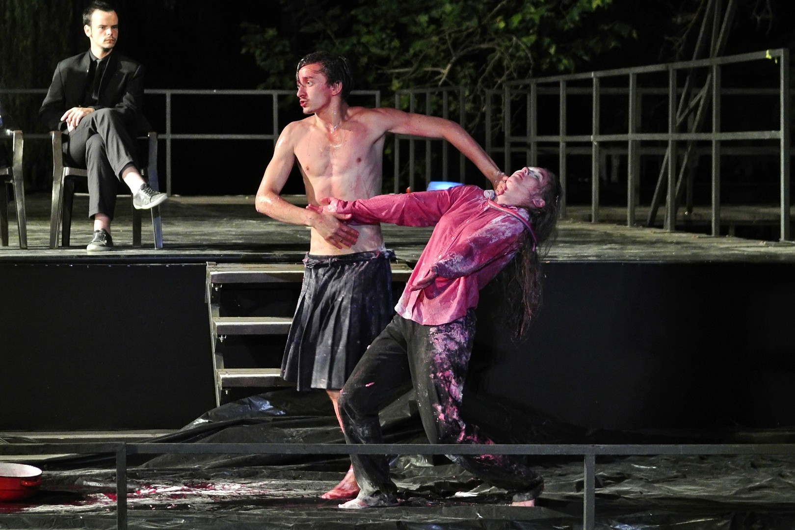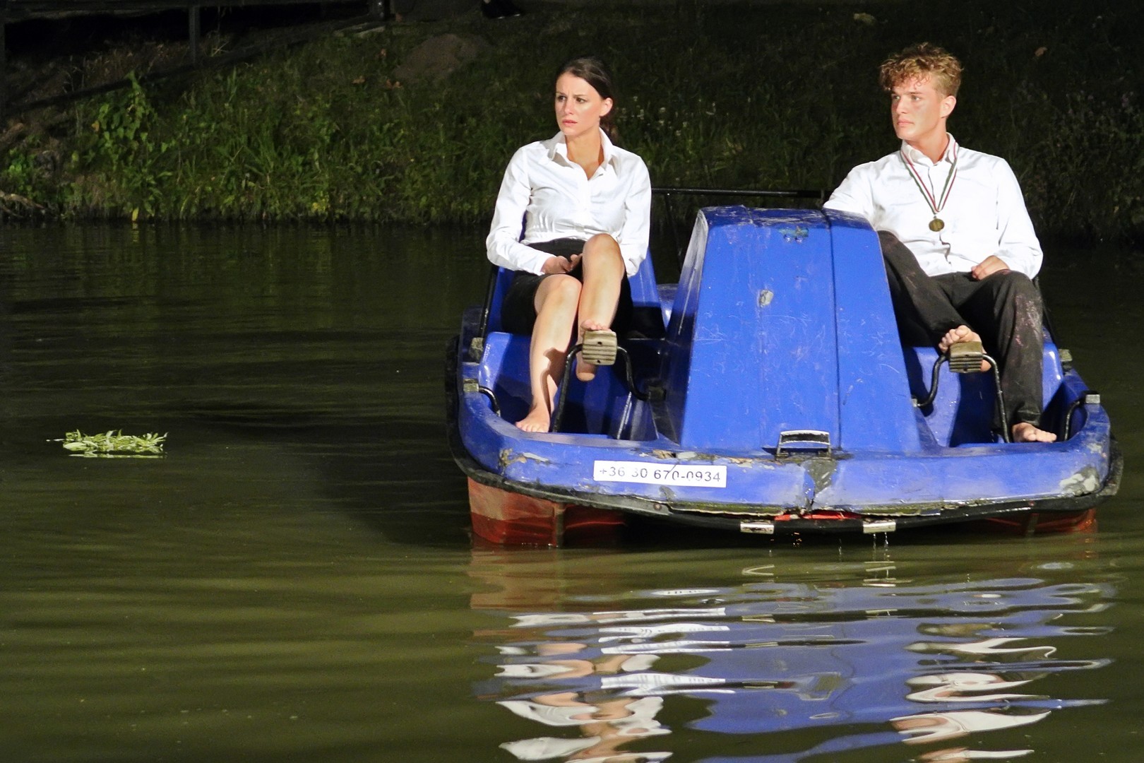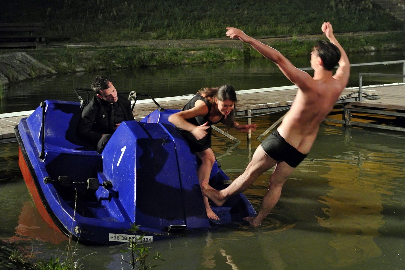 A Kossuth-díjas Zsótér Sándor rendezésében megvalósuló átdolgozás a tószínpadon kezdődött, ahol a színészeken kívül a publikum is helyet kapott. Onnan láthatták, ahogyan az izgalmas és látványos képi világban bővelkedő darab hol a deszkákon, hol a tó vízében, máskor meg a parton vagy a székek között folyik. Ilyen egyedi rendezésben nyilvánvalóan az sem volt furcsa, hogy a szerepek is folyton cserélődtek.