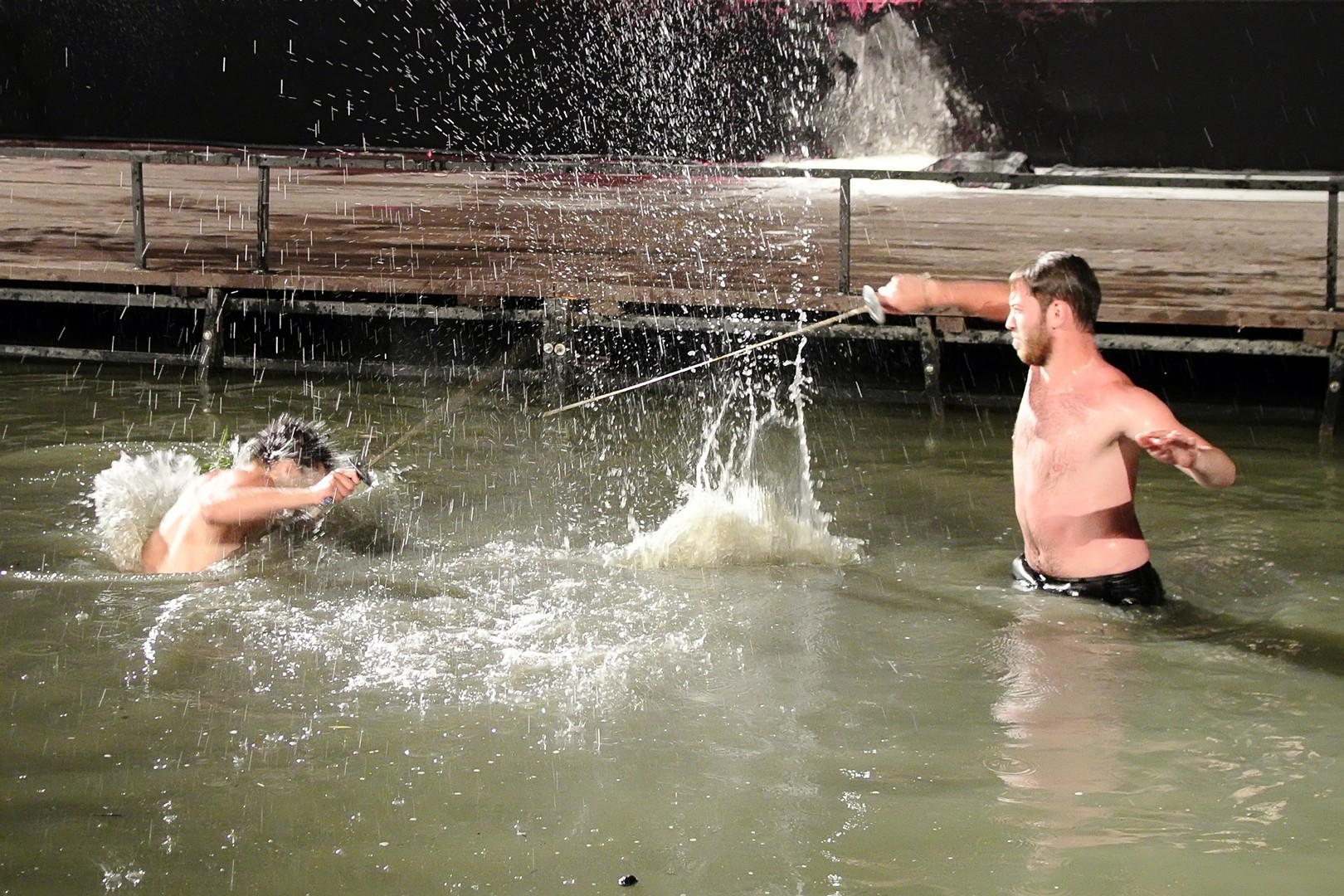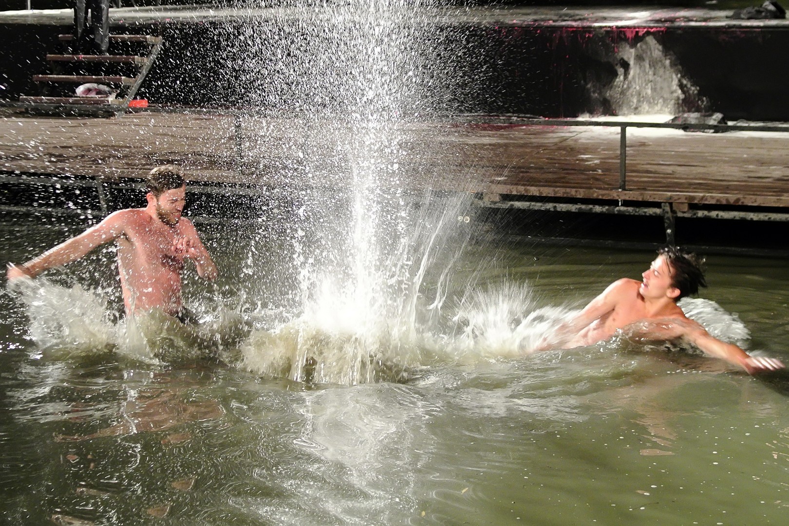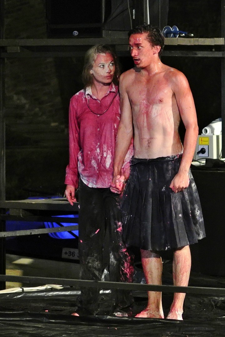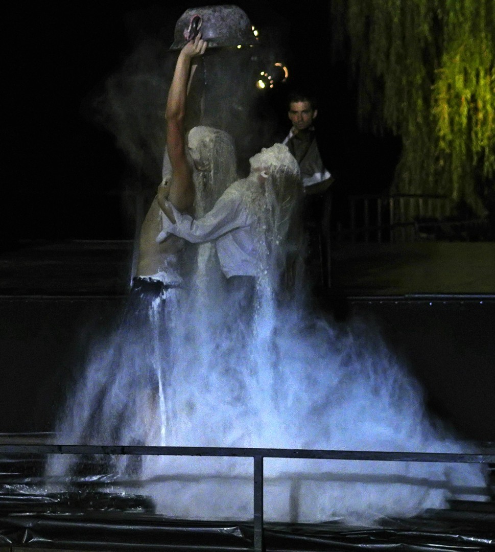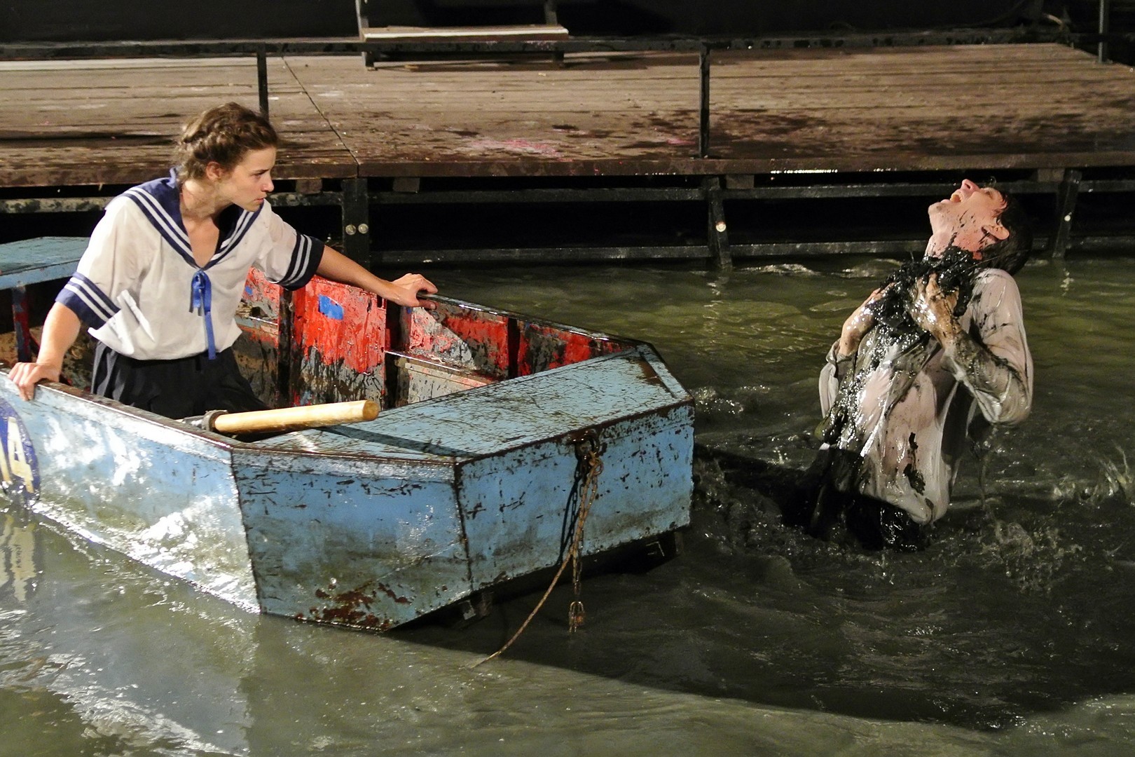 A Kossuth-díjas Zsótér Sándor rendezésében megvalósuló átdolgozás a tószínpadon kezdődött, ahol a színészeken kívül a publikum is helyet kapott. Onnan láthatták, ahogyan az izgalmas és látványos képi világban bővelkedő darab hol a deszkákon, hol a tó vízében, máskor meg a parton vagy a székek között folyik. Ilyen egyedi rendezésben nyilvánvalóan az sem volt furcsa, hogy a szerepek is folyton cserélődtek.