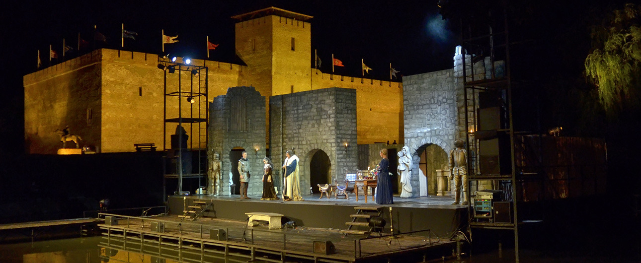 Vasárnap este hat órától Nádasdy Ádámmal beszélgetnek, aki jónéhány Shakespeare-mű fordítását készítette el az elmúlt években. Este a tószínpadon egy különleges díszletben, forgószínpadon játssza el a Hamletet a Miskolci Nemzeti Színház Kiss Csaba rendezésében.