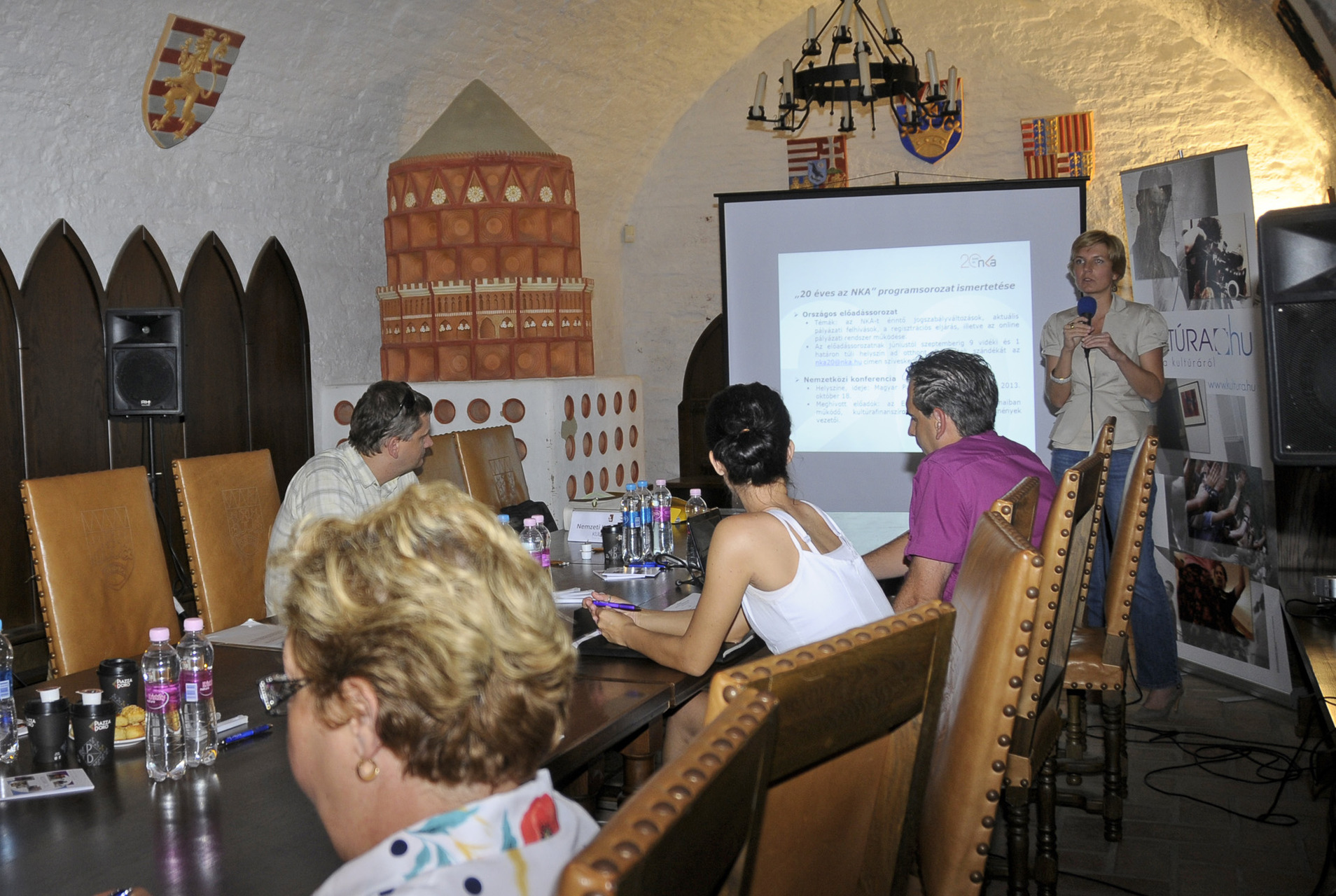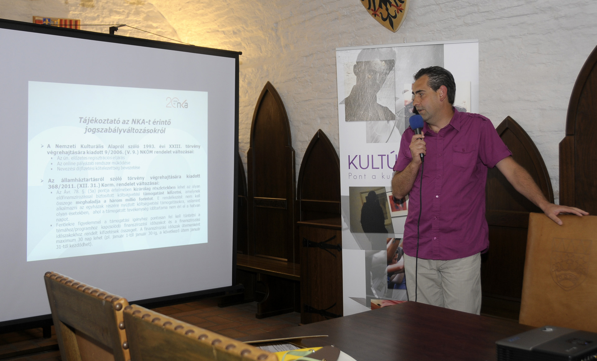 Vízkeleti Andrea főtanácsos, a NKA Bizottságának titkára a jelenlévő pályázó kulturális szervezetek képviselőinek elmondta, az országos előadássorozat ötödik állomásának választotta Gyulát a két évtizede elkülönített állami pénzalap, amely az elmúlt 20 évben több 112 000 kulturális pályázatot támogatott összesen 111 milliárd forinttal, valamint évente mintegy 5000 pályázóval áll kapcsolatban. Ezután Barna Márton projektvezető főtanácsos a jogszabályok változásáról és az online rendszerről tartott tájékoztatót. A beszámolók után lehetőség nyílt tanácskozni az aktuális ügyekről és a pályázatok során felmerülő problémákról.