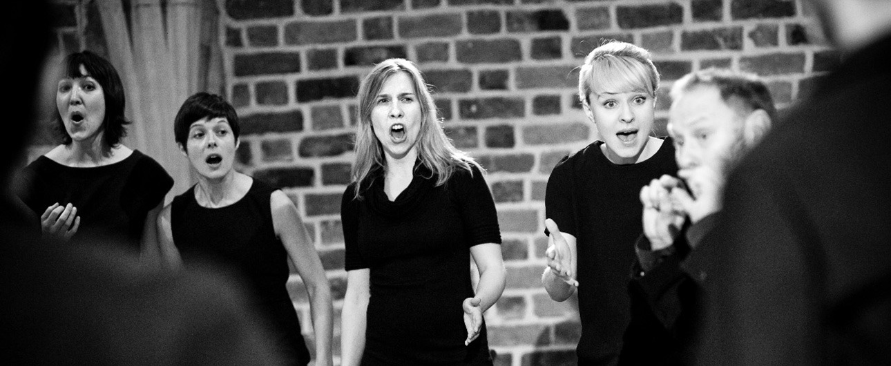 Tizenegy feketeruhás nő és férfi jelent meg a színen, és egyszólamú hangolásba kezdett, amely rövidesen polifonikus kórusművé alakult át. Már ekkor kiderült, nem egy hagyományos karéneket hallunk, hiszen az emberi hangon és hangszeres zenén kívül rengeteg gesztus és mozgás is megjelent a közönség előtt. Madrigálokat idéző harmóniákban kaptuk az első képet Lear király békés birodalmáról, majd ellenpontozó kánonok tömkelegével megindult a zaklatott szóbeszéd, miszerint az uralkodó átadja helyét lányai közül annak, amely leginkább szereti – derül ki a folytatásban. A következő dalban Maciej Rychly szerzeményében feltűnt alkotója is, aki fújtatós dudával működött közre a darabban. Újra megszólalt az indiai harmónium és éteri szépségű hangján egy nyugat-afrikai hárfa, a kora.