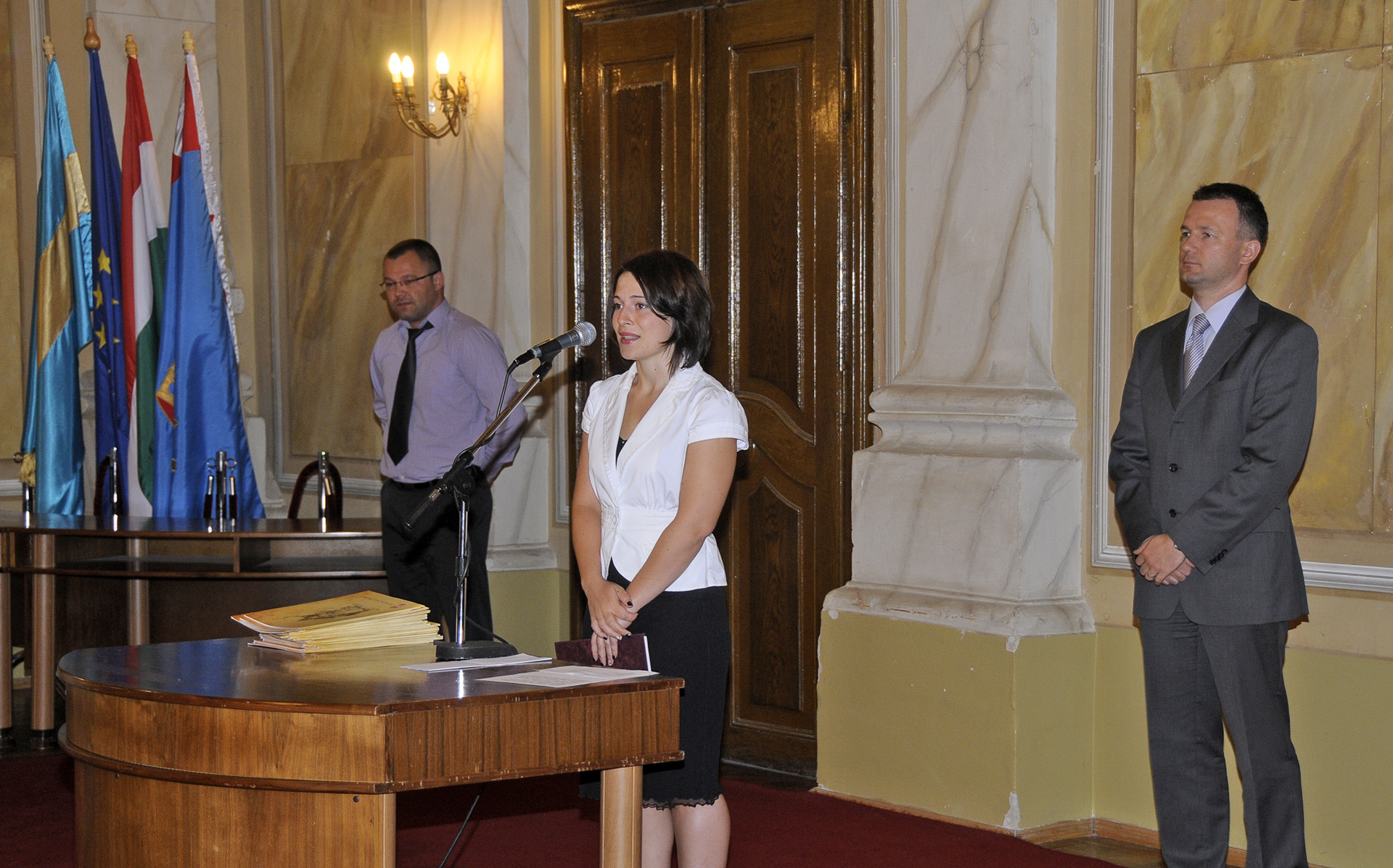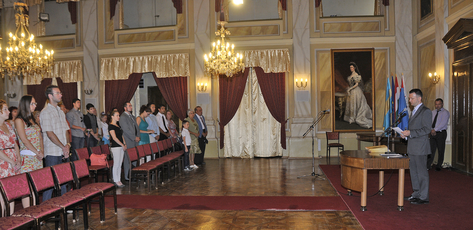 Hatvannégyen tettek állampolgári esküt a városháza dísztermében ma délelőtt. Az ünnepi eseményre érkezőket Reményik Sándor egyik versével köszöntötte Bálint Gergő, majd dr. Görgényi Ernő, Gyula város polgármestere gratulált Magyarország új állampolgárainak.