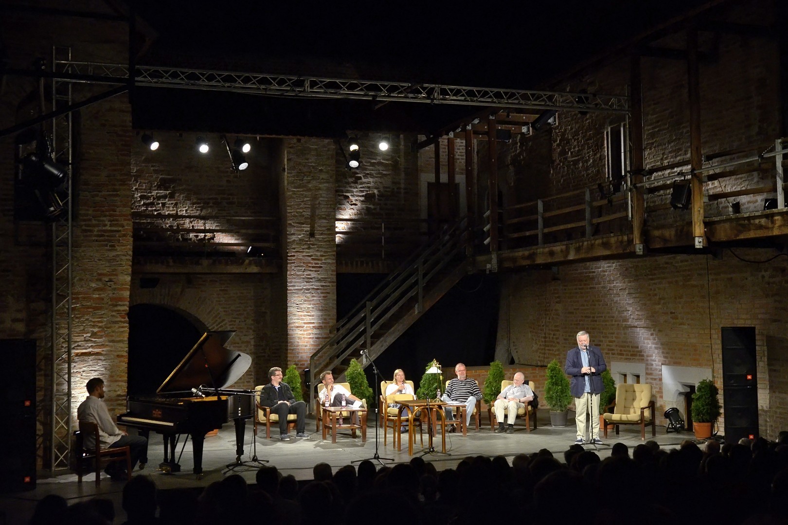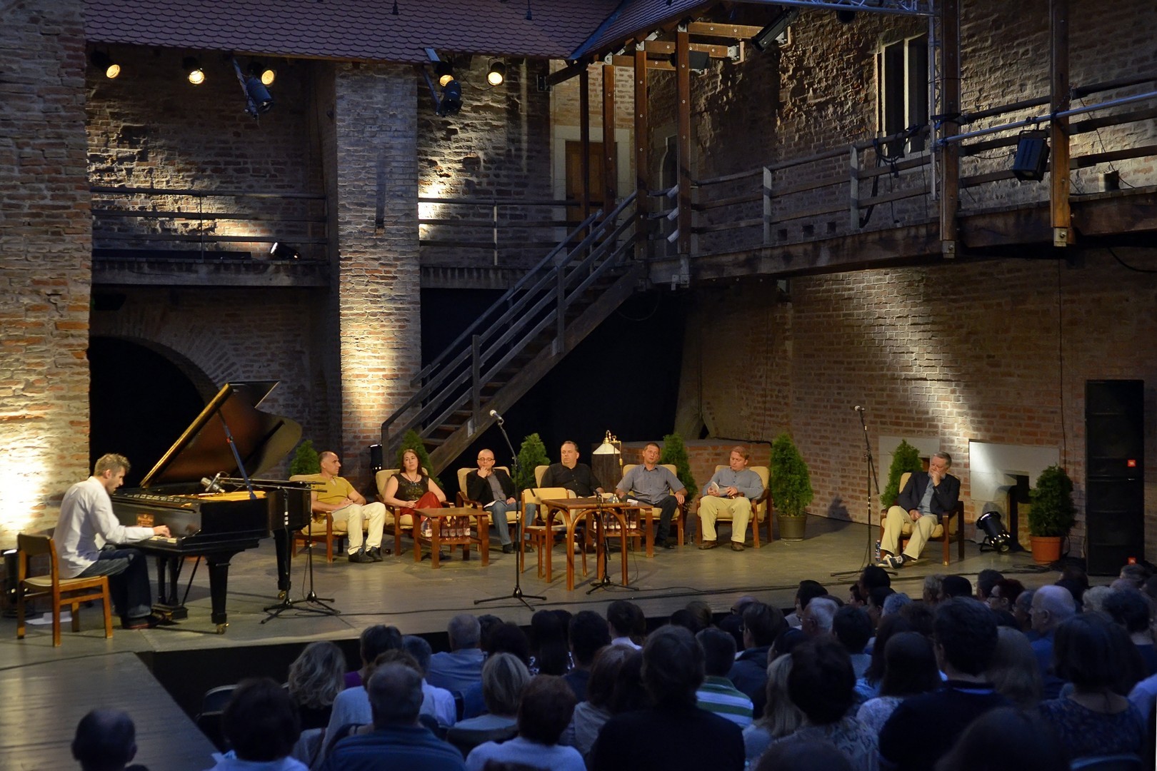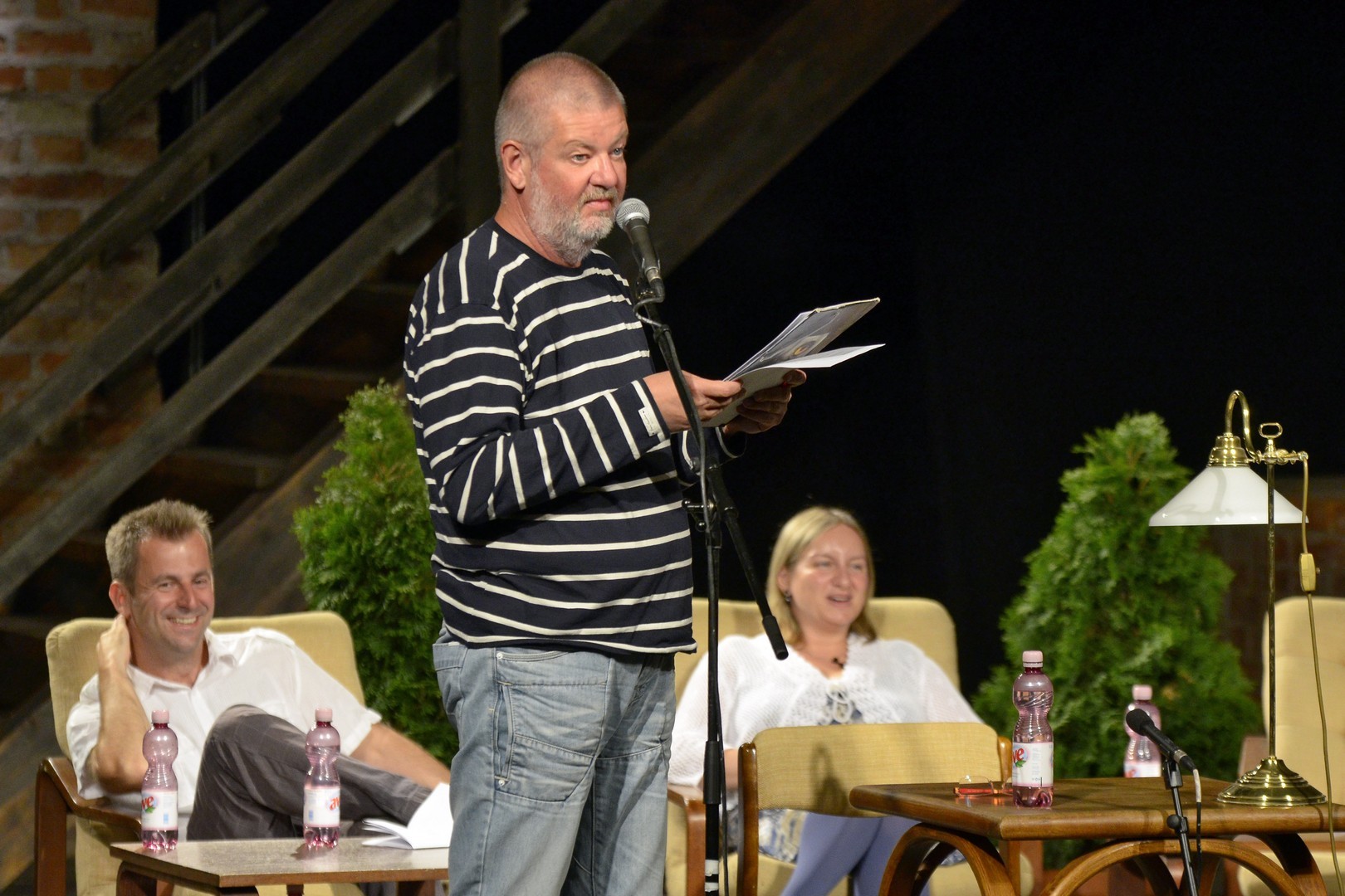 A házigazda a rendezvény elnevezését elemezve arra mutatott rá bevezetőjében, hogy a magyar (irodalmi) humorhagyományhoz a pesti vicc, Rejtő Jenő, Örkény István és Karinthy éppúgy hozzátartozik, mint a Csárdáskirálynő, Kabos Gyula és a Hyppolit, a lakáj. Miután megtudtuk, hogy Tarján Tamás 39 évvel ezelőtt járt először a gyulai színházban, arra is fény derült, hogy az est közreműködőinek átlagéletkora nem felel meg a szerkesztői elvárásnak, hiszen nem éri el a mágikus 50-es számot. A „felkonfot” Szabó Dániel dzsesszzongorista improvizatív játéka követte, majd Egressy Zoltán lépett a mikrofonhoz, hogy kezdetét vegye a házigazda által (szó)viccesen "stand up literary"-nak és/vagy "sit down literary"-nak titulált műsor.