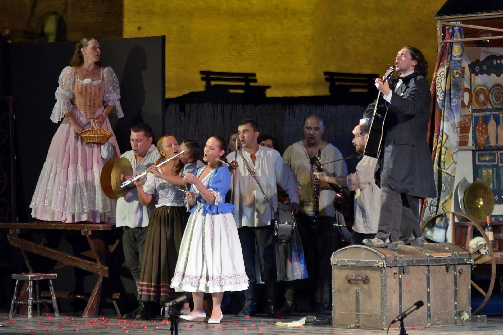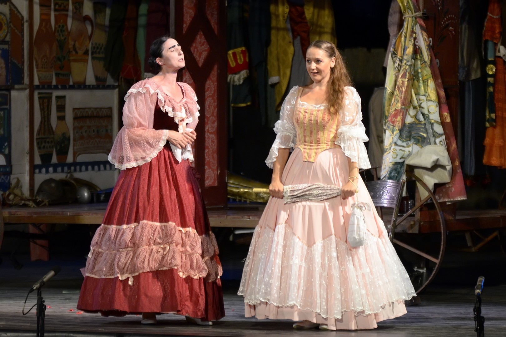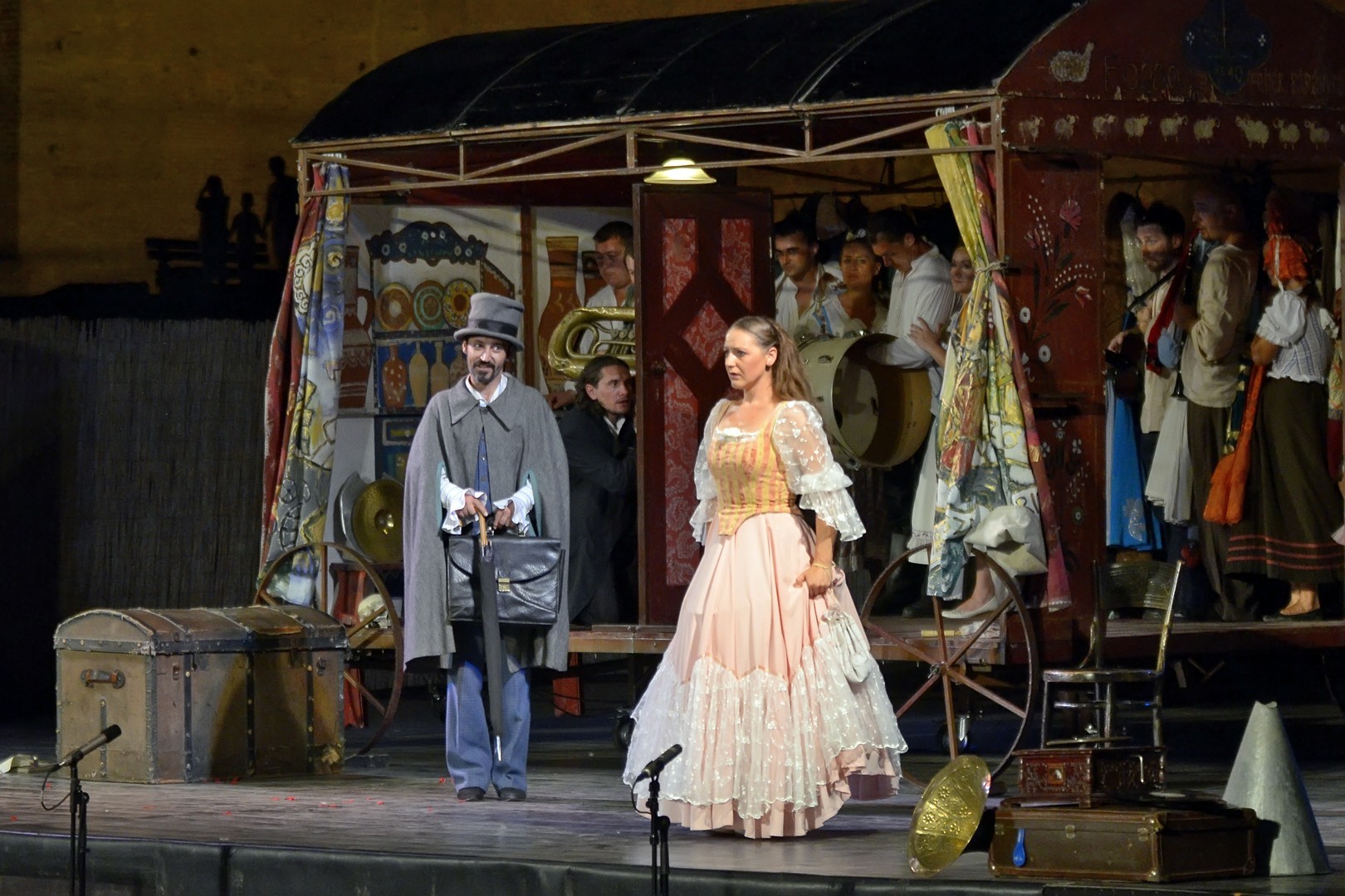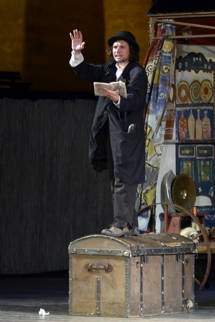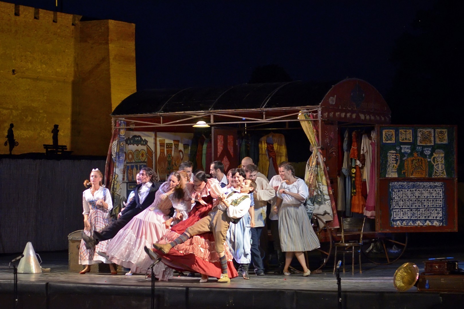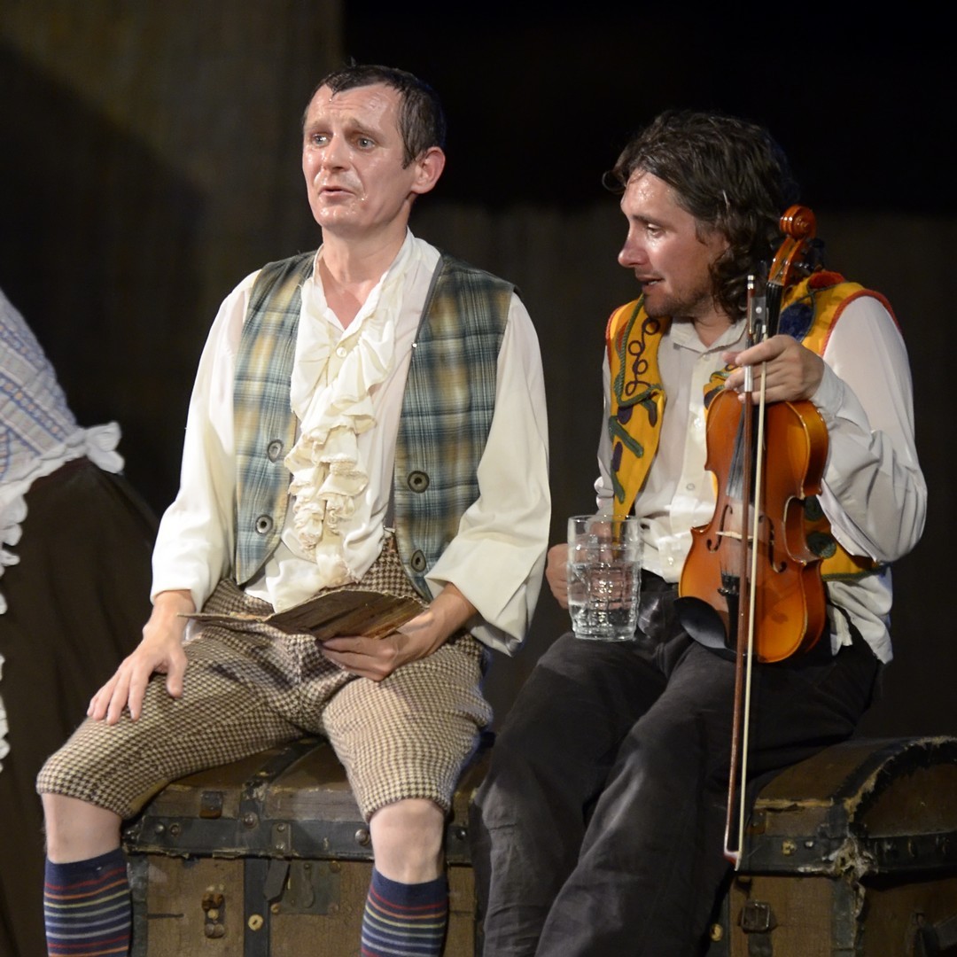 A zene az adott esemény hangulatától függően hol 20. századi musical elemeket, hol balkáni népzenét, hol áriaszerű dalokat, nótákat szólaltat meg. Hozzá kell tennünk, hogy a beregszászi színészek kiválóan énekelnek, zenélnek. A jelmezek (V. Csolti Klára) Szigligeti korát idézik. Alekszander Belozub díszlete egy ekhós szekér, amely pillanatok alatt alakul át színházzá, vagy vendégfogadóvá. Szerepe nyújtotta lehetőséget maximálisan kihasználva formálta meg Kacsur Andrea Kamilla kisasszonyt, Erzsit Orosz Melinda, Gyuri pincért Ferenci Attila, vagy Kányai fogadóst Szabó Imre. Az egy-egy hatásos magánszámot közben is megtapsoló közönség kellemes estét tölthetett el a tószínpadon. A darab a Kárpátaljai Megyei Magyar Drámai Színház és a Gyulai Várszínház közös produkciójaként került színre.