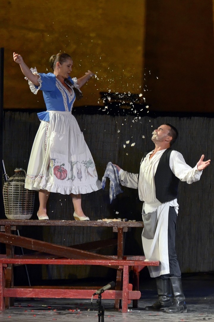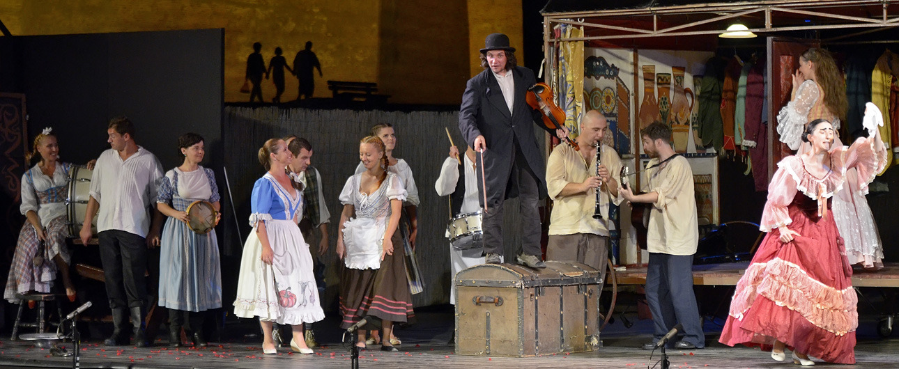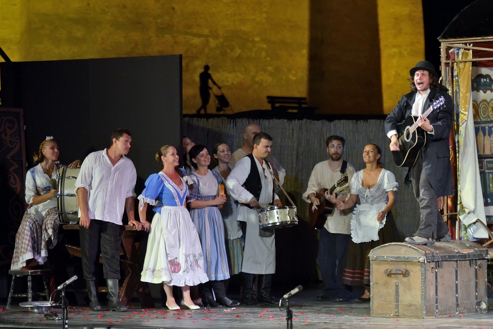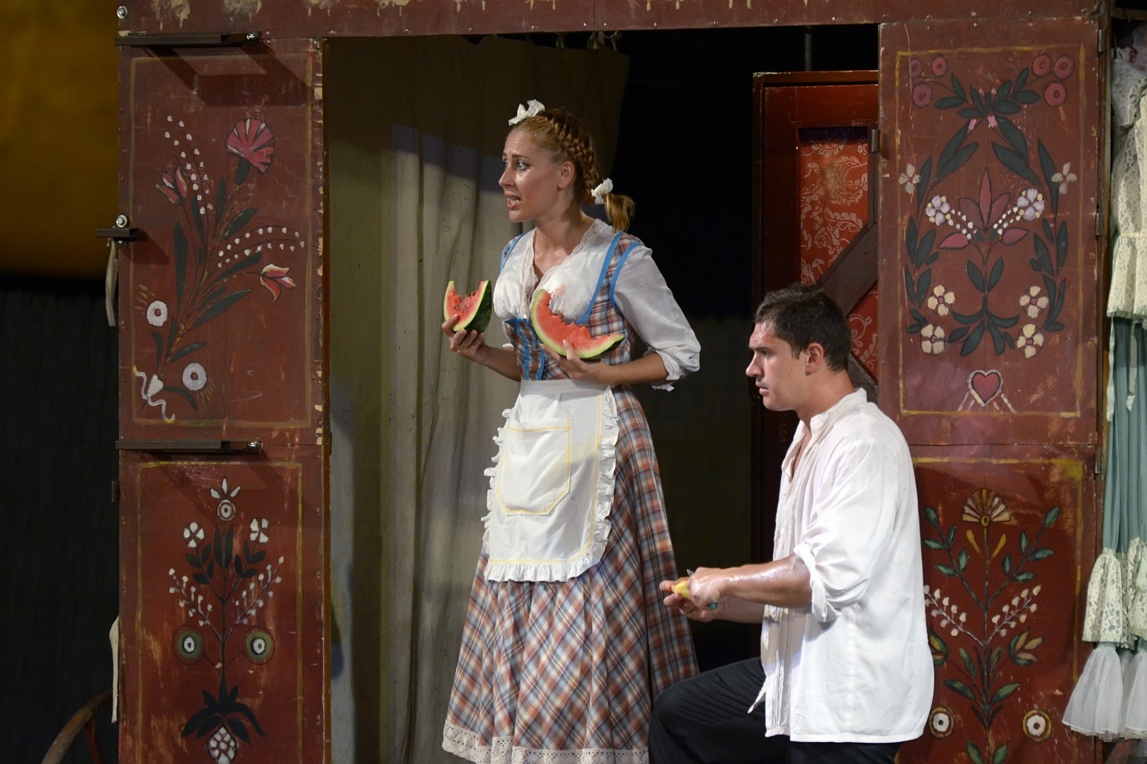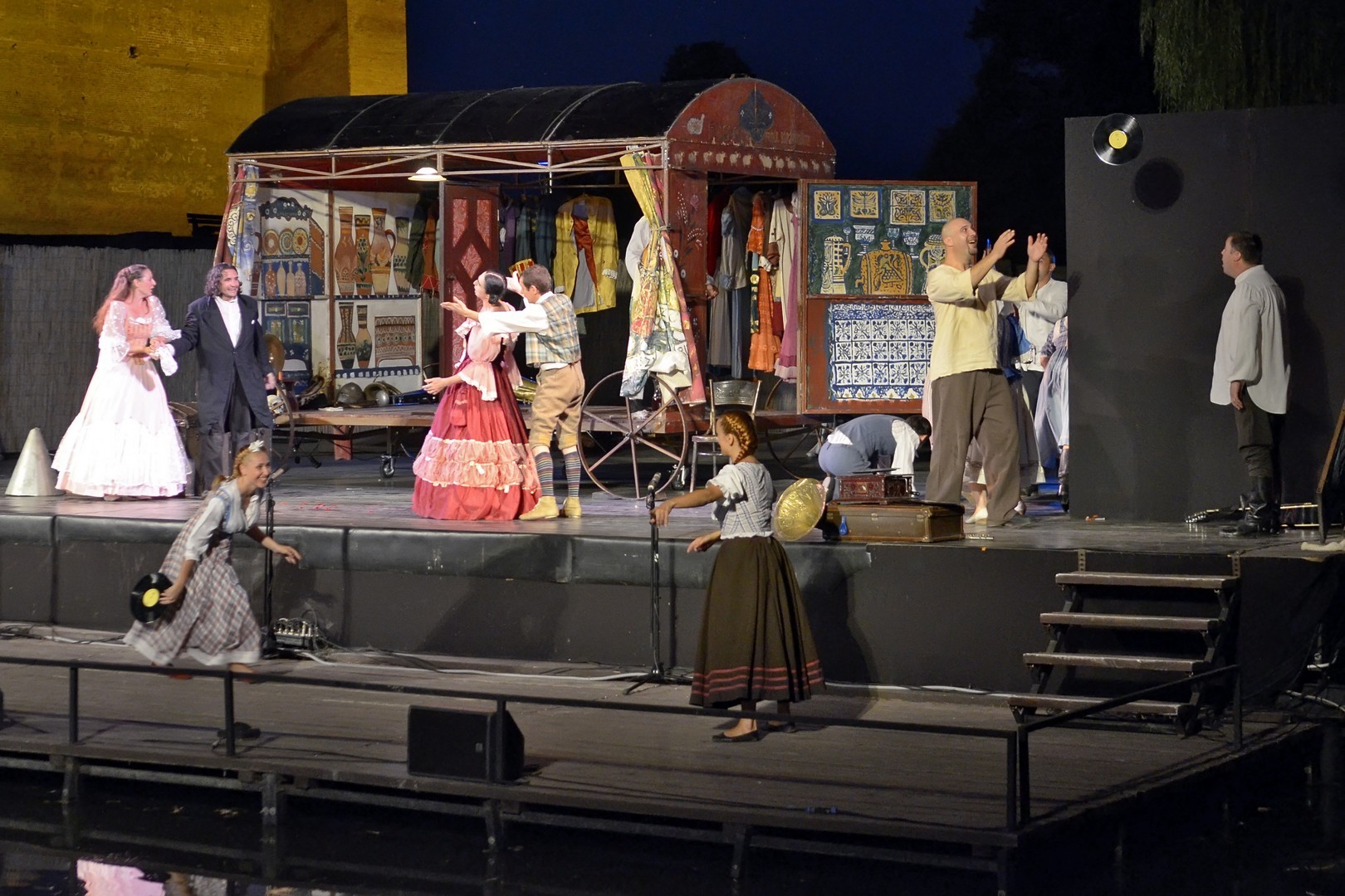 Hálás dolog színpadra vinni az ellenzett szerelmek beteljesülését. A Liliomfi, Szigligeti Ede 1849-ben írt „társadalmi vígjáték”-nak titulált műve is eme örök téma körül forog, bár a rendező a hangsúlyt némileg eltolta a játékosság és a színészélet nehézségeinek fölpanaszolása felé. A hat évvel ezelőtti várszínházi bemutatója után, most másodszor láthatta Gyulán a közönség Vidnyánszky Attila eredetiséget tükröző rendezői felfogásában ezt a jól ismert darabot. A 19. századi történet, a szerző által megírt formájában – lányszöktetés, szülői tiltás - a mai, ifjabb nemzedékhez tartozó közönségnek nyilván kevésbé izgalmas dolog lett volna. Vidnyánszky ezért a zenés, táncos komédia felöl közelített a darabhoz, ami adta is magát, nem hiába tartják Szigligetit a hazai musical előfutárának.