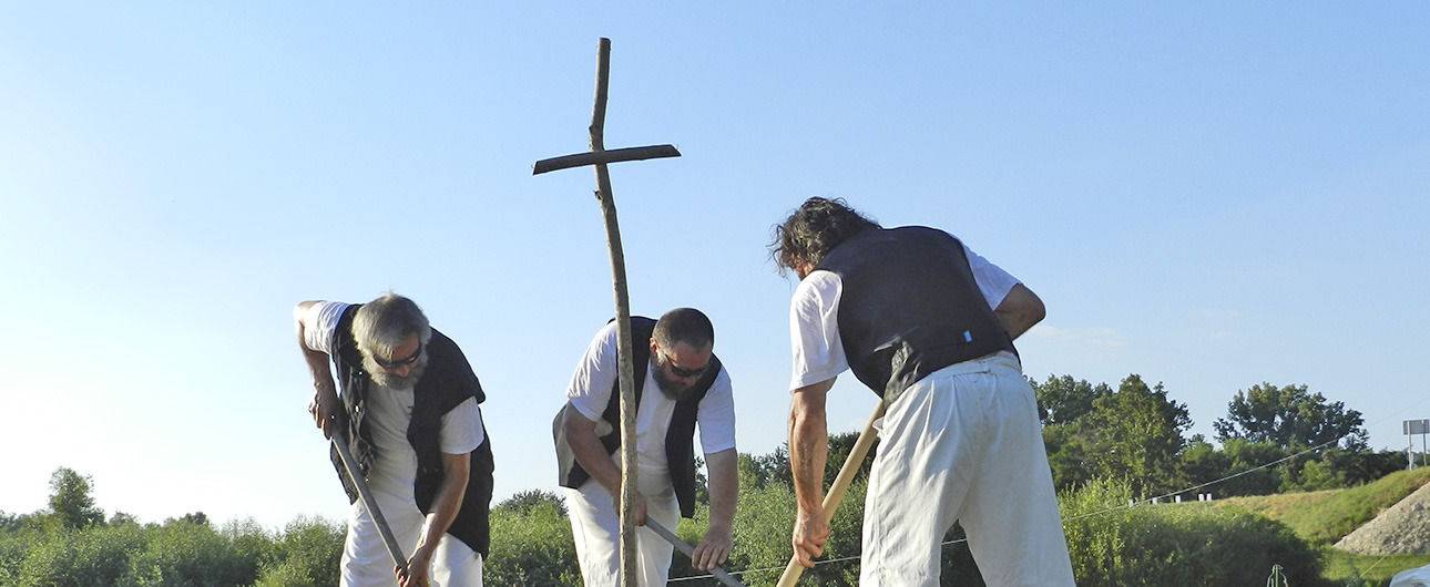 A GYAK (Gyulai Alkotókör) és a SAK (Sarkadi Alkotókör) alkotóművészeti találkájának ezúttal szomorú esemény szolgáltatott témát, a Gátőr címet viselő ARTéri kultúrpiknikkel a szervezők a nemrég elhunyt Patkás Gábor gátőrnek szerettek volna emléket állítani. A 3T csoport tagjai, Novák Attila, Szuhaj György és Kukár István kaszát, ásót és lapátot ragadnak, hogy jelképes sírhelyet készítsenek. Miközben a vízzel körülölelt keresztet homokzsákokkal támasztják ki, különös gyászzene szól: a hangfelvételen a rádióbemondó éppen a vízállásjelentést osztja meg a hallgatókkal. A gyászrítus végén a performerek levetik fekete mellényüket, és a dobok ősi zenéjére, a folyó lassan hömpölygő vizén úsztatva húzzák át a túlpARTról a drótból megformázott emberi alakot. A sírnál csizma és fűvel kitömött köviziges kabát kerül rá: a pARTon, a Fekete-Körös mellett szimbolikusan újra életre kel és örök békét talál...