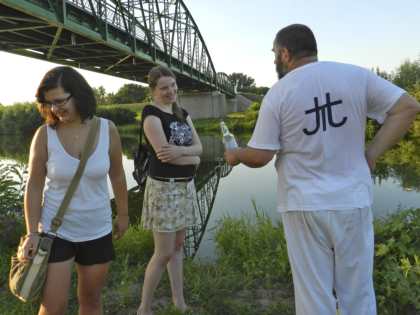 Éppen Amorf Ördögök dübörög a kocsi hangszórójából, amikor megérkezünk úti célunkhoz, a Gyula és Sarkad közötti híd gyulai hídfőjéhez. Már messziről látni: idén jóval kevesebb vállalkozó kedvű, amatőr performer és bámészkodó pARToló várakozik a Fekete-Körös árterében, mint tavaly. Talán ötvenen lehetnek azok, akik úgy döntöttek, hogy a tikkasztó forróság ellenére is részt vesznek a tizenötödik születésnapját ünneplő pART-on, azaz az Alkotó-Körösök Szabadtéri Tárlatán.