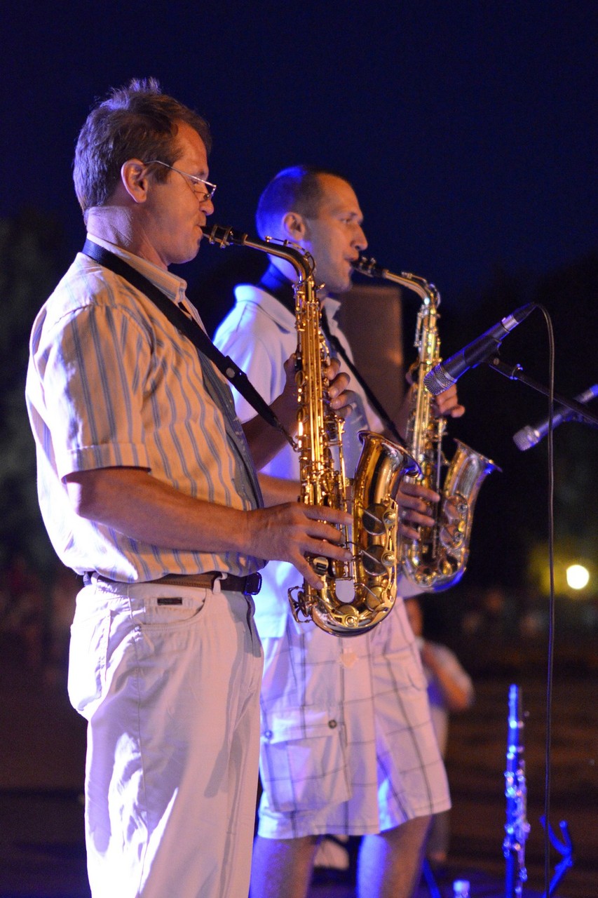 A hetek óta tartó kánikulát alkonyatkor heves, északi széllökések fújták tova, miközben a „vidám fiúk” a szaxofonokat és a klarinétokat bűvölték a színpadon. A Blues Brothers egy betétdalával indult a koncert, utána közvetlenül Bill Anker egy szerzeménye hangzott el. A fúvós hangszerek karakán hangjára sokan meg-megálltak a várkertben, úgyhogy a lassú, latin lüktetésű Guantanamera után már nagyobb taps előzte meg az erdélyi pánsípon megszólaló Somewhere Over the Rainbow című örökzöld dallamát. Az ikonikus rajzfilmhős, a nagy ho-ho-ho horgász történetében a jellegzetes rezonanciákat felvonultató kazoo-val is megismerkedhetett a közönség.