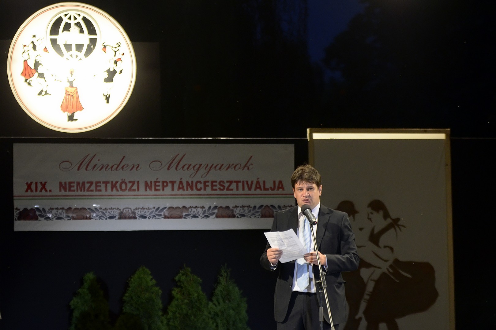 - Sok szeretettel köszöntöm a határon innen és túlról érkezett magyar együtteseket, a szomszédos települések és városunk néptáncegyütteseit, illetve a népzene jeles képviselőit. Hozzájuk, a fesztivál fellépőihez intézem most Mikuli Vera szavait: Táncolni kell, most van az ideje. Ez a rend, a rend, hogy Isten az égben van, az emberek a Földön, dolgoznak, isznak, táncolnak… Lehetővé kell tennünk a minőségi, intézményes tudáselsajátítást, biztosítanunk kell az ilyen és ehhez hasonló fesztiválokon való bemutatkozási lehetőséget a hazai és a határon túli színpadokon egyaránt. Mindezekhez azonban a szerény anyagi lehetőségek ellenére meg kell kell termeteni a finanszírozási keretet. Ezáltal biztosíthatjuk a magyar hagyományok megőrzését, művelését és minél szélesebb körben történő megismerését. Ez magyarságunk megtartásának záloga, a mai egységesedő, rohanó világunkban, a sokszínű kultúrával büszkélkedő Európában - hangzott el Gajda Róbert köszöntőjében.