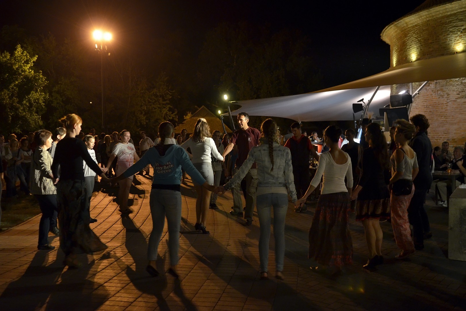 A zenészek, táncosok látványos felvonulása a Kossuth térről a várkertig tartott. A vár előtt a Békés Banda hangolta rá a közönséget a fesztiválbemutatóra, levezetésként pedig táncházban rophatták a táncot a Rondella látogatói.