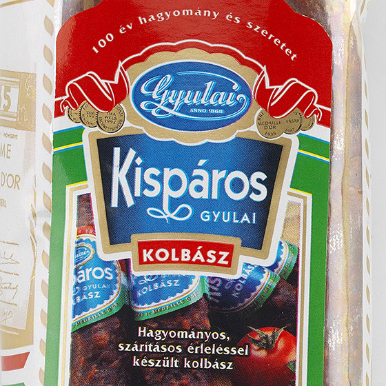 A kispáros gyulai kolbász a Stéberl András által készített, arany diplomás kolbász receptúrája alapján készült, s csupán aprítottságában tér el az oltalom alatt álló földrajzi jelzővel ellátott gyulai kolbásztól. Hagyományos receptúrájának és technológiájának köszönhetően a kitüntetett termék sem laktózt, sem glutént, sem szóját nem tartalmaz, így a táplálékintoleranciában szenvedők is fogyaszthatják.