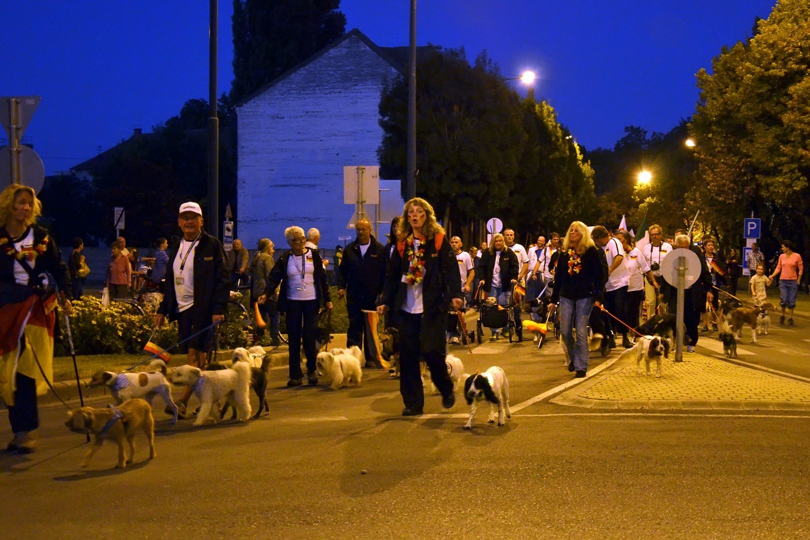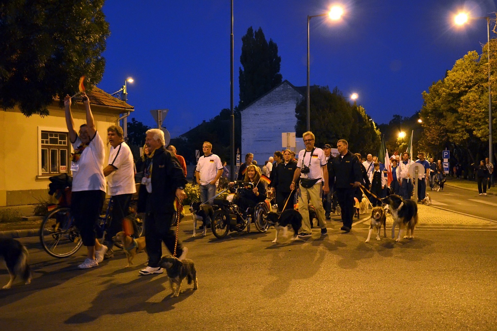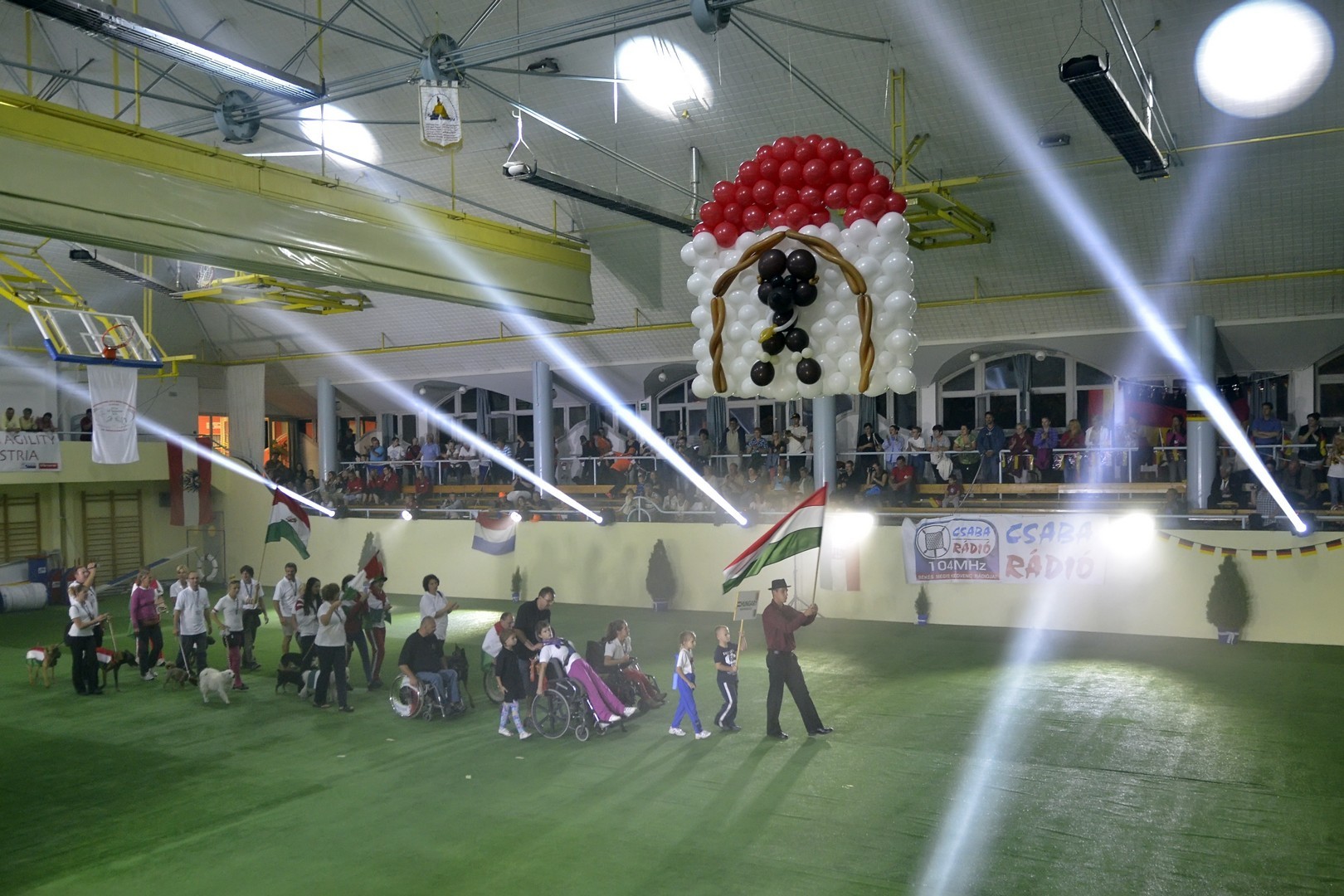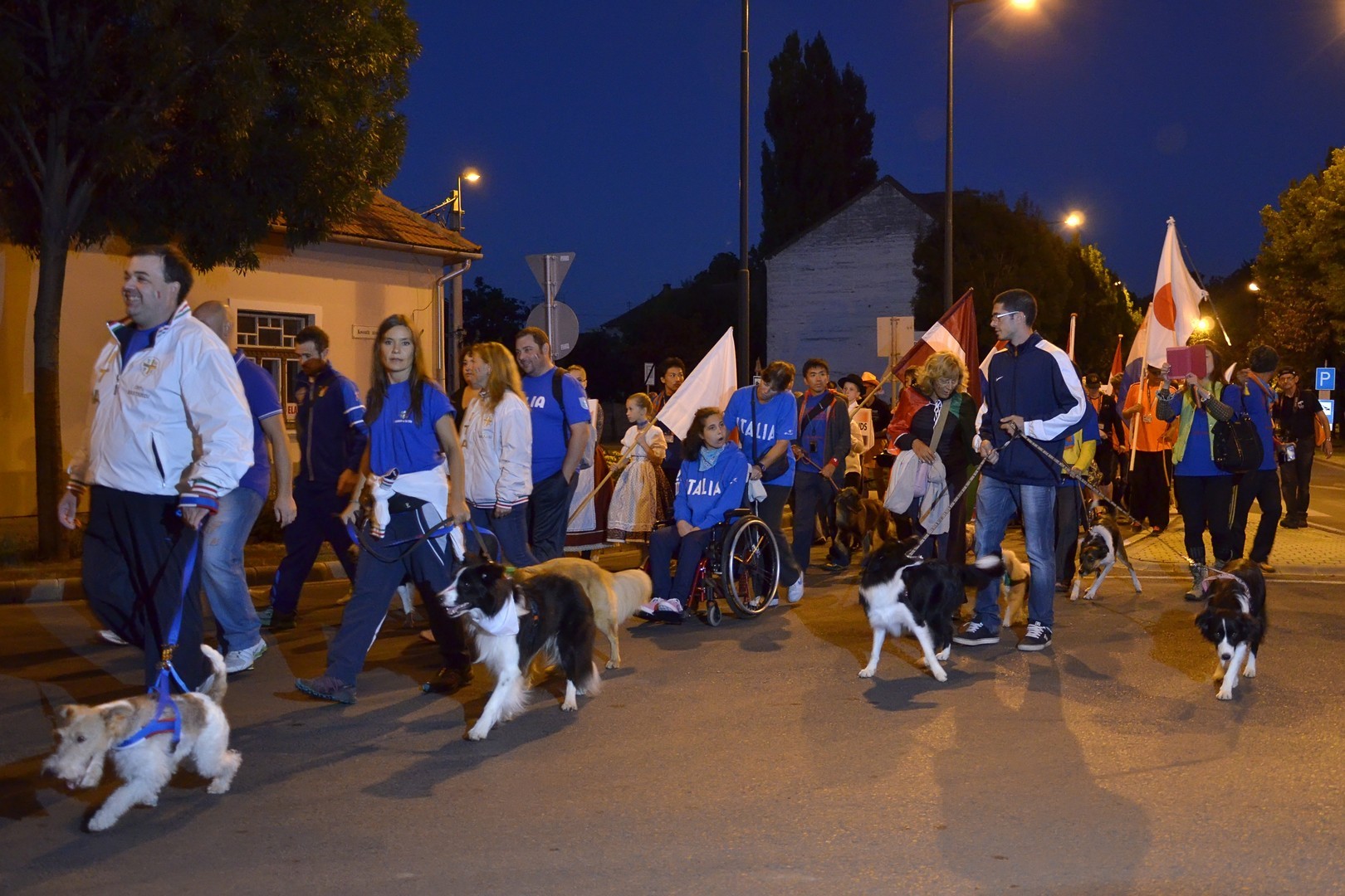 A kutyák és gazdáik az esti órákban vonultak át a vártól a négy napig tartó rendezvény helyszínére, ahol az ünnepi műsor után dr. Görgényi Ernő polgármester mondott köszöntő beszédet. A városvezető, egyben a program házigazdája kiemelte: hatalmas megtiszteltetés, hogy a versenyen személyesen is tiszteletét tette az agility atyjaként számon tartott John Gilbert, aki továbbfolytatva az első kutyás bemutatót megálmodó Peter Meanwell munkáját, Peter Lewisszal karöltve sporttá fejlesztette az agilityt.