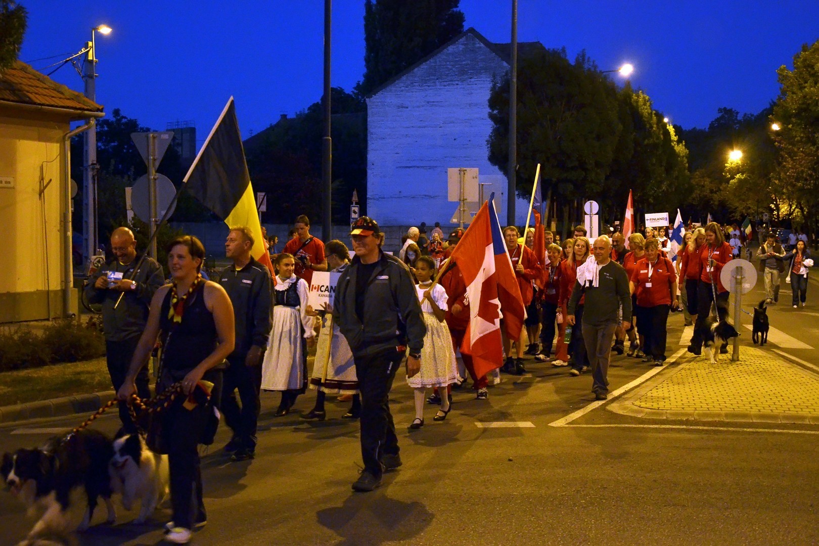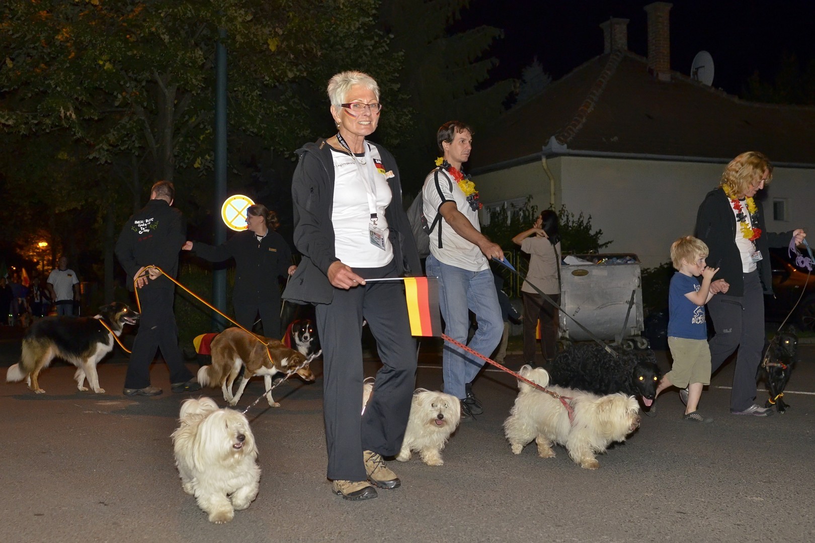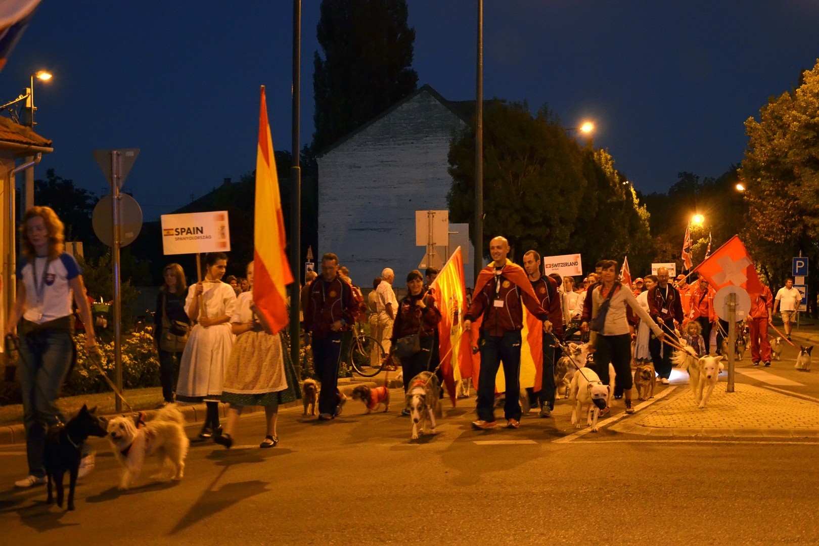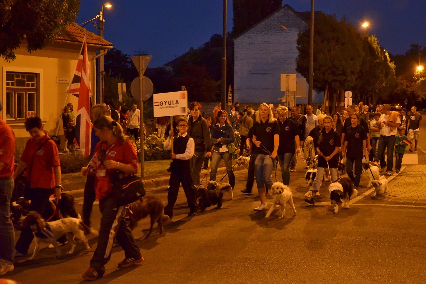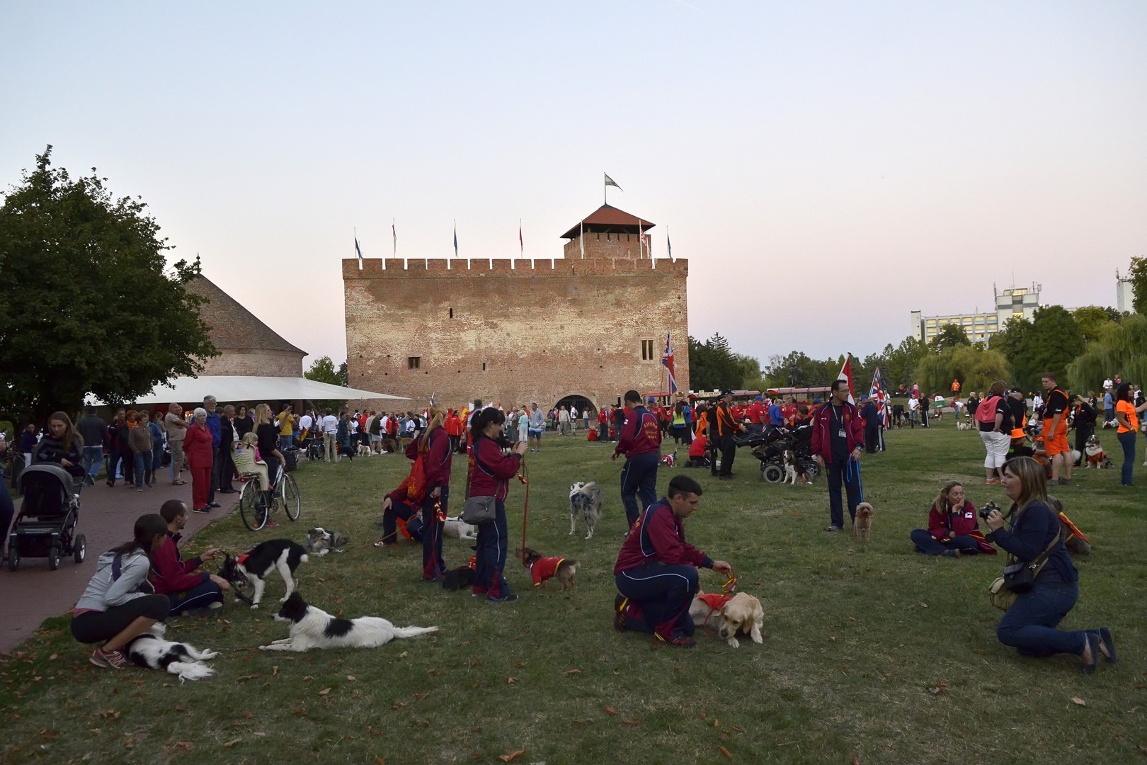 A kutyák és gazdáik az esti órákban vonultak át a vártól a négy napig tartó rendezvény helyszínére, ahol az ünnepi műsor után dr. Görgényi Ernő polgármester mondott köszöntő beszédet. A városvezető, egyben a program házigazdája kiemelte: hatalmas megtiszteltetés, hogy a versenyen személyesen is tiszteletét tette az agility atyjaként számon tartott John Gilbert, aki továbbfolytatva az első kutyás bemutatót megálmodó Peter Meanwell munkáját, Peter Lewisszal karöltve sporttá fejlesztette az agilityt.