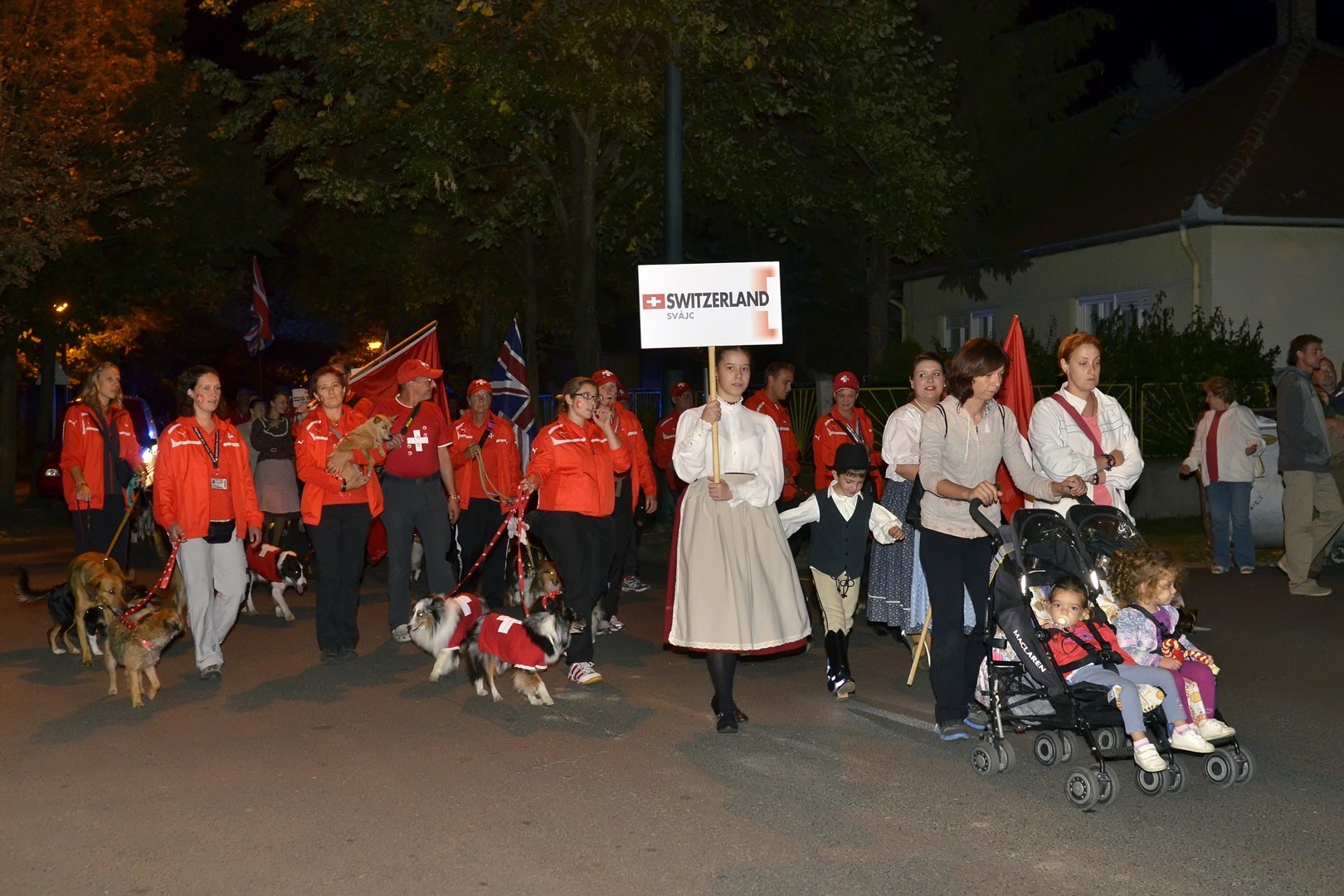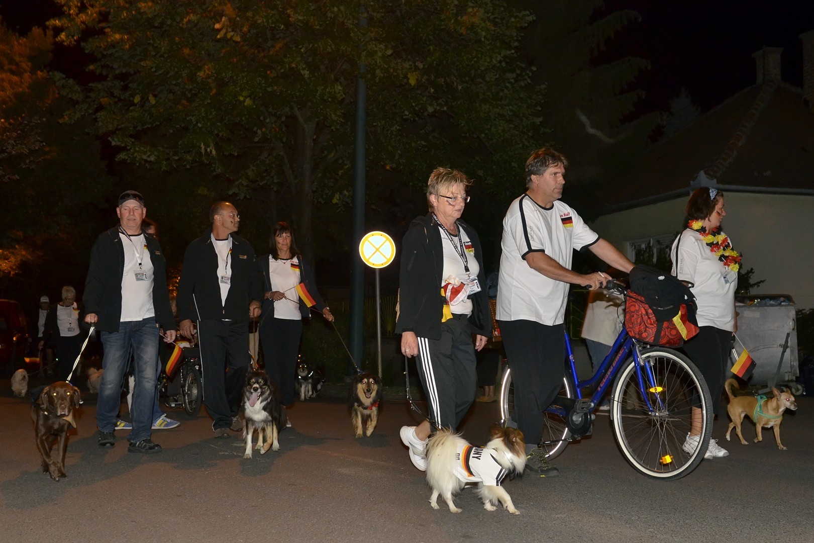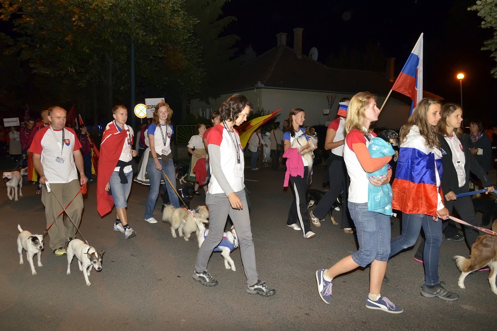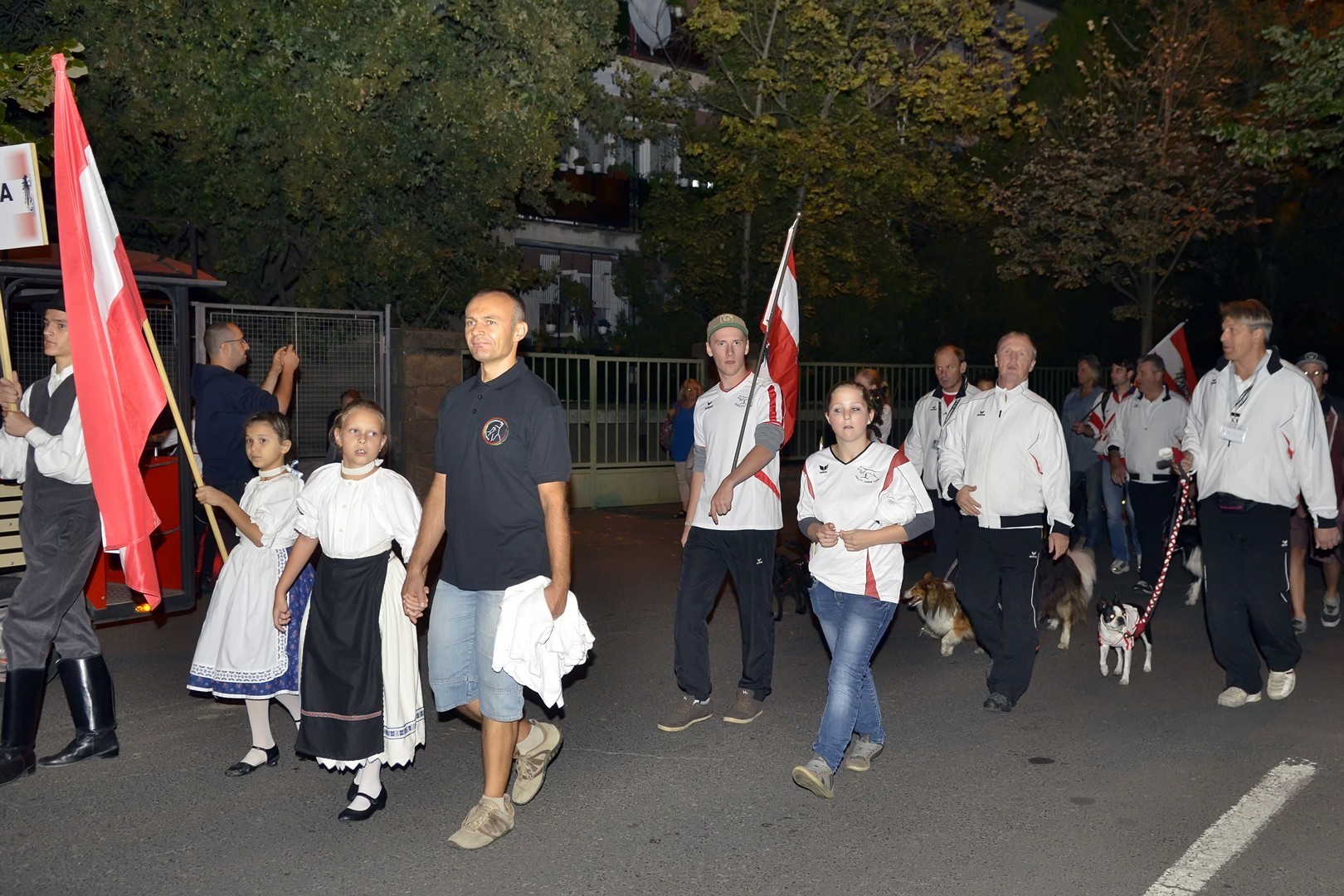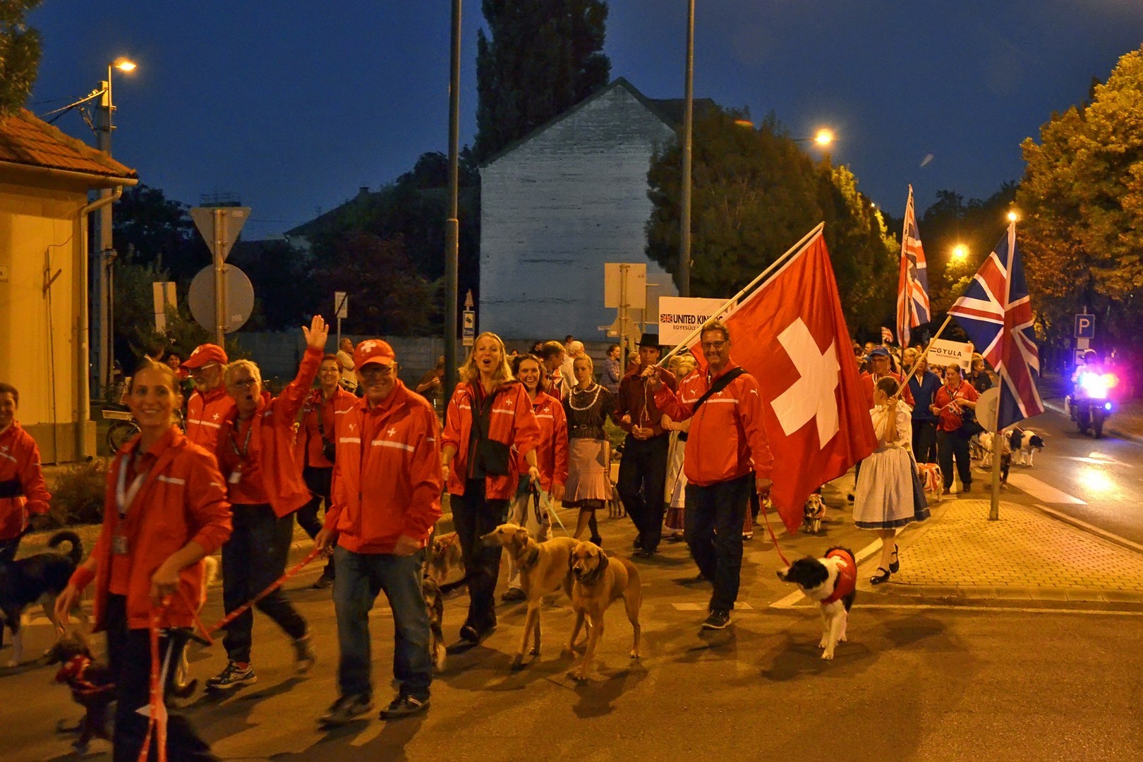 A kutyák és gazdáik az esti órákban vonultak át a vártól a négy napig tartó rendezvény helyszínére, ahol az ünnepi műsor után dr. Görgényi Ernő polgármester mondott köszöntő beszédet. A városvezető, egyben a program házigazdája kiemelte: hatalmas megtiszteltetés, hogy a versenyen személyesen is tiszteletét tette az agility atyjaként számon tartott John Gilbert, aki továbbfolytatva az első kutyás bemutatót megálmodó Peter Meanwell munkáját, Peter Lewisszal karöltve sporttá fejlesztette az agilityt.